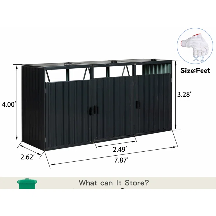 8 ft. W x 3 ft. D Metal Horizontal Garbage Shed
