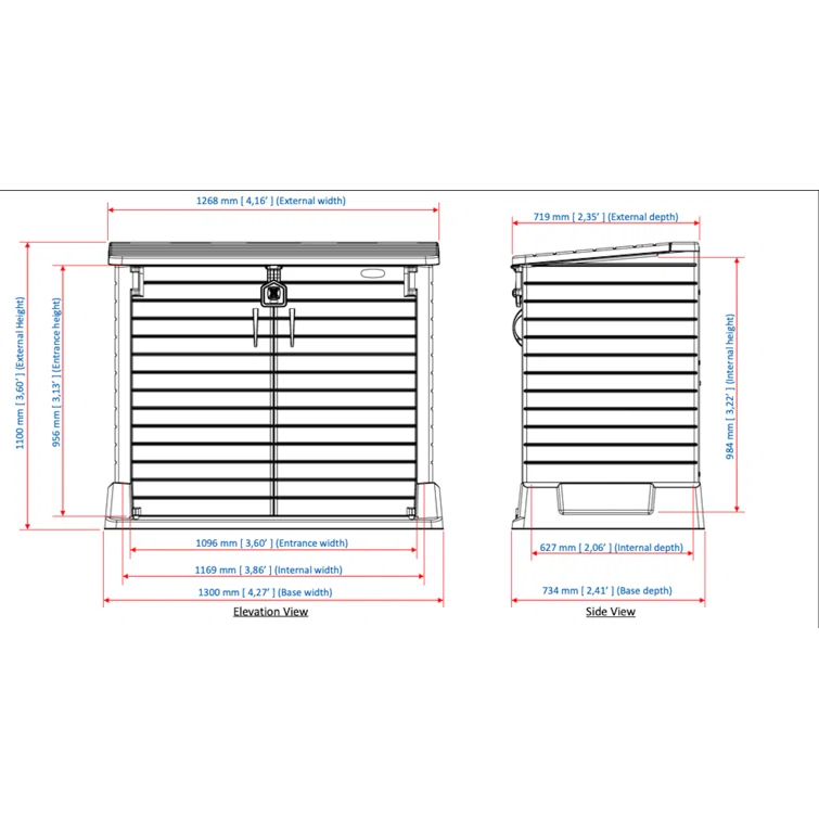 4 ft. 3 in. W x 2 ft. 5 in. D Plastic Horizontal Garbage Shed