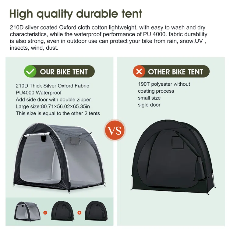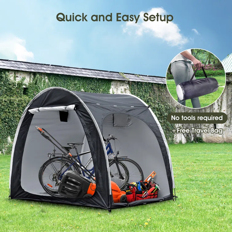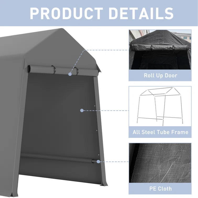 Heavy Duty Outdoor Shed, Portable Storage Shed, With 2 Rolled Up Zipper Doors,Vents Carports