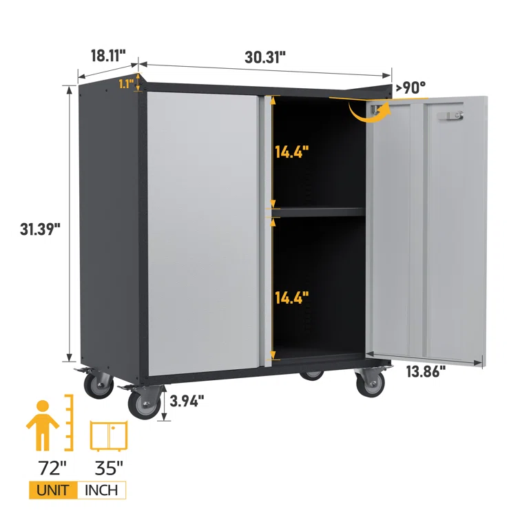 Galaz 35.43" H x 30.31" W x 18.11" D Rolling Garage Storage Cabinet with Lockable doors