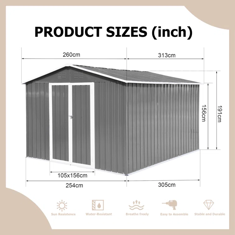 10 ft. W x 8.5 ft. D Metal Storage Shed