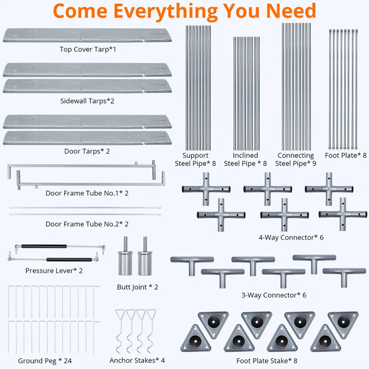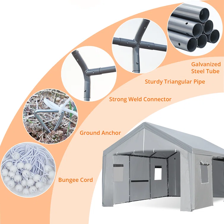 Portable Heavy Duty Canopy 10 ft. W x 20 ft. D Polypropylene Portable Garage Shed