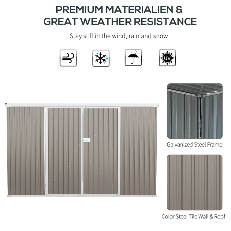7.87Ft. L X 2.62Ft. W Metal Garbage Bin Shed Stores For 3 Trash Can