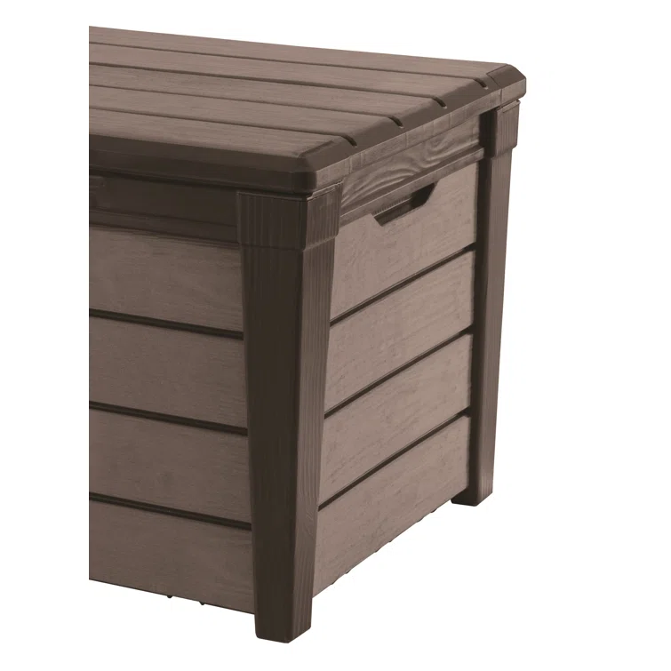 Keter Brushwood 120 Gallon Durable Resin Outdoor Storage and Organization Deck Box For Patio Furniture and Supplies, Brown