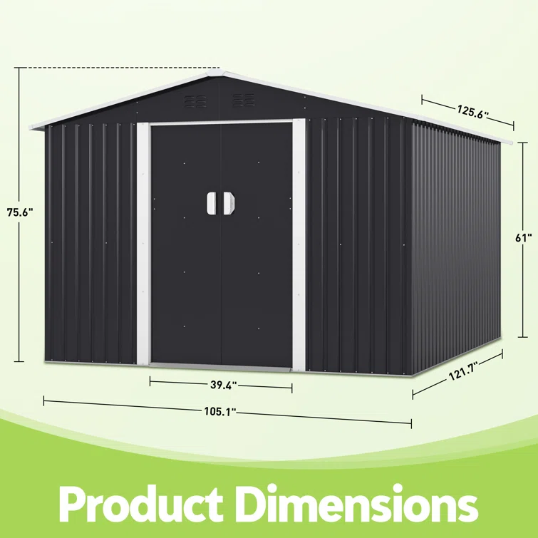 10 ft. W x 9 ft. D Metal Garage Shed