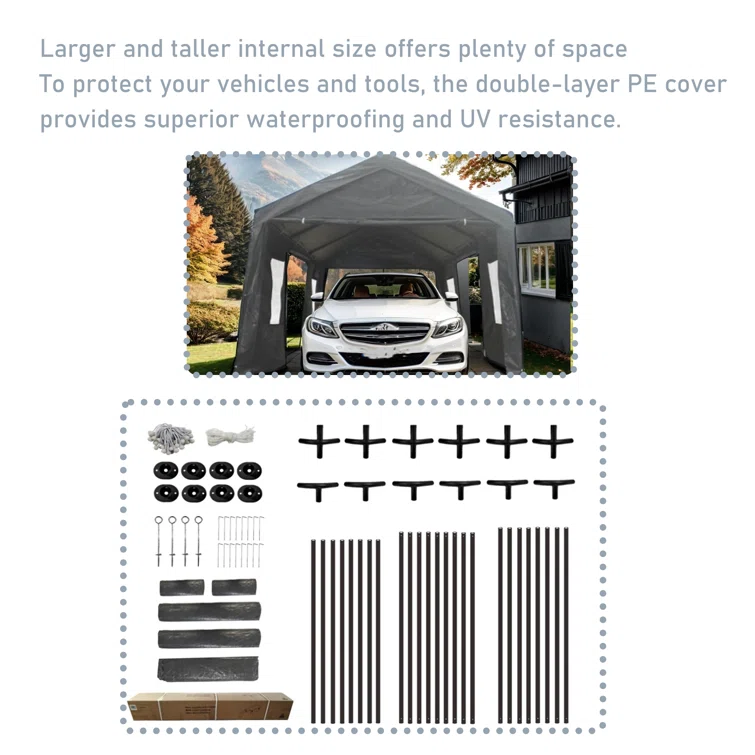 10 ft. W x 20 ft. D Metal Portable Garage Shed