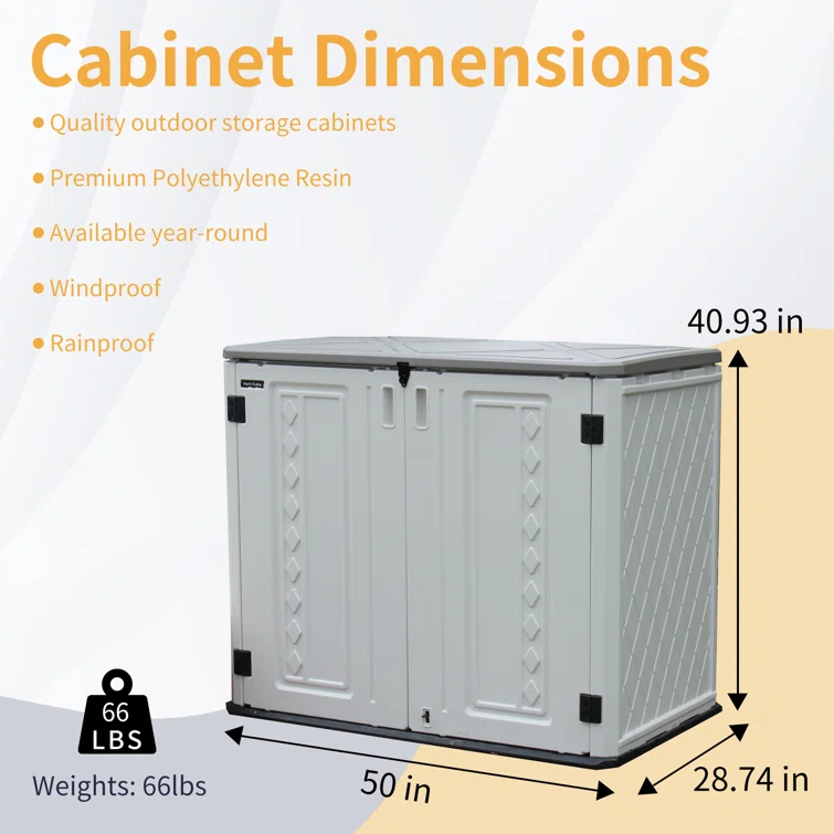 63"L Outdoor Garbage Bin Storage Shed, Galvanized Steel, Lockable Doors, Stores 2 Trash Cans