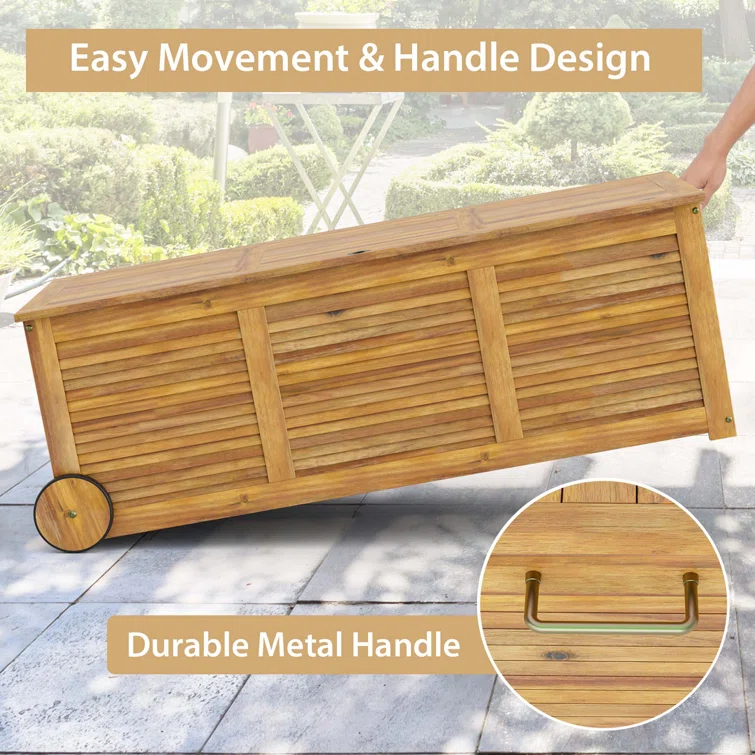 Costway 50'' W 48 Gallons Acacia Deck Box in Natural