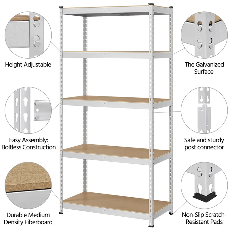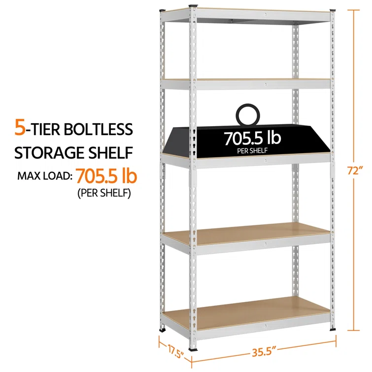 Lundys 5 Tiers Adjustable Metal Storage Shelving Heavy Duty Boltless Display
