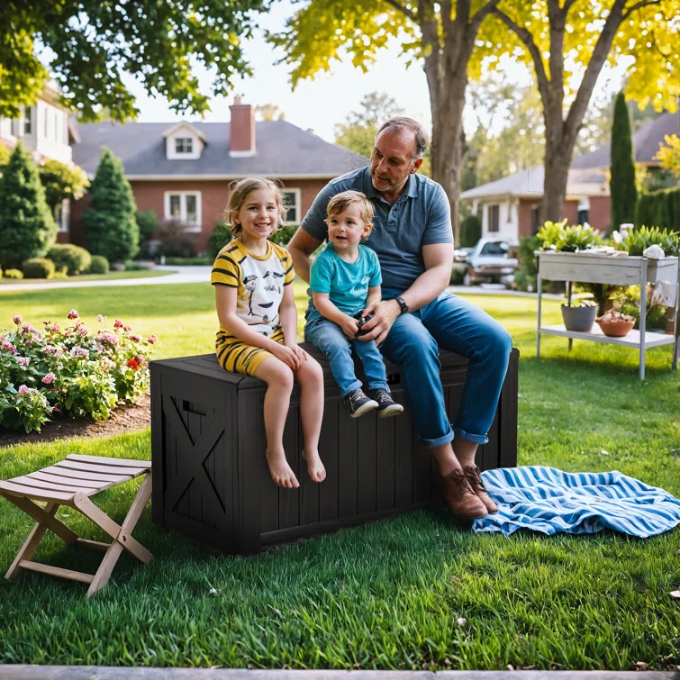 Furmax 120 Gallons Water Resistant Plastic Lockable Deck Storage Box