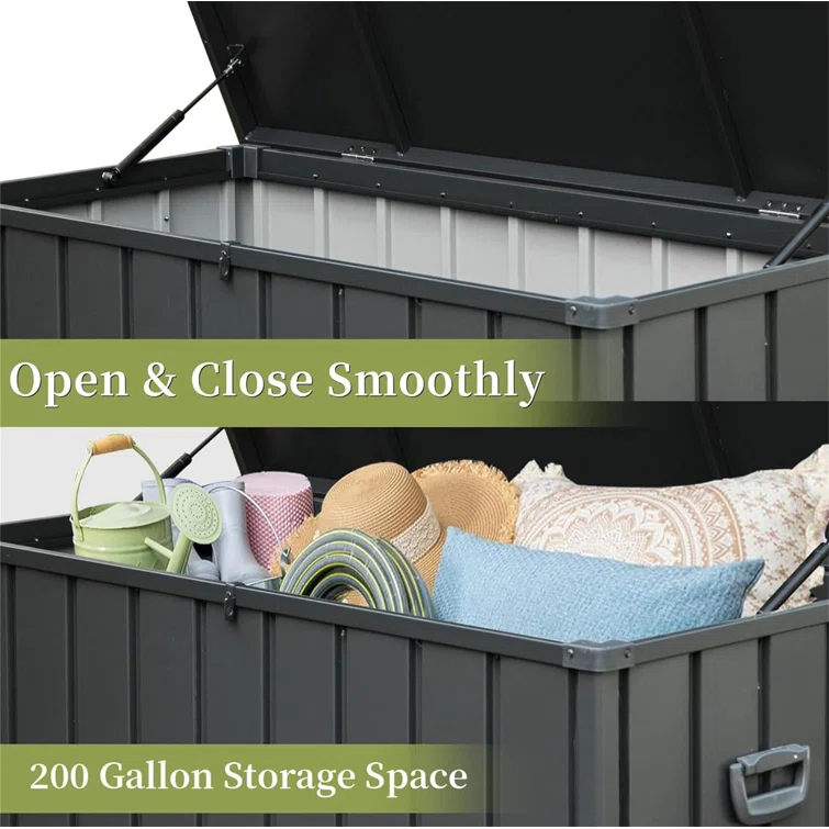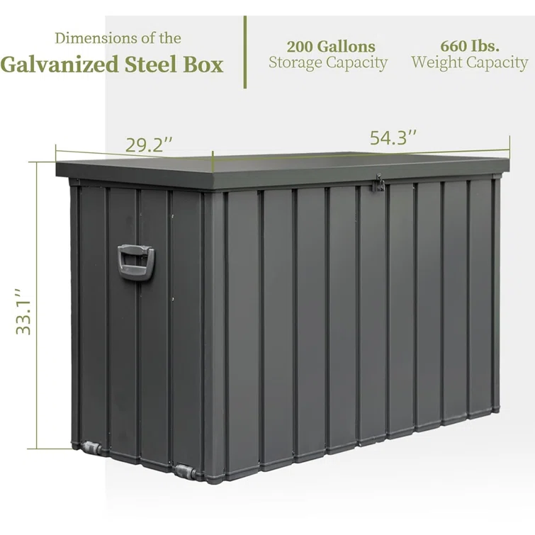 Novobey 54.31'' W 200 Gallons Water Resistant Galvanized Steel Deck Box with Wheels