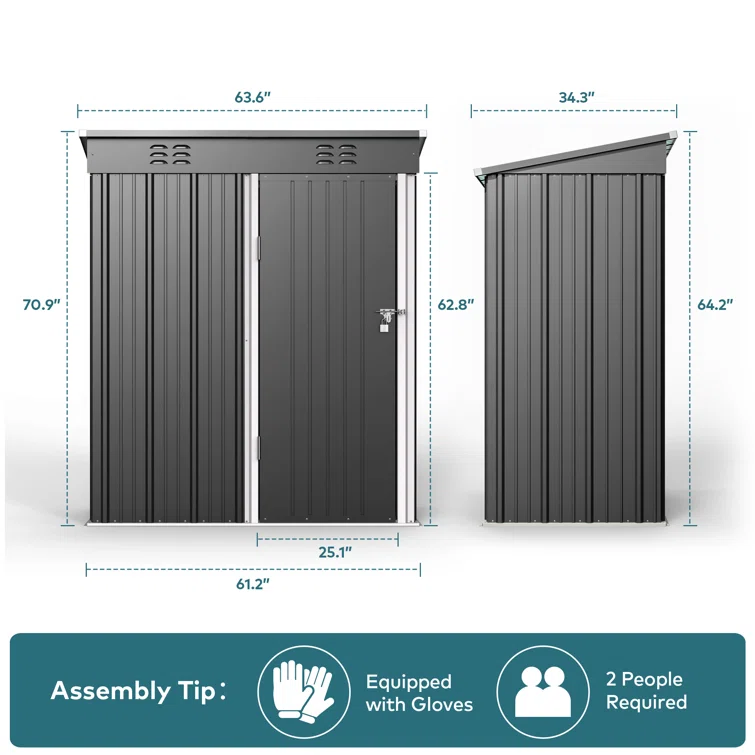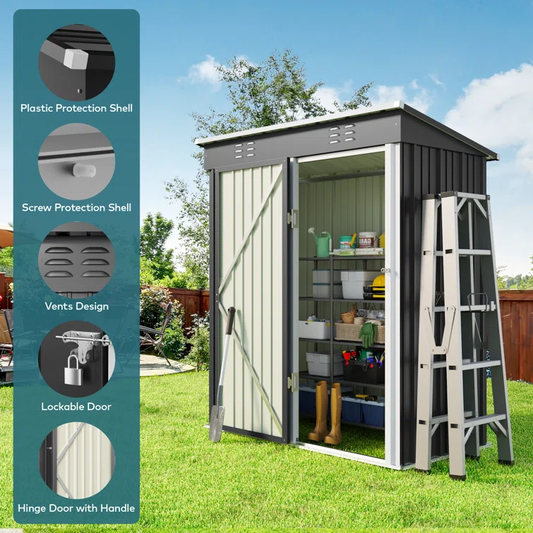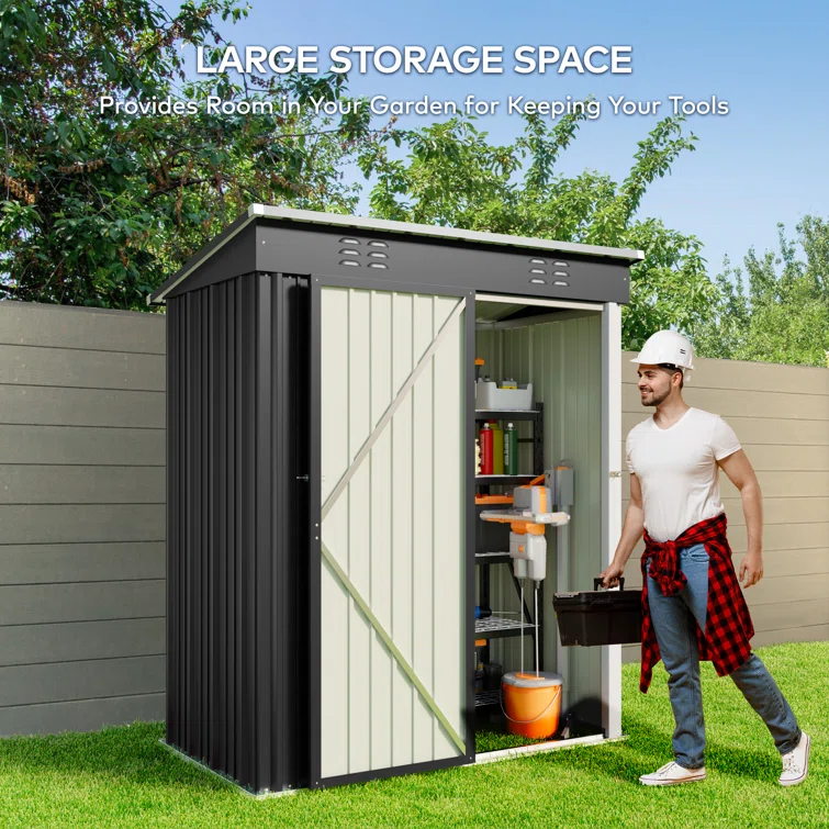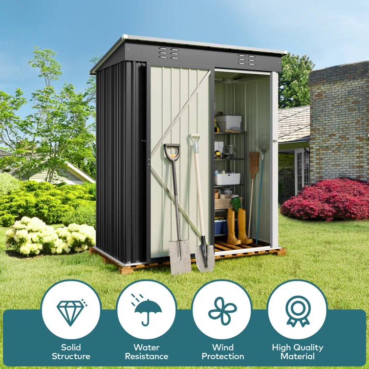 Aiho 5 ft. W X 3 ft. D Metal Vertical Storage Shed
