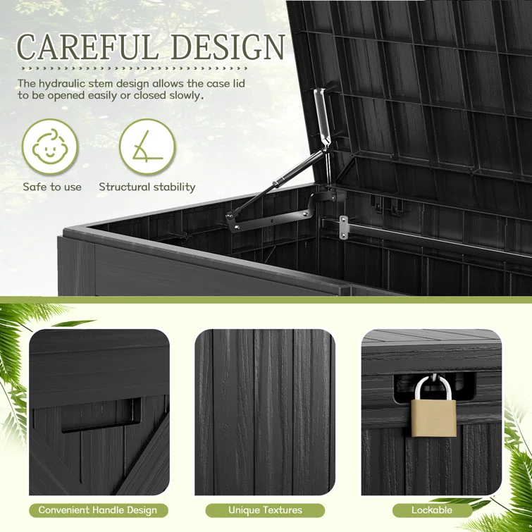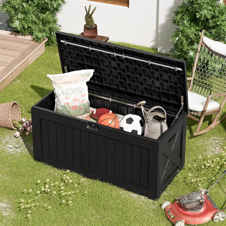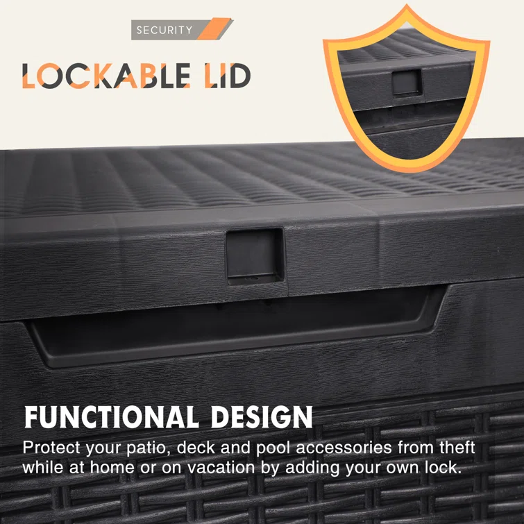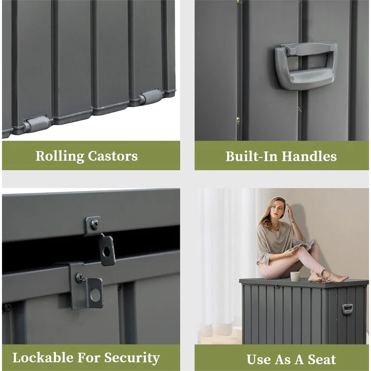 Quartey 100 Gallons Water Resistant Resin Lockable Deck Box with Cushion