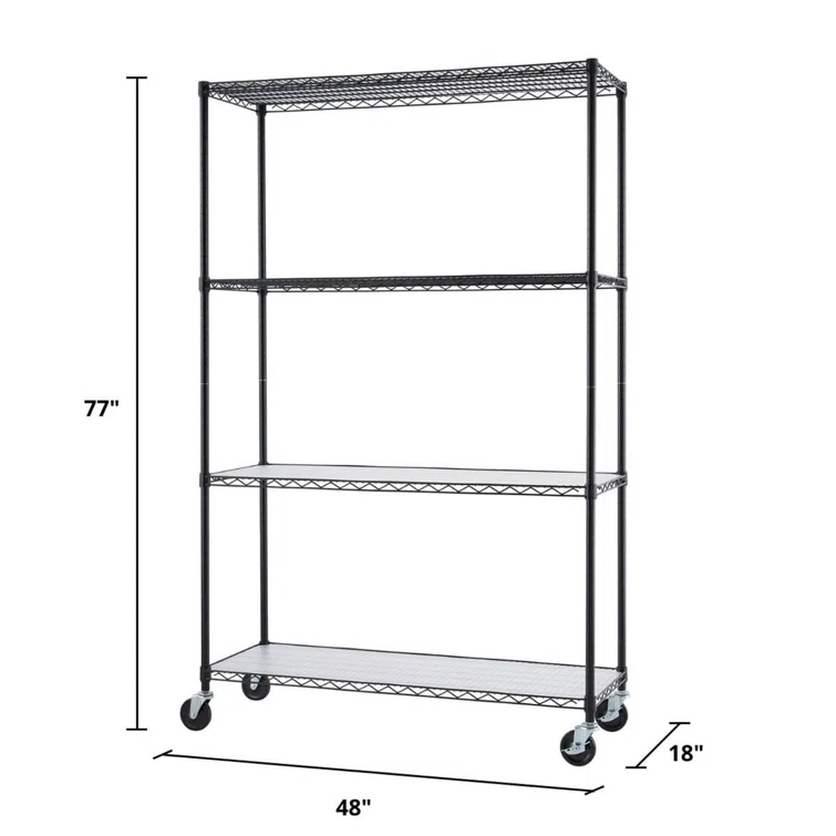 48" W x 18" D x 72" H 4 Tier Wire Shelving with Liners and Wheels