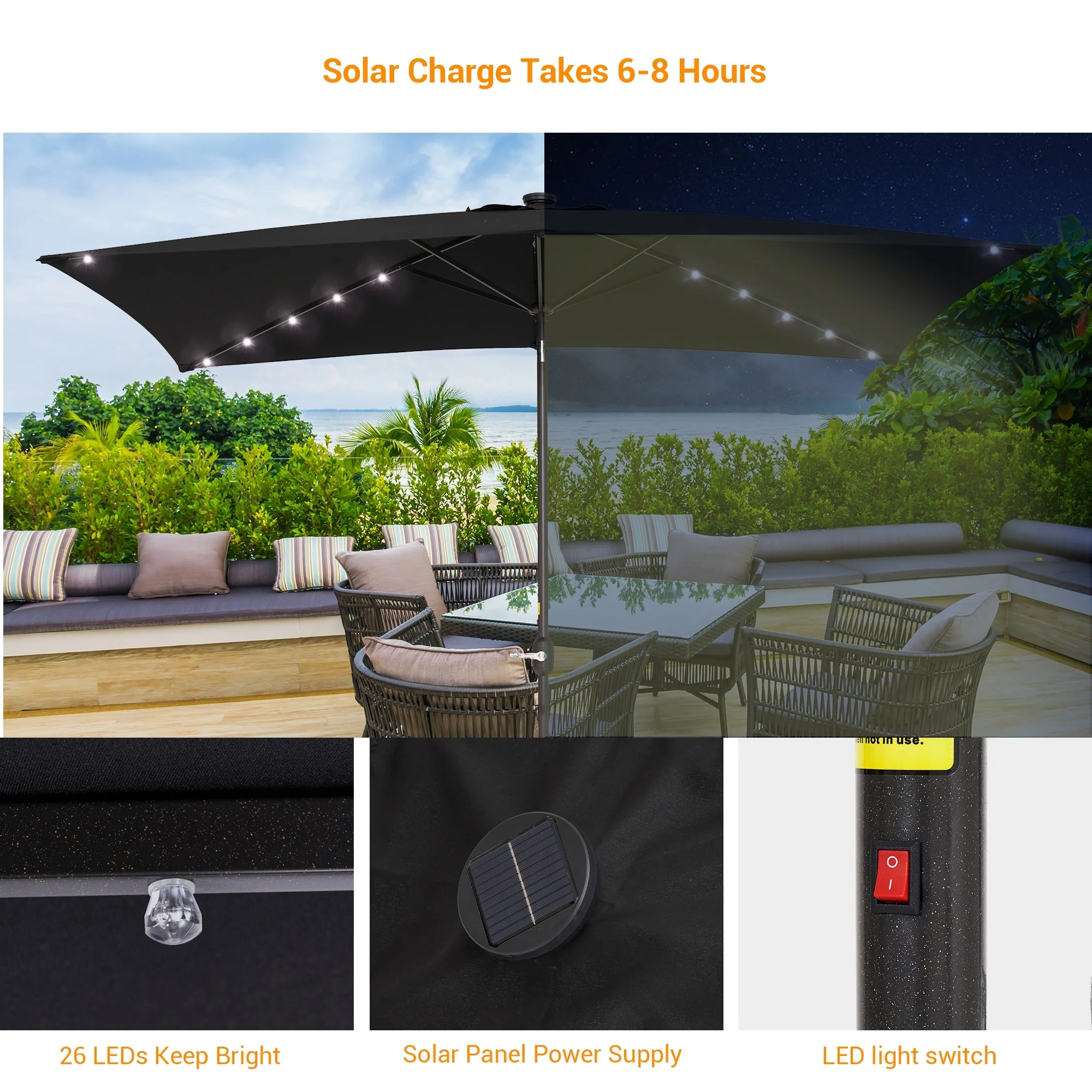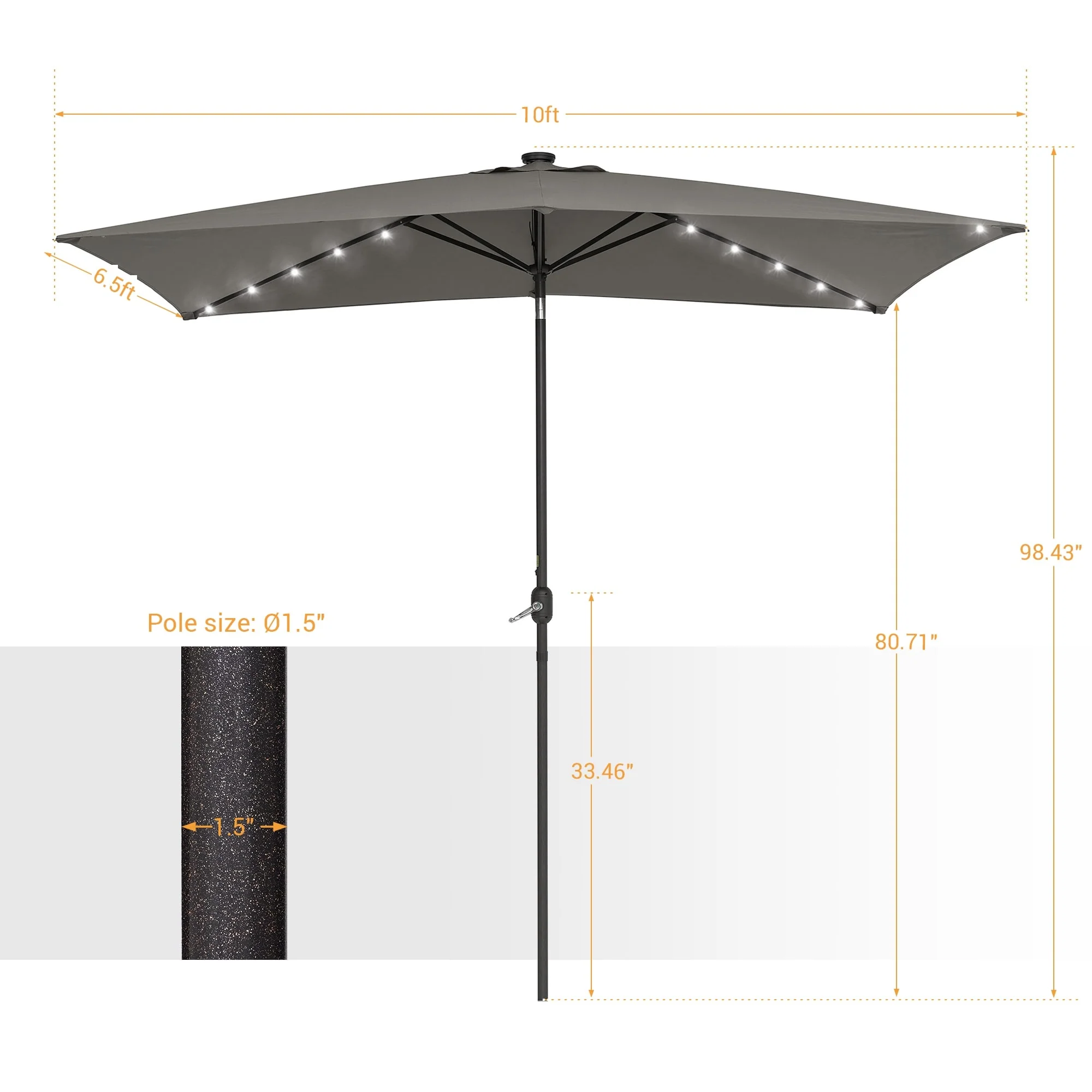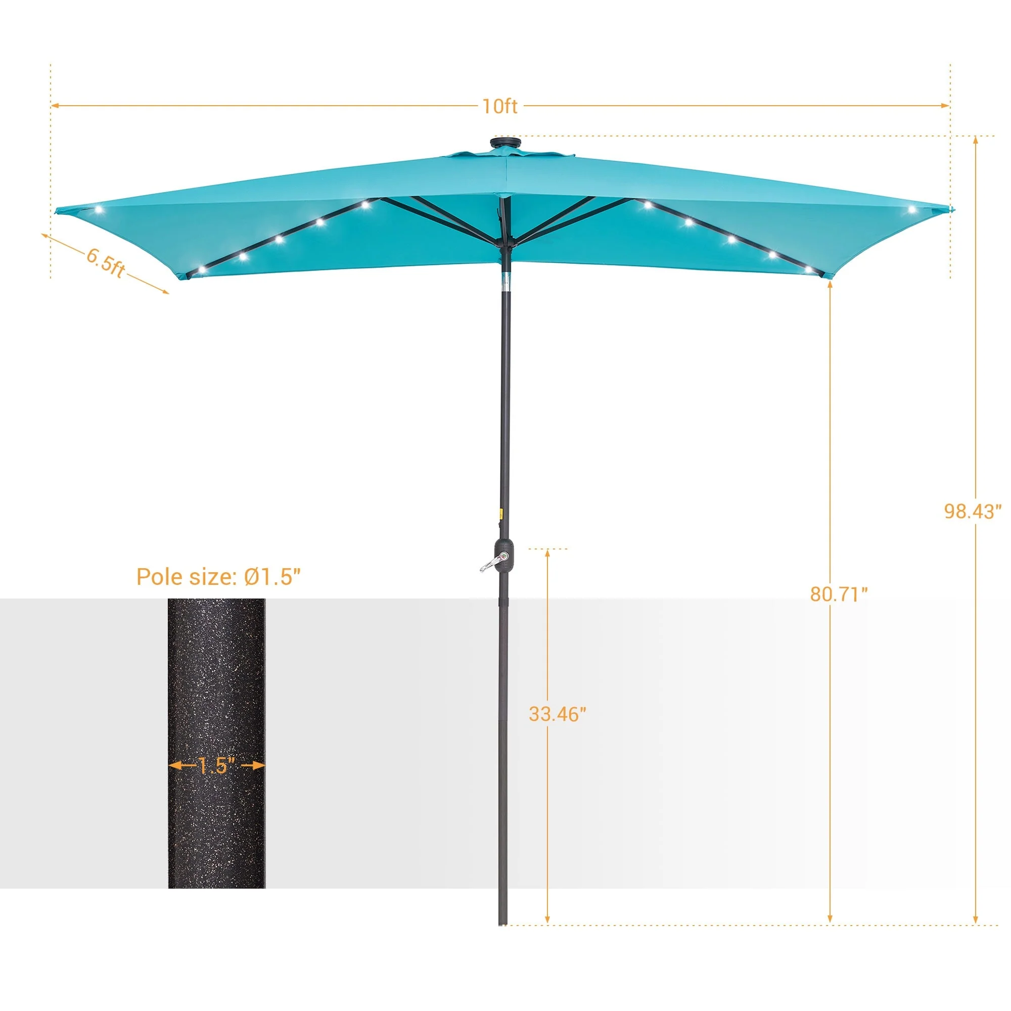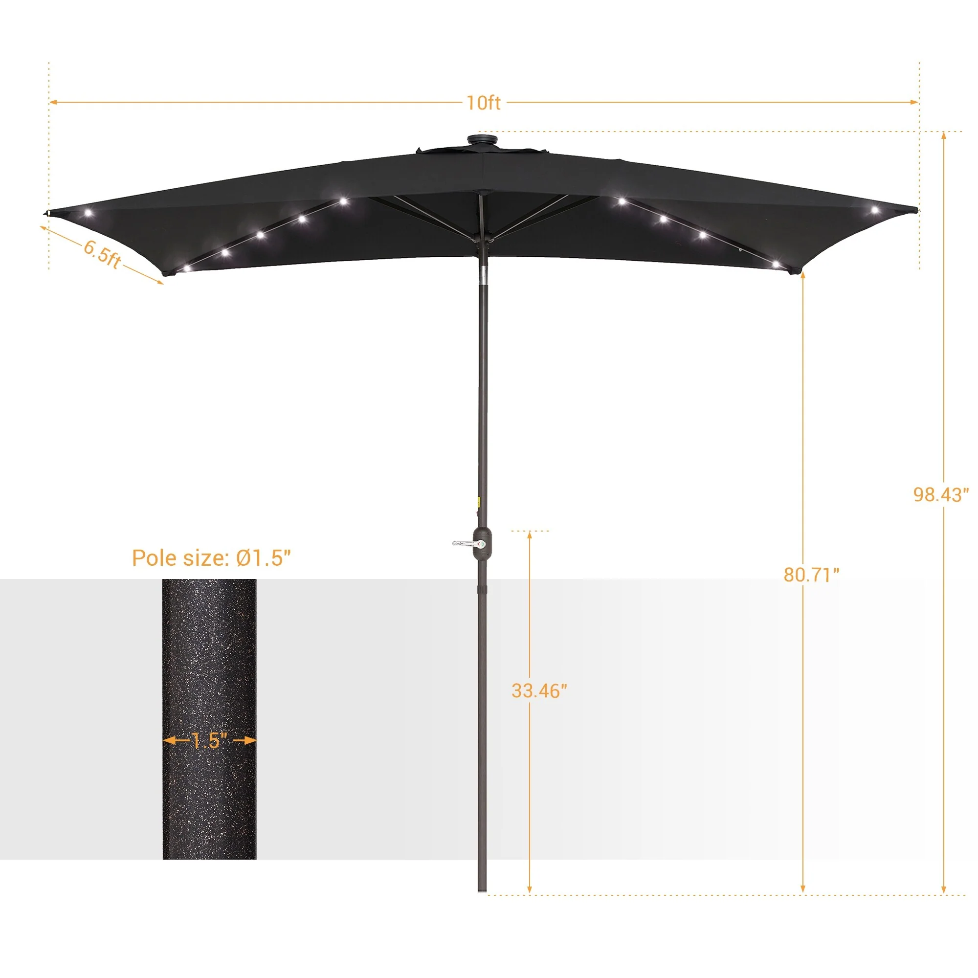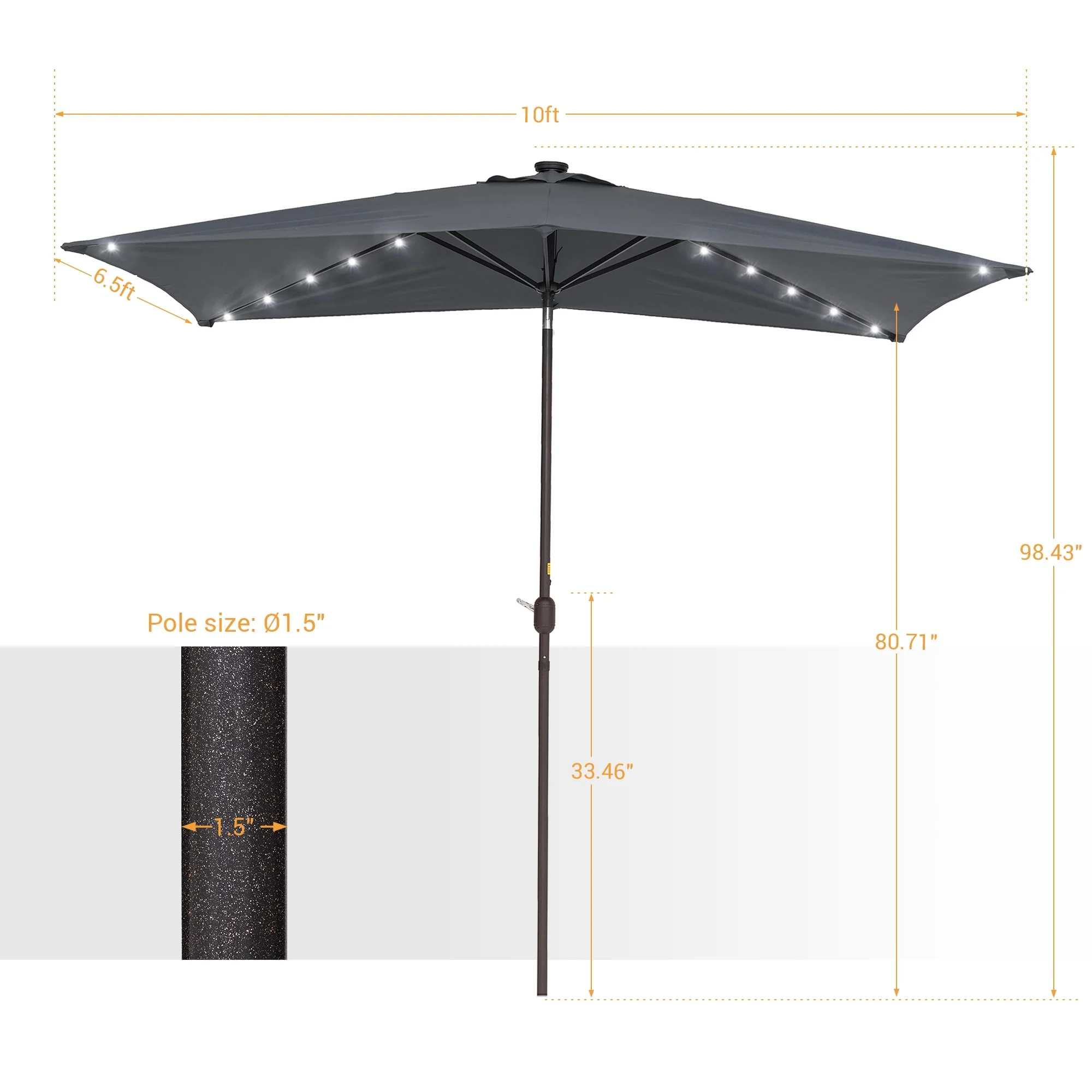 Bonosuki 10 x 6.5ft LED Patio Rectangular Umbrella Outdoor Market Umbrella Aluminium/Steel with Tilt and Crank