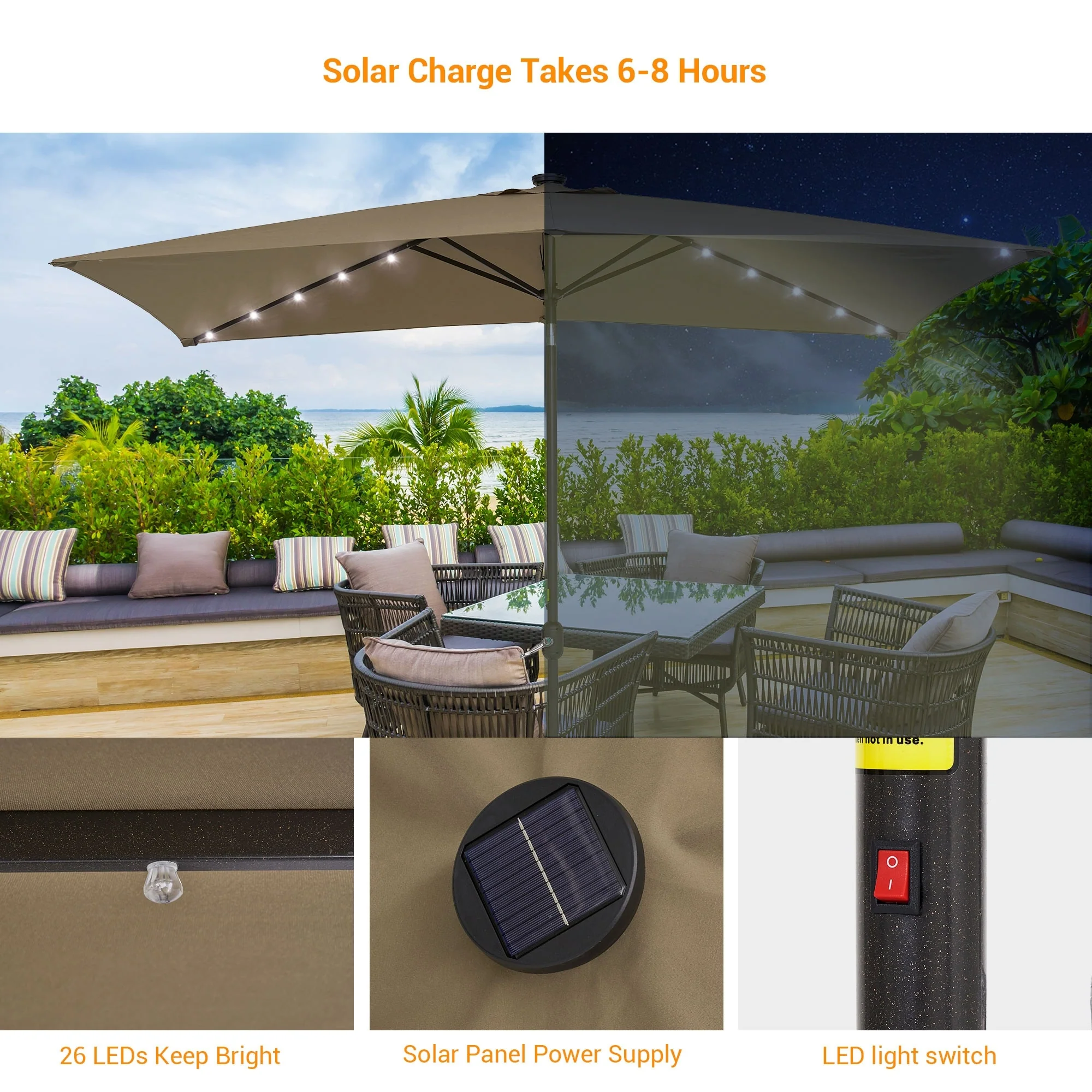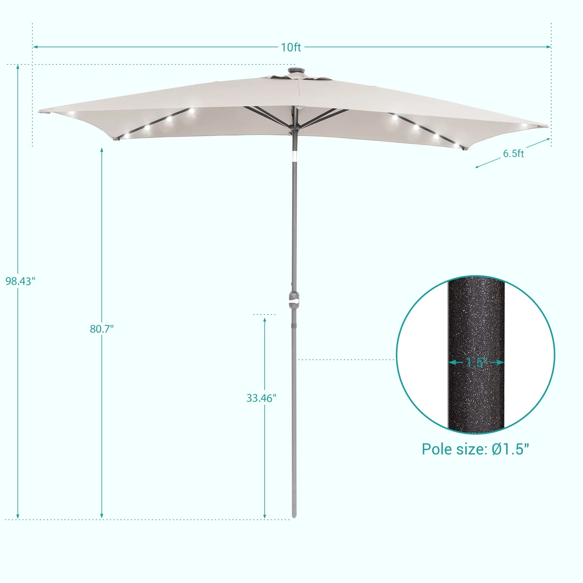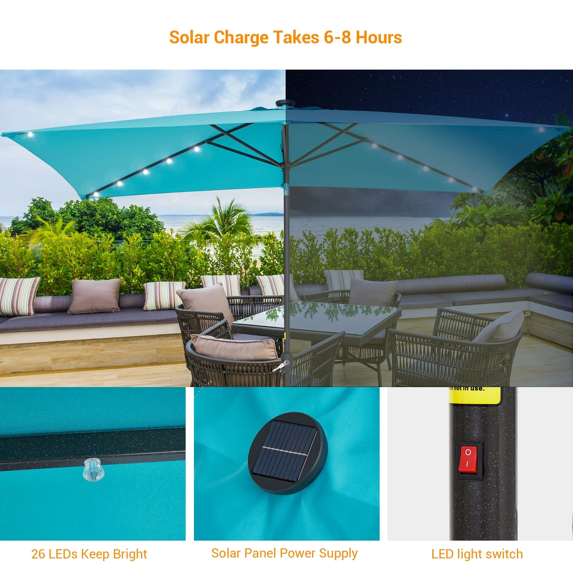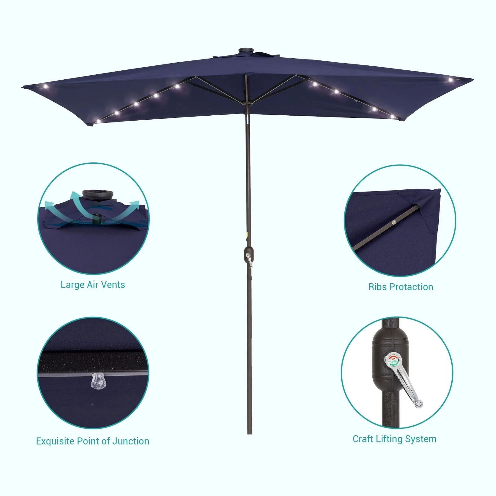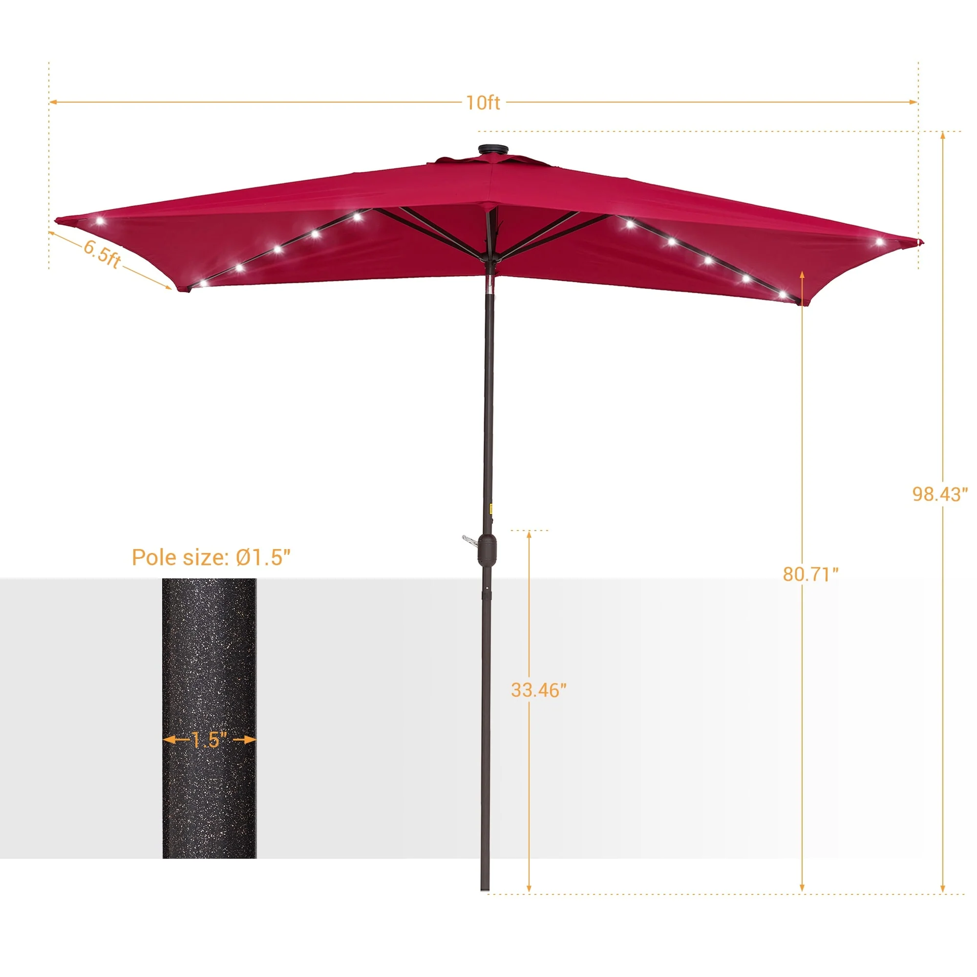 Bonosuki 10 x 6.5ft LED Patio Rectangular Umbrella Outdoor Market Umbrella Aluminium/Steel with Tilt and Crank