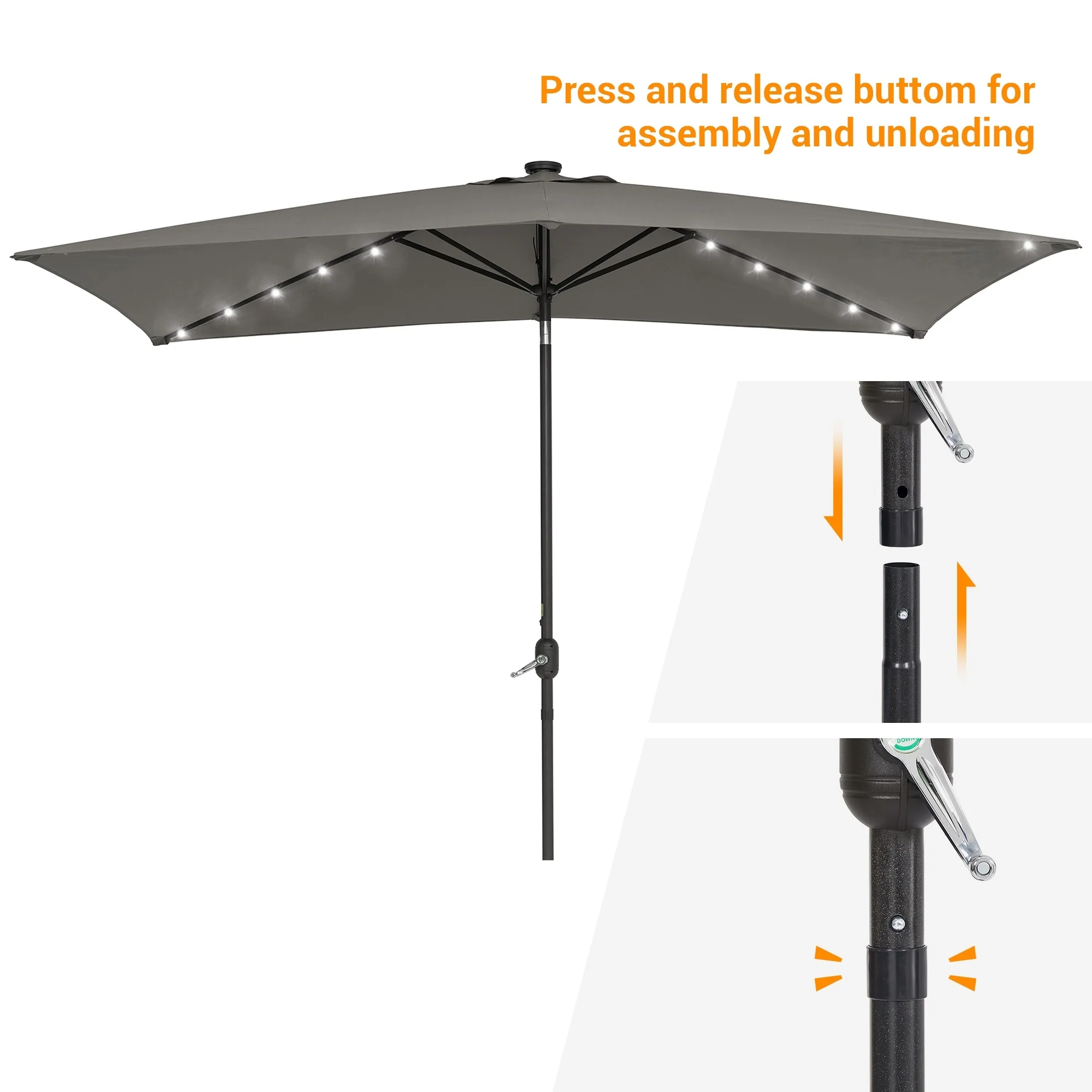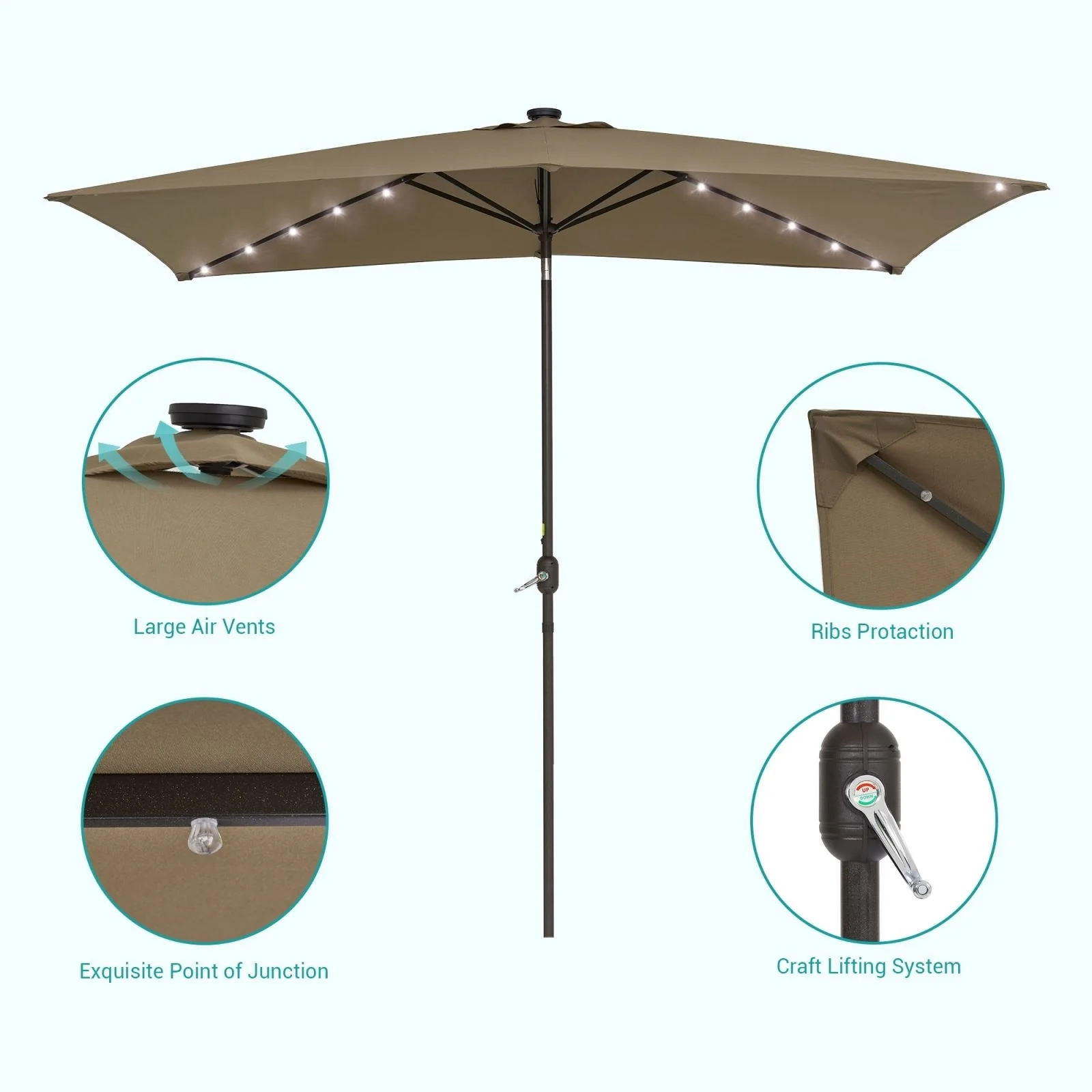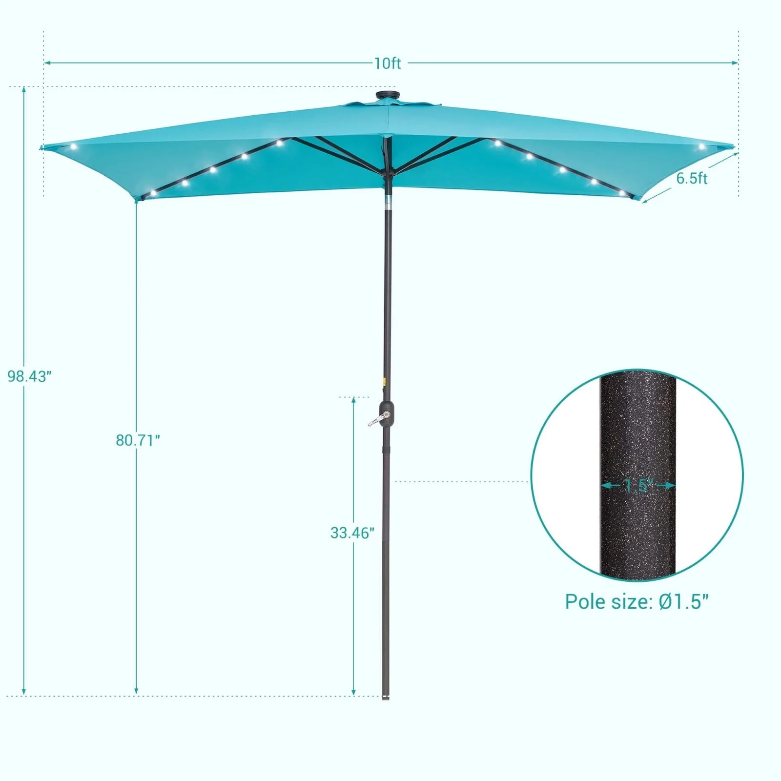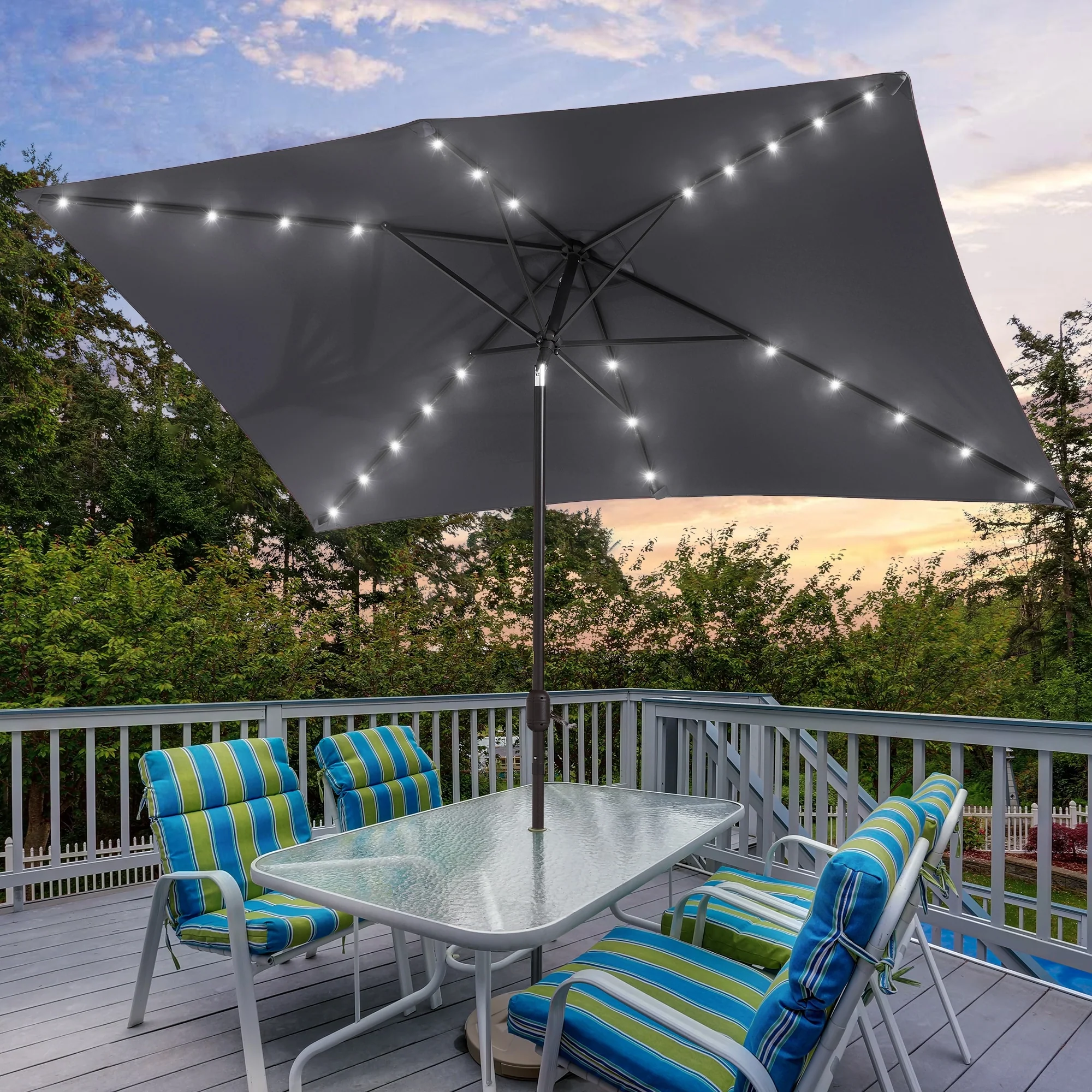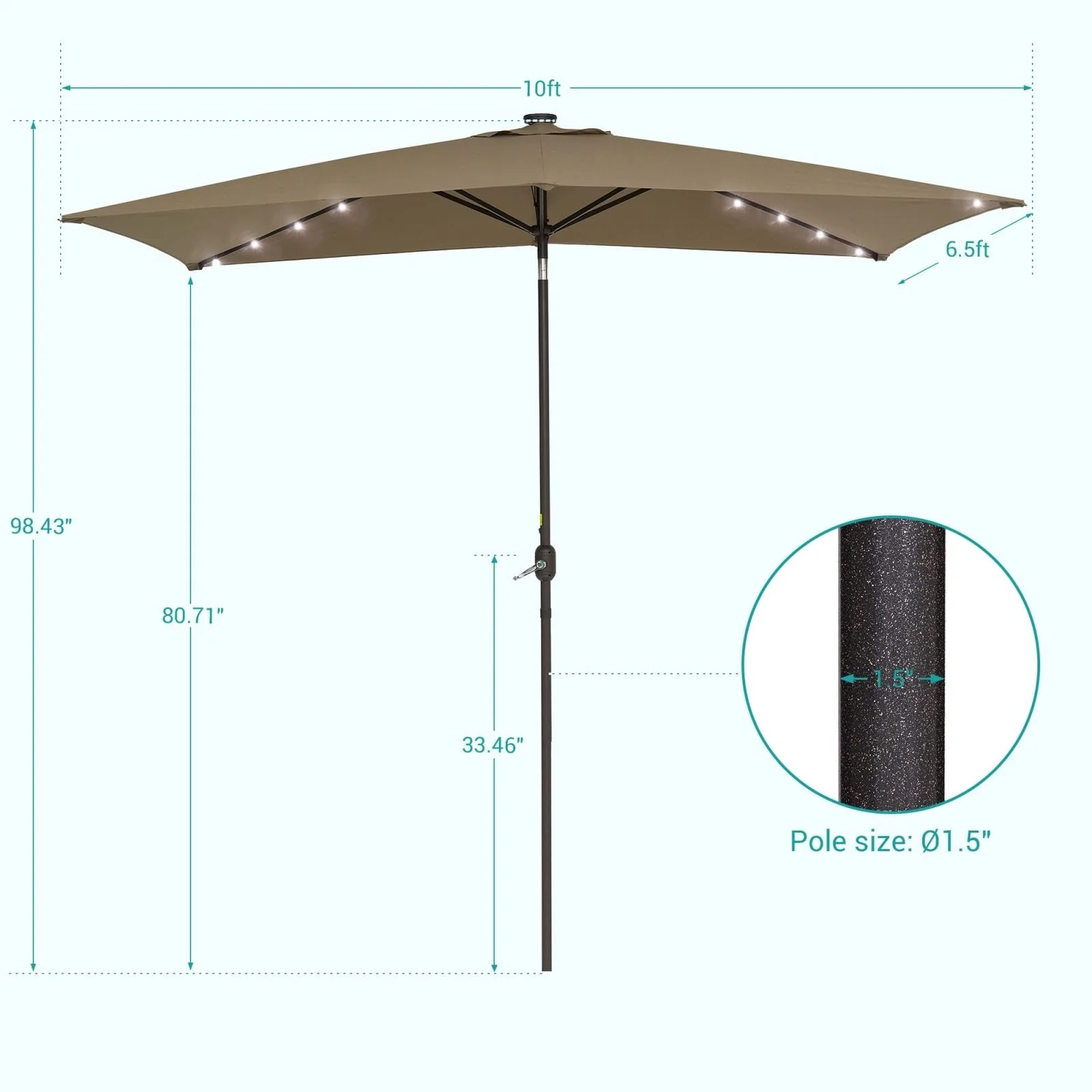 Bonosuki 10 x 6.5ft LED Patio Rectangular Umbrella Outdoor Market Umbrella Aluminium/Steel with Tilt and Crank