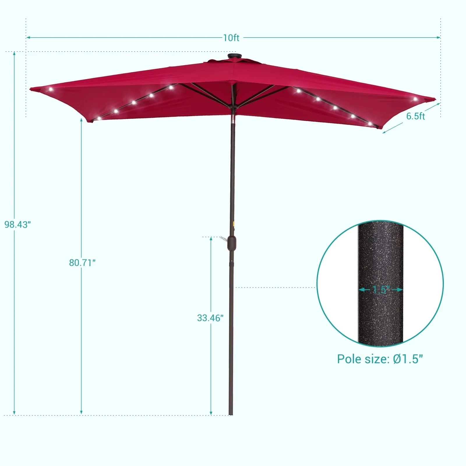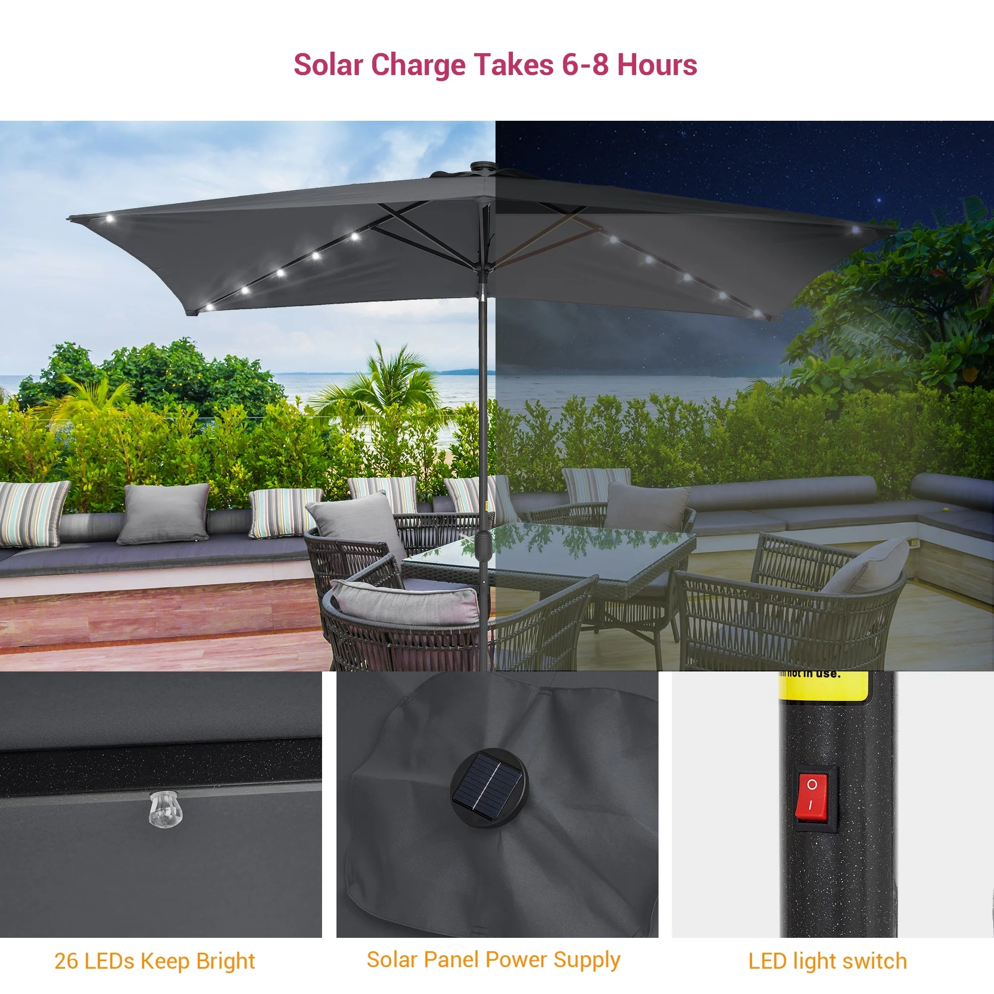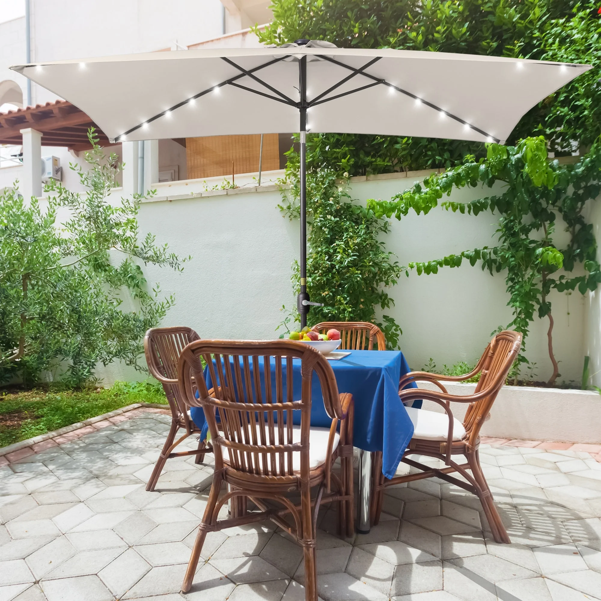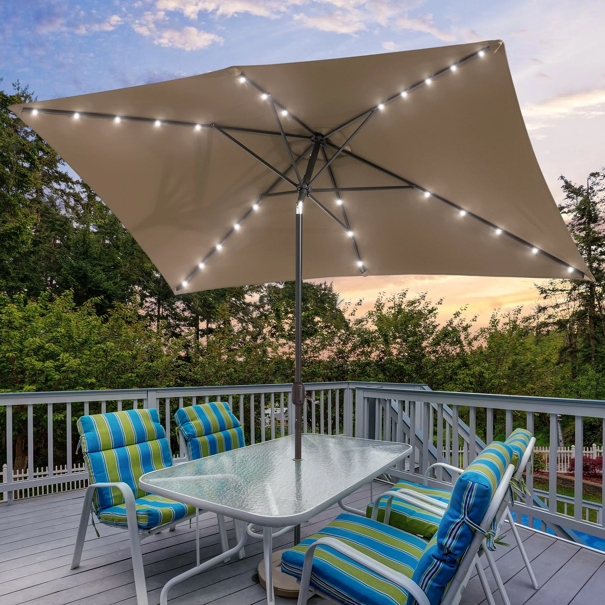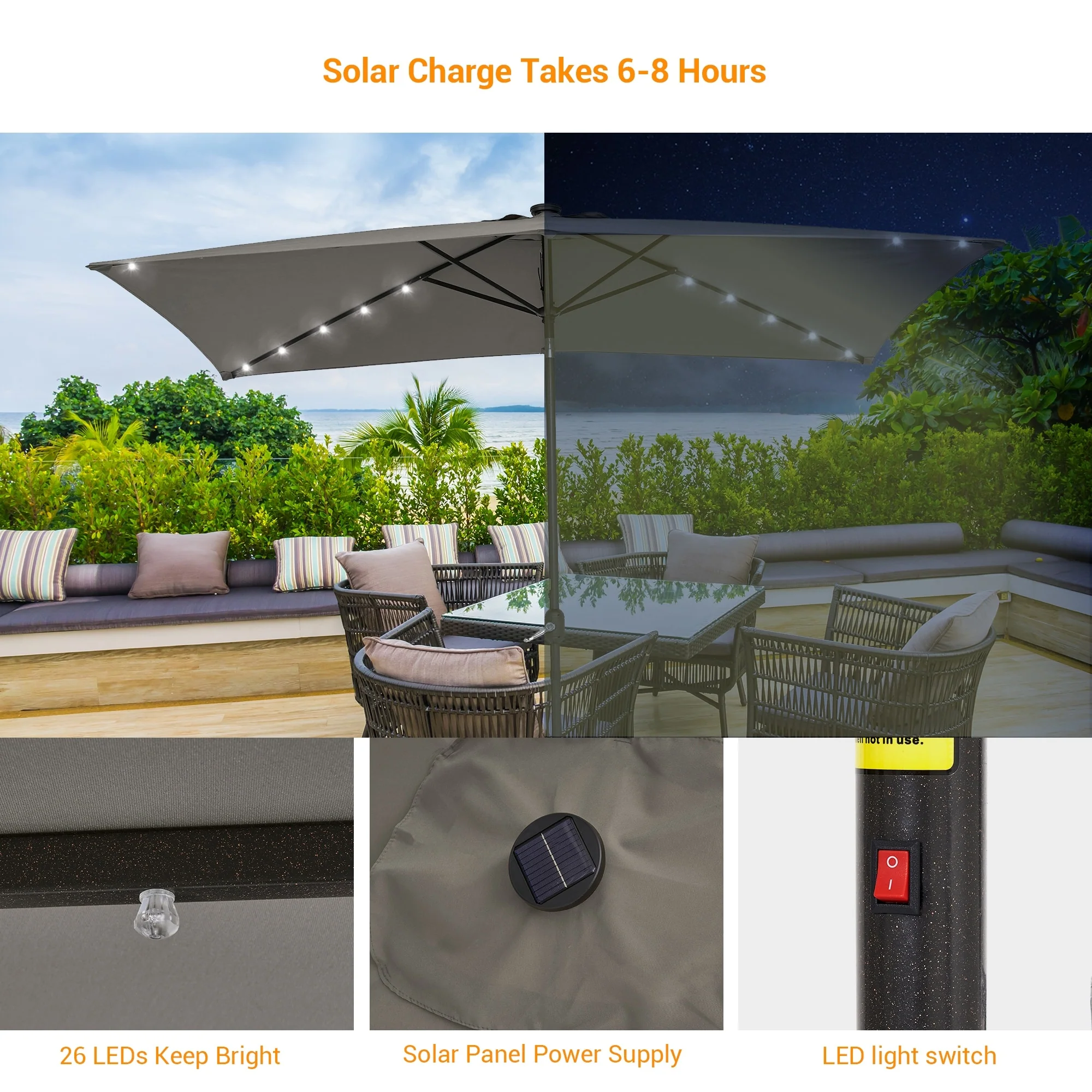 Bonosuki 10 x 6.5ft LED Patio Rectangular Umbrella Outdoor Market Umbrella Aluminium/Steel with Tilt and Crank
