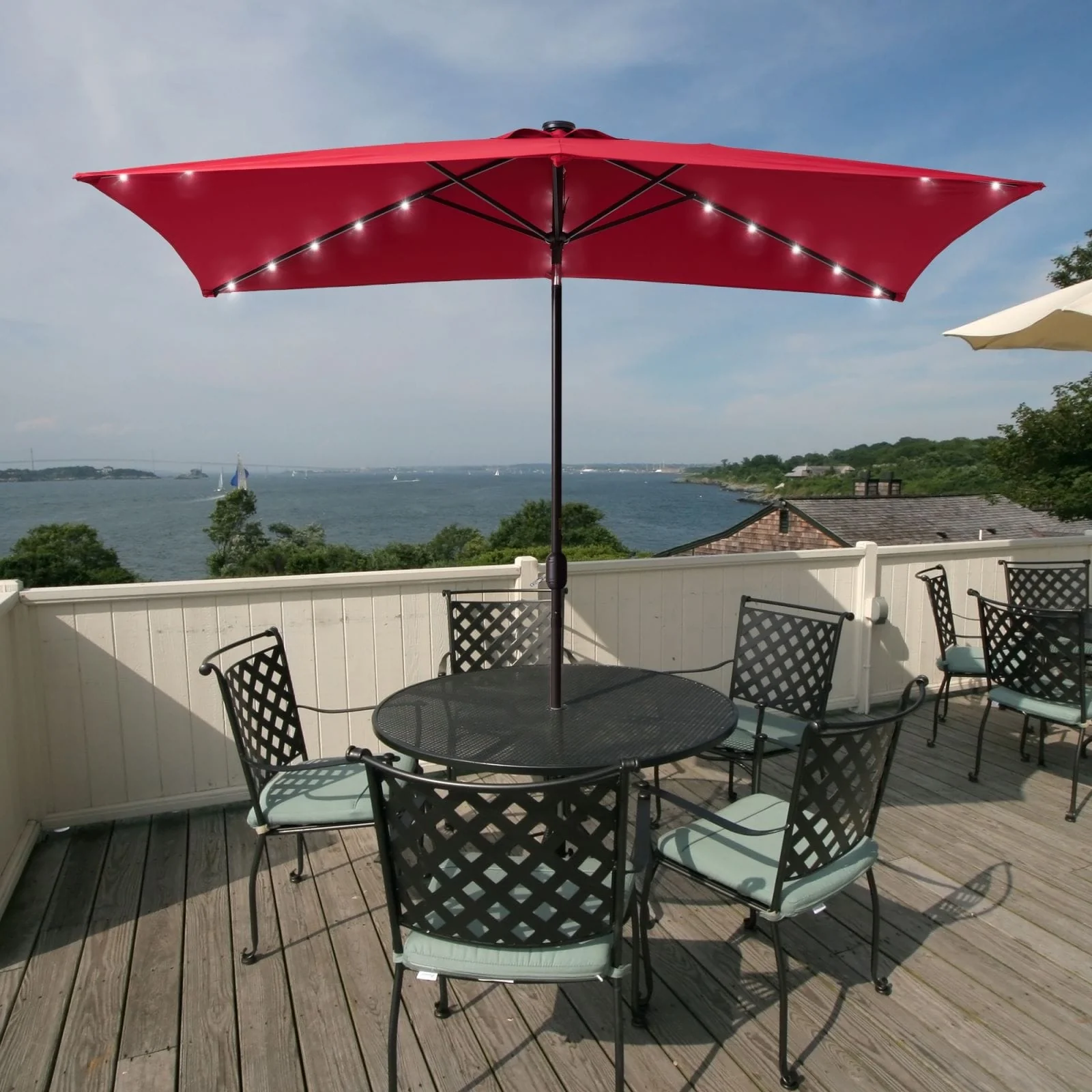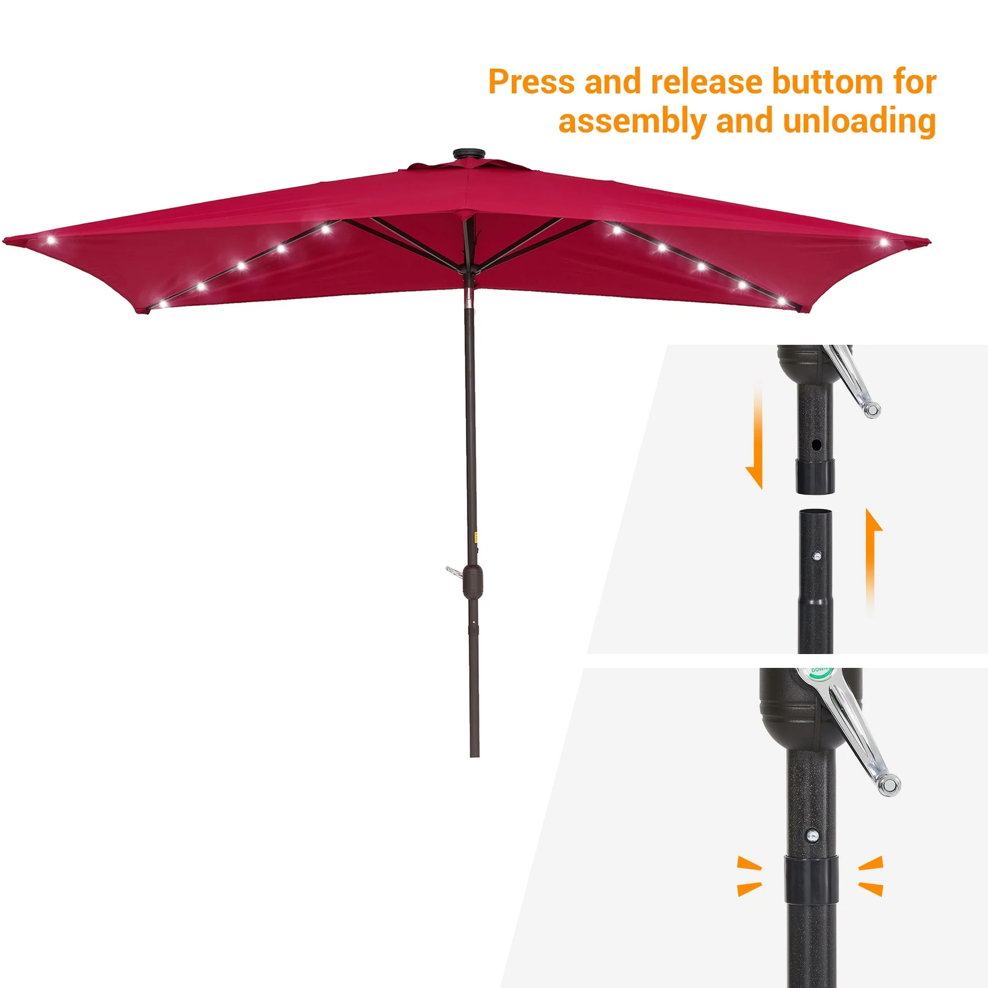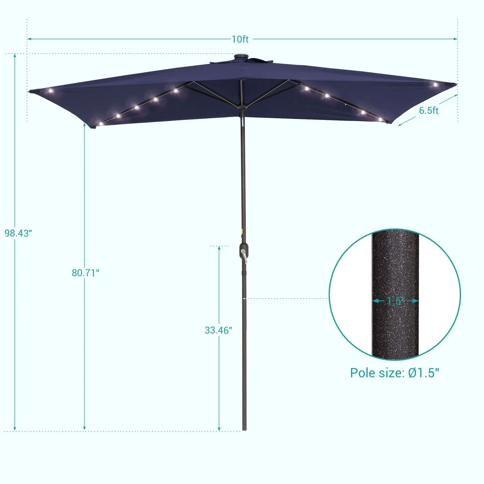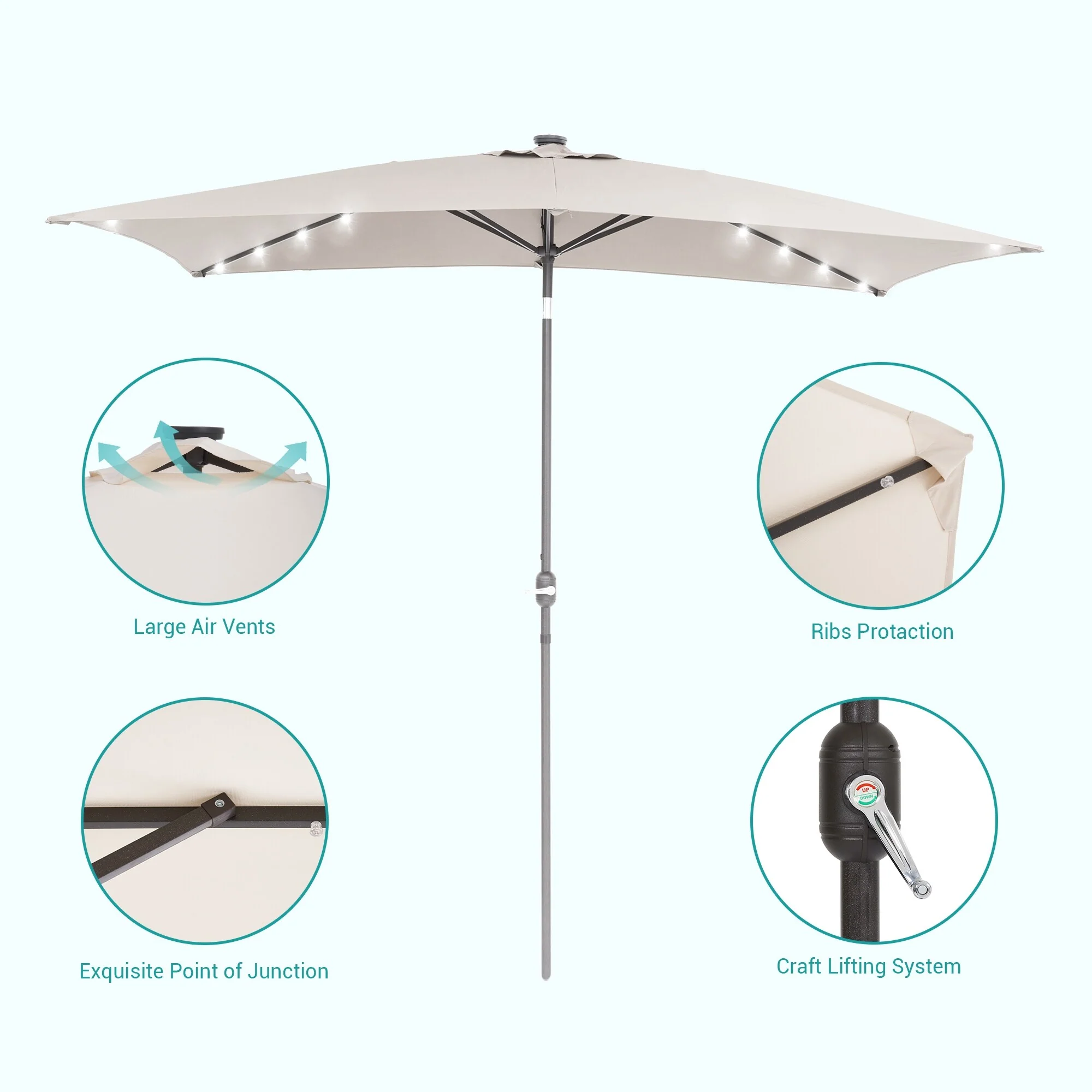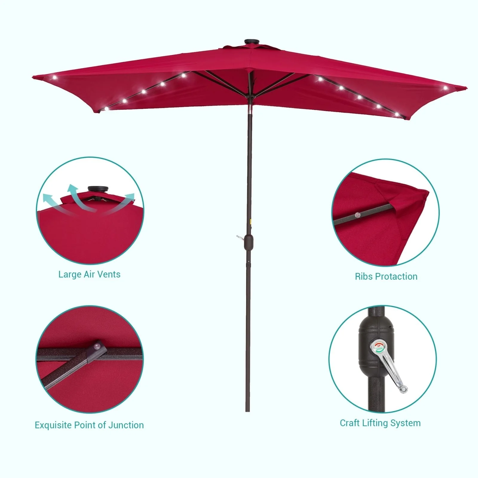 Bonosuki 10 x 6.5ft LED Patio Rectangular Umbrella Outdoor Market Umbrella Aluminium/Steel with Tilt and Crank