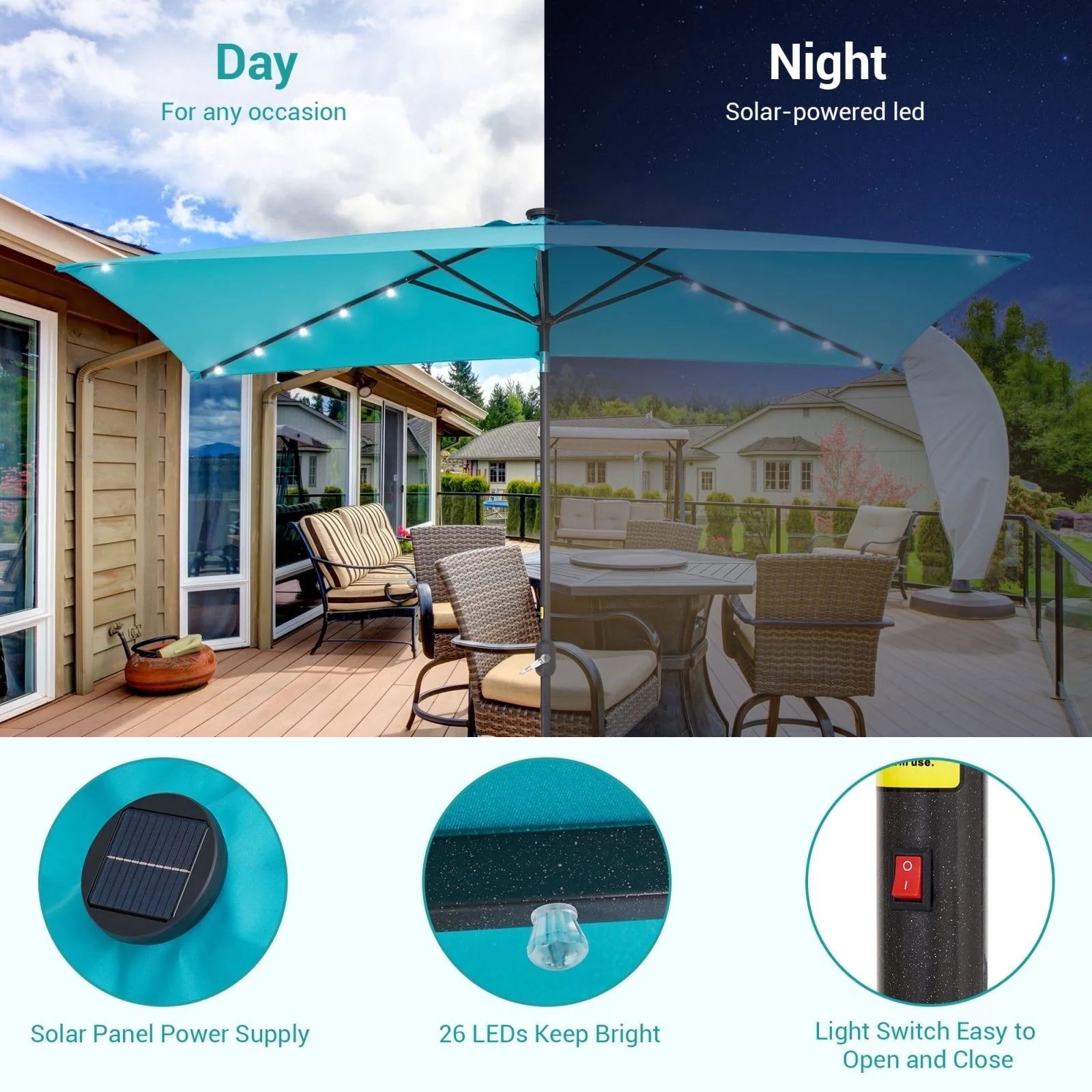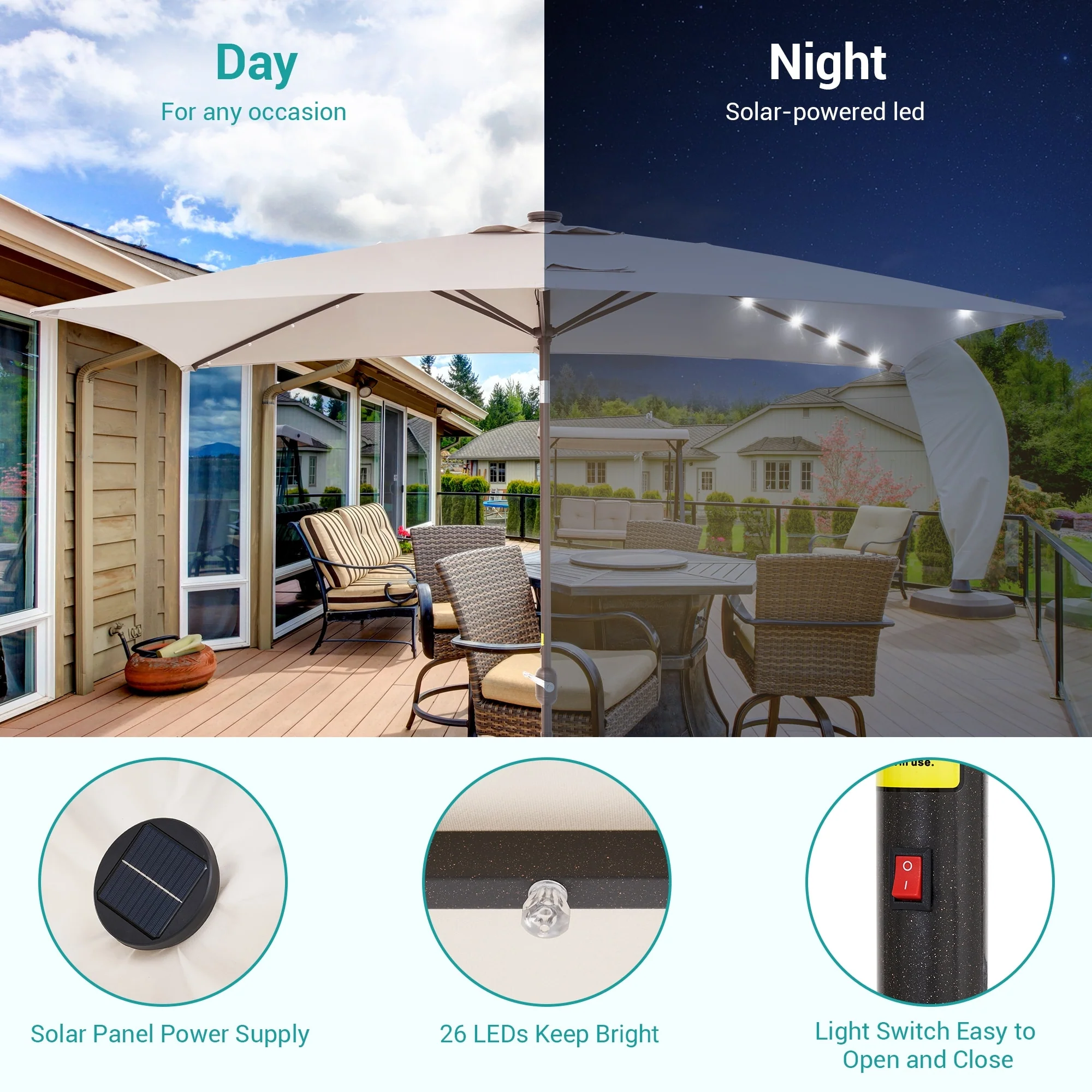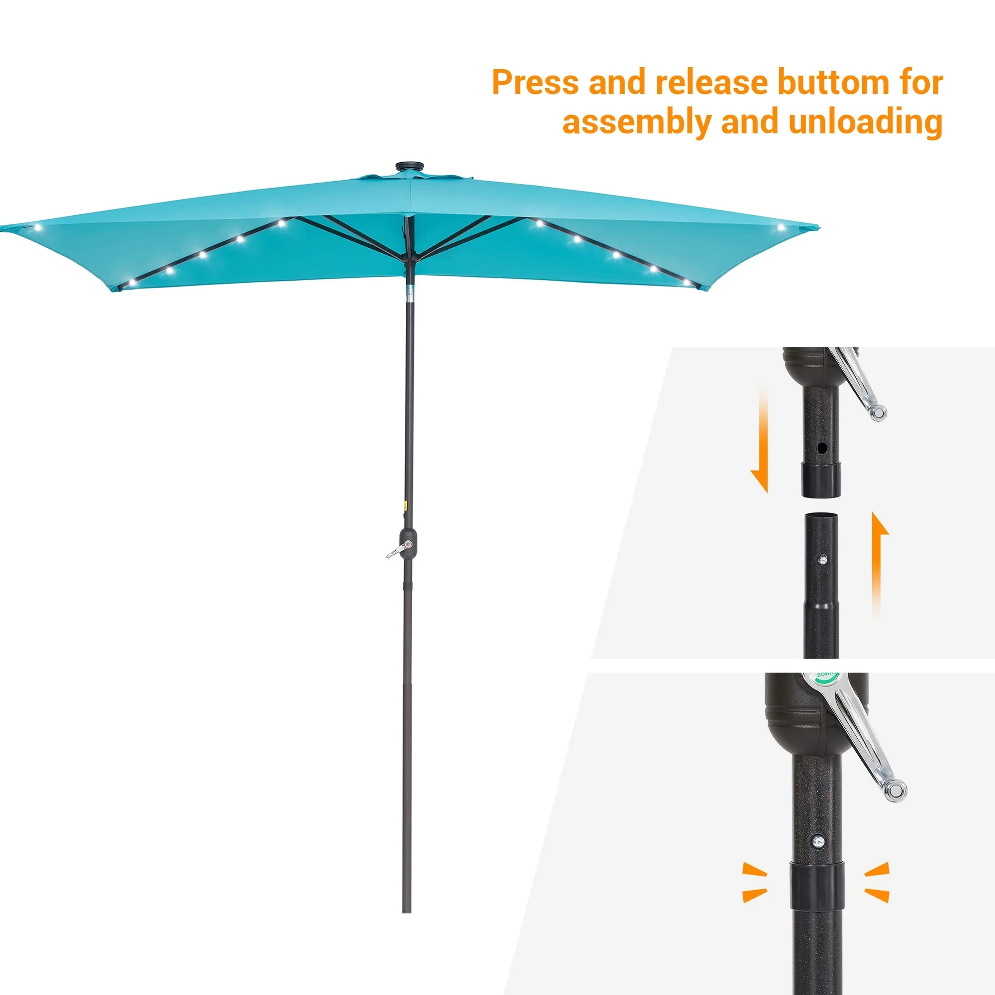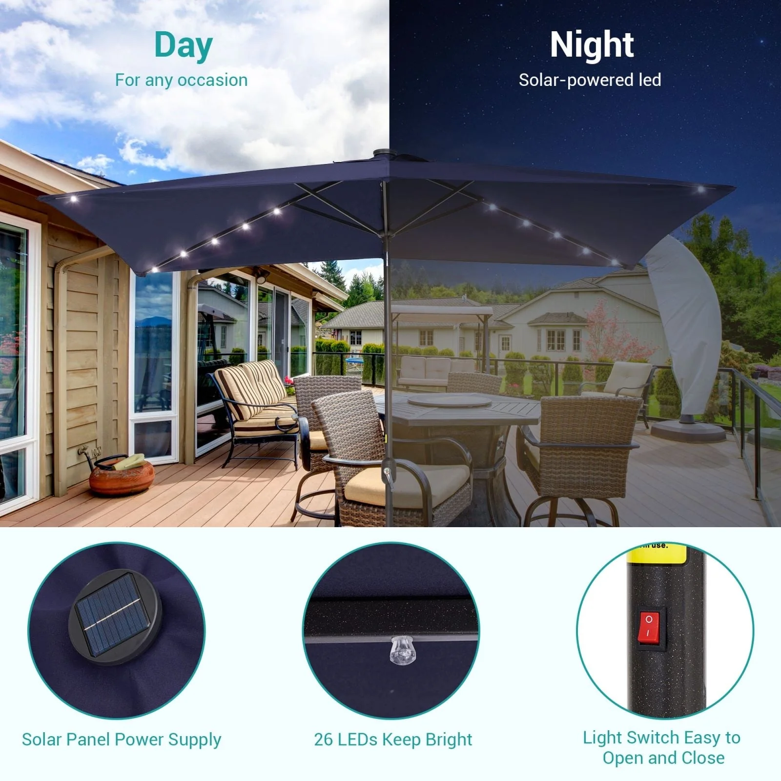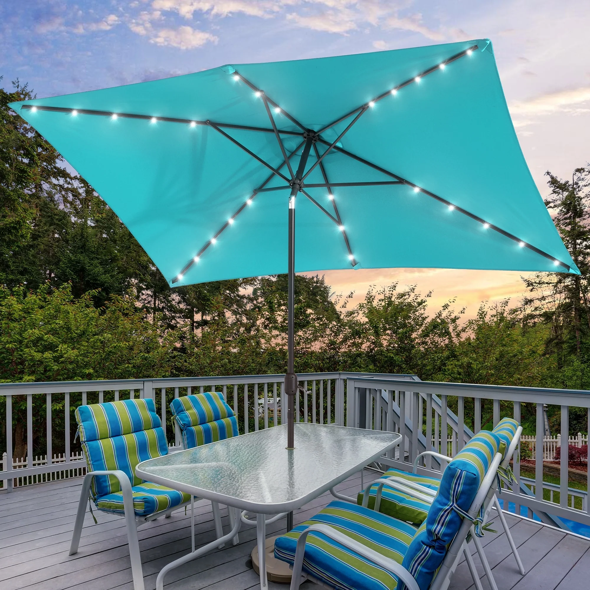 Bonosuki 10 x 6.5ft LED Patio Rectangular Umbrella Outdoor Market Umbrella Aluminium/Steel with Tilt and Crank
