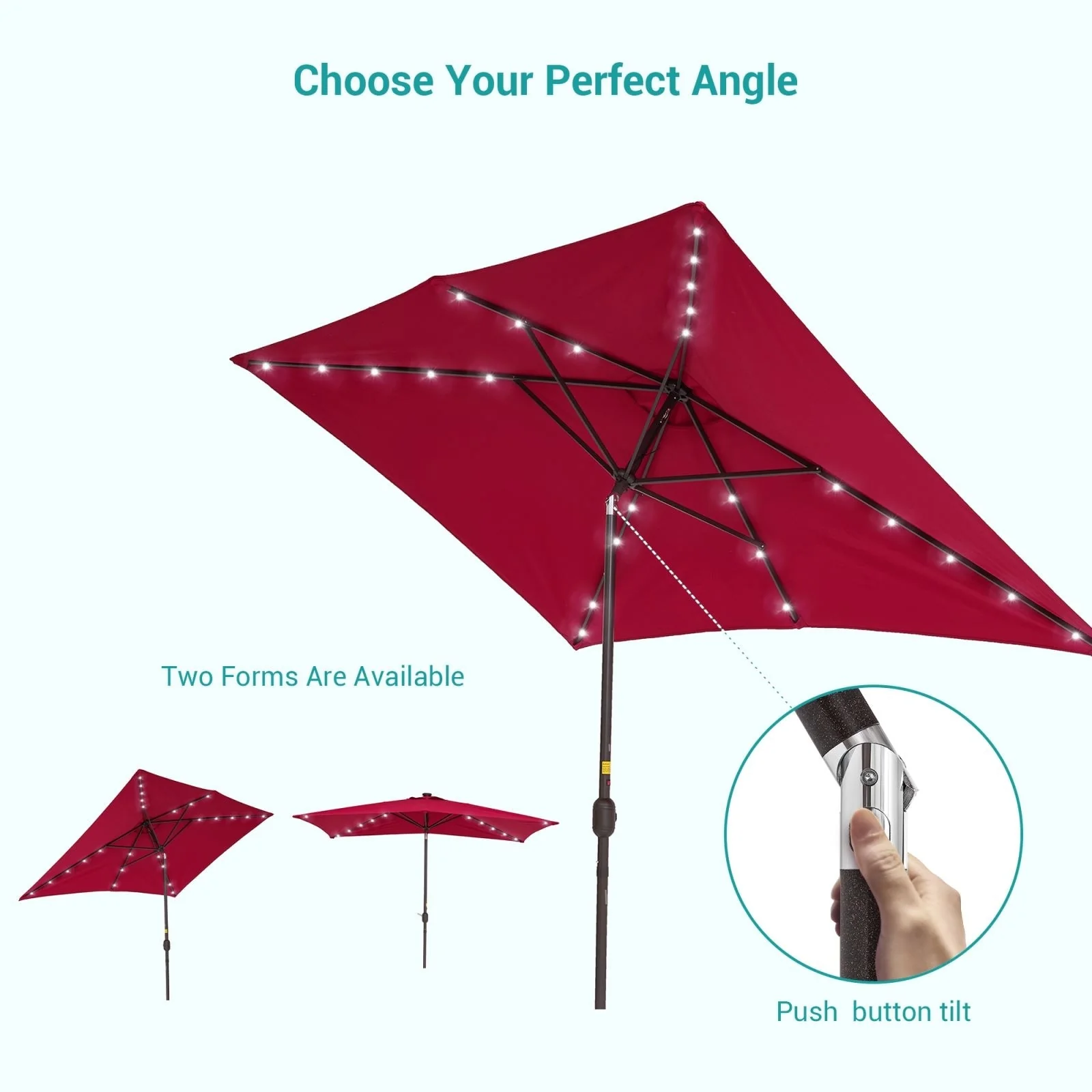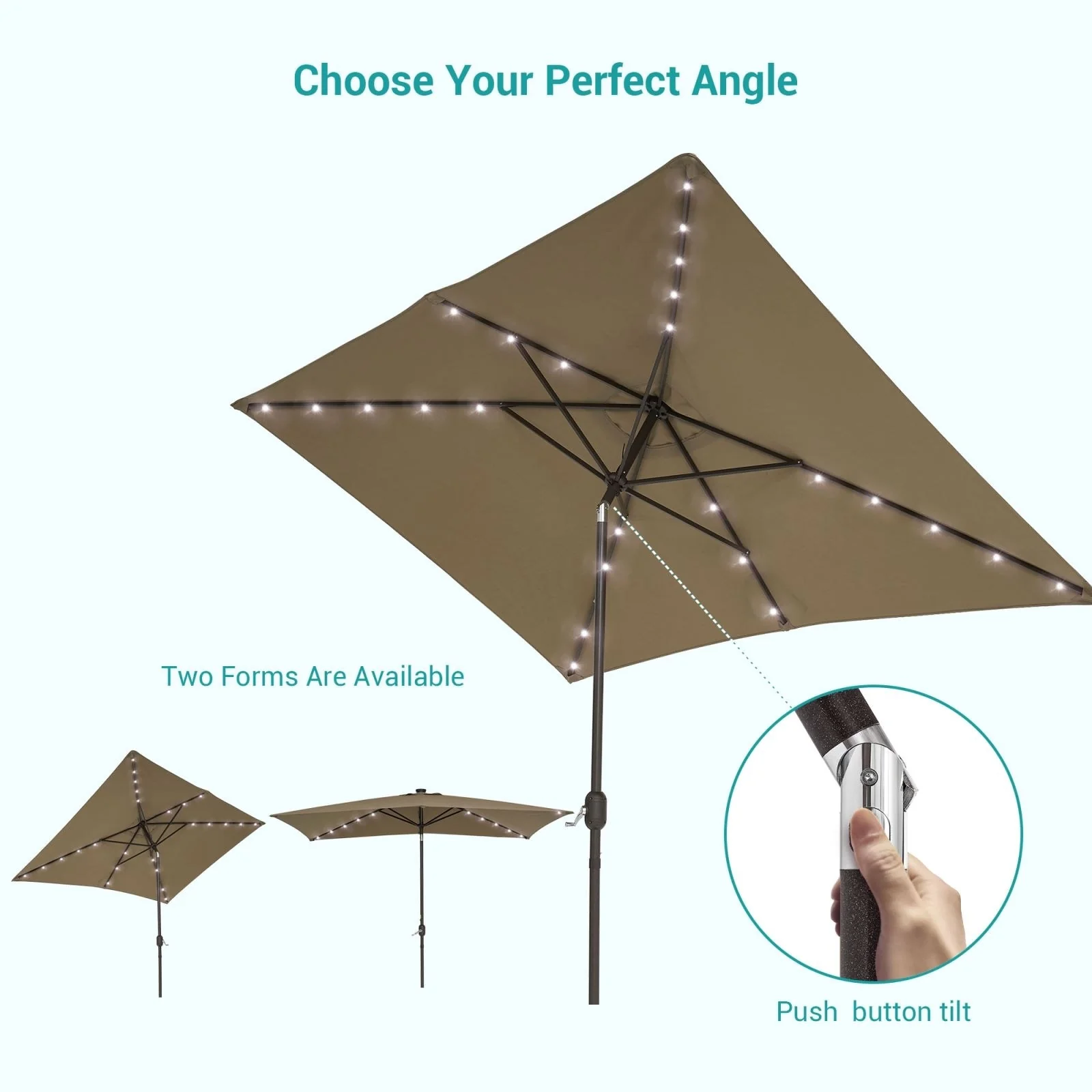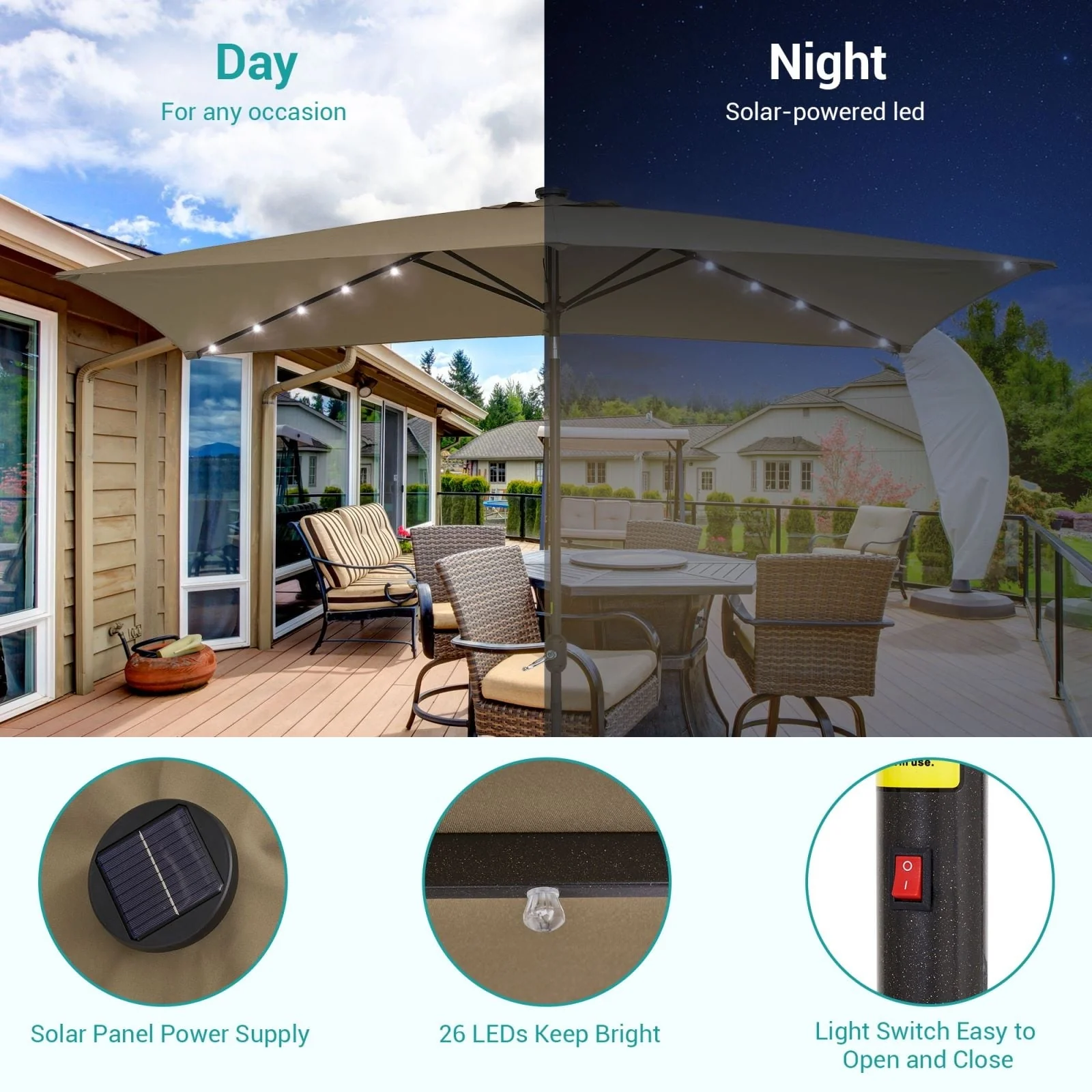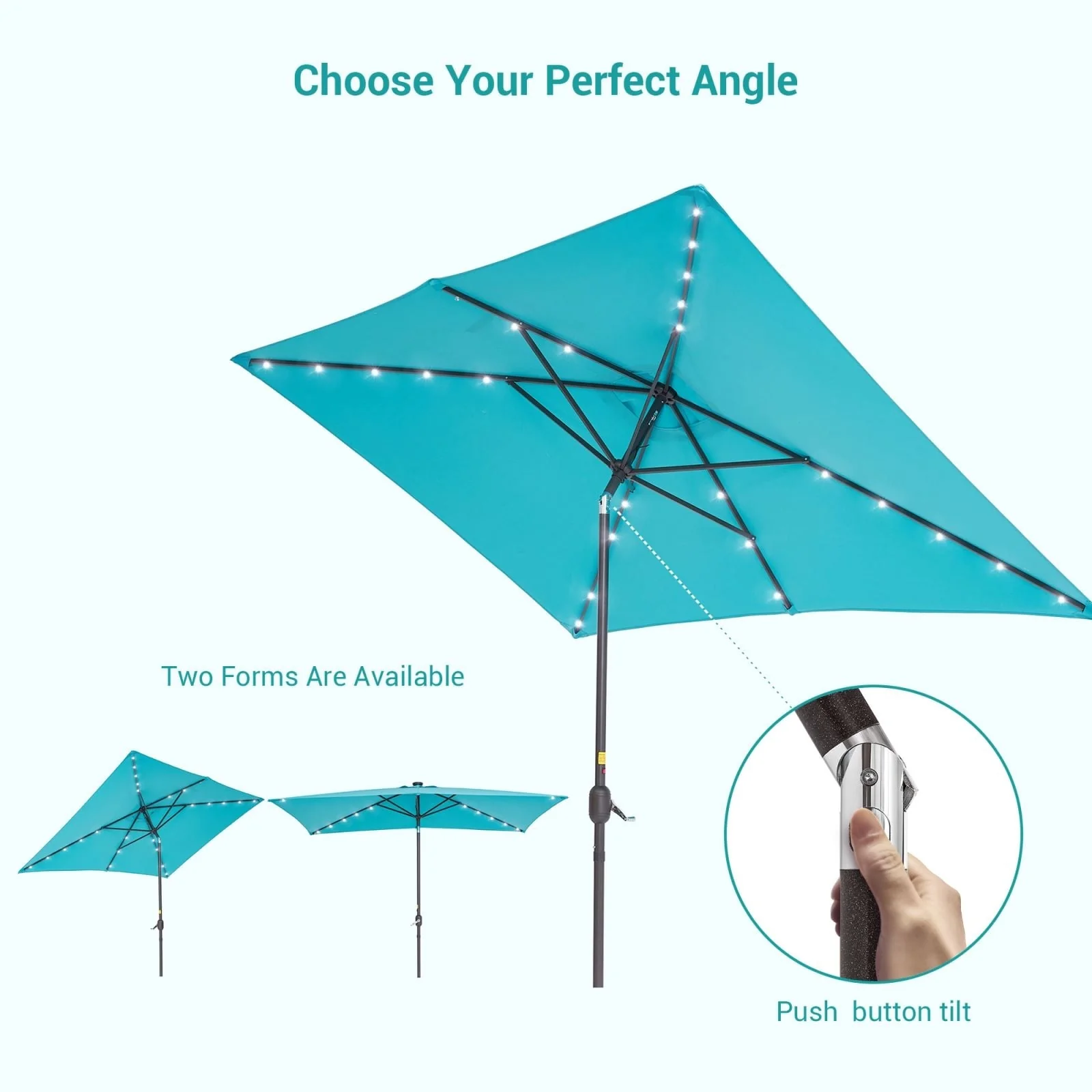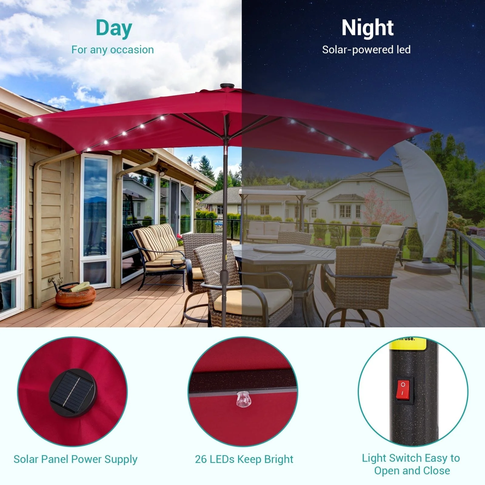 Bonosuki 10 x 6.5ft LED Patio Rectangular Umbrella Outdoor Market Umbrella Aluminium/Steel with Tilt and Crank