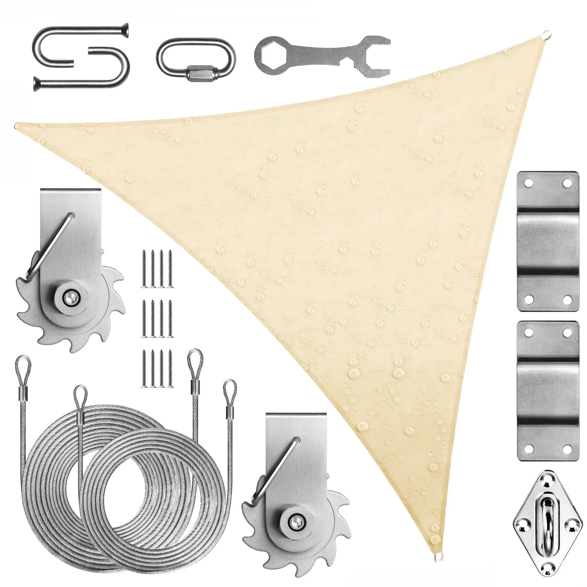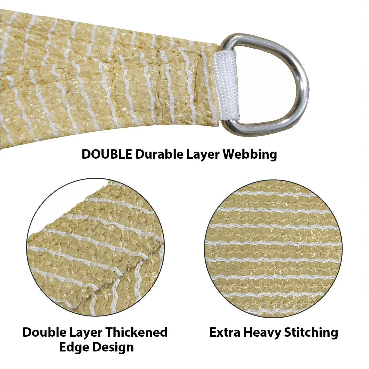 Beige Sun Shade Sail Triangle Canopy 185 GSM Durable Fabric UV Block Awning for Outdoor Patio Garden Backyard