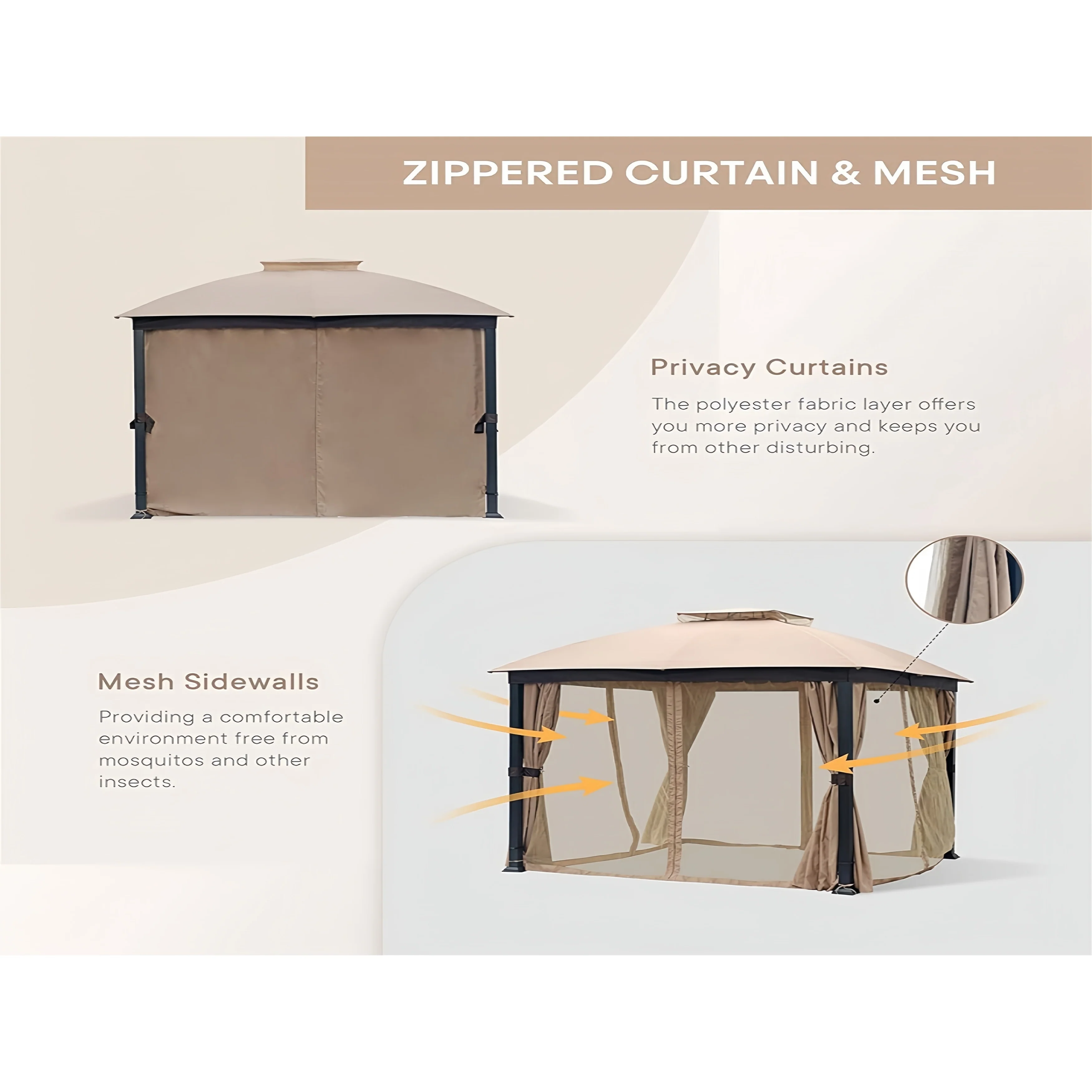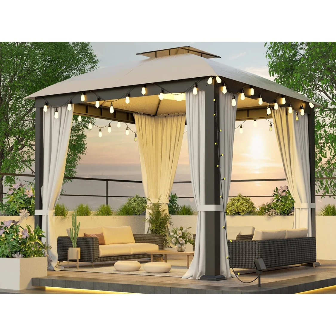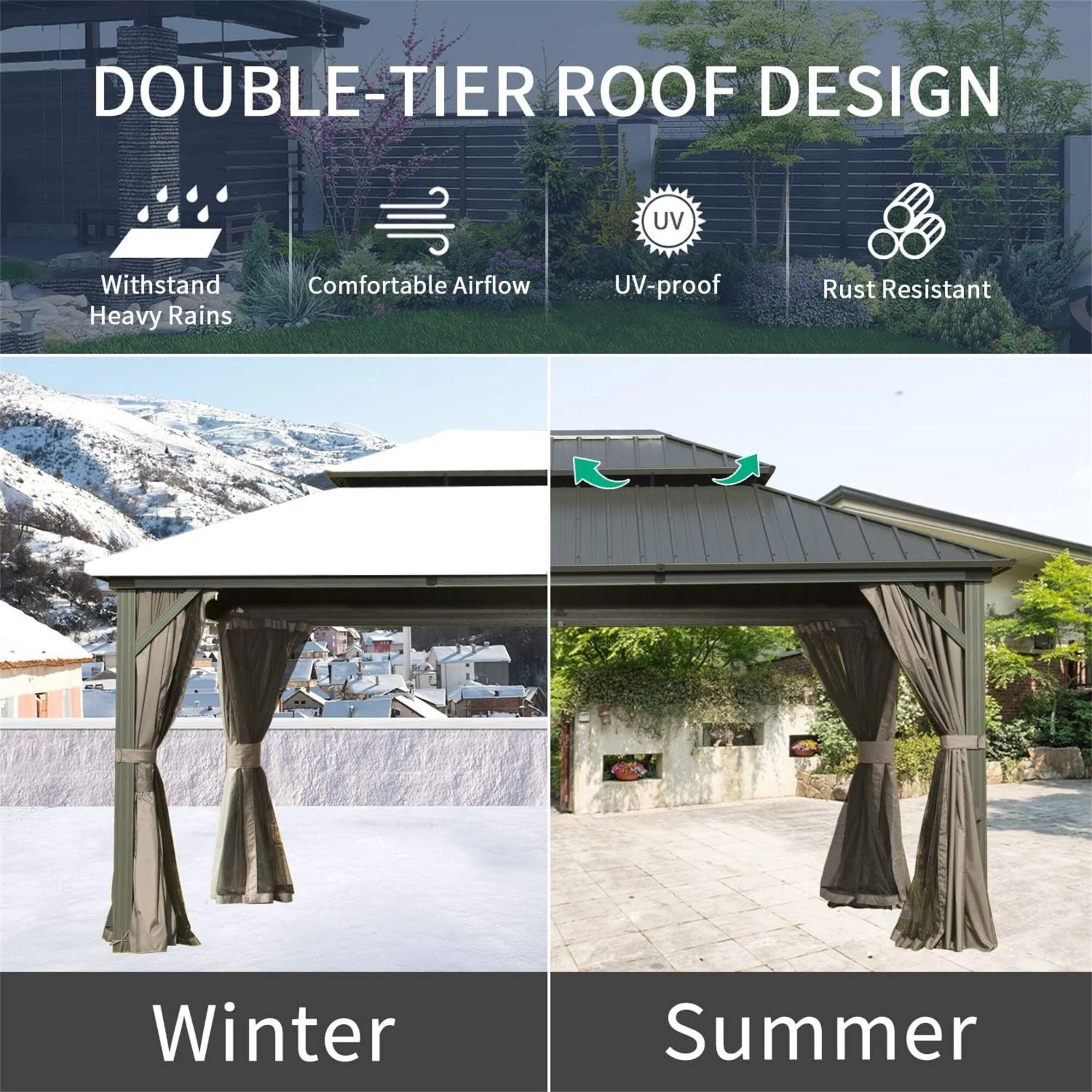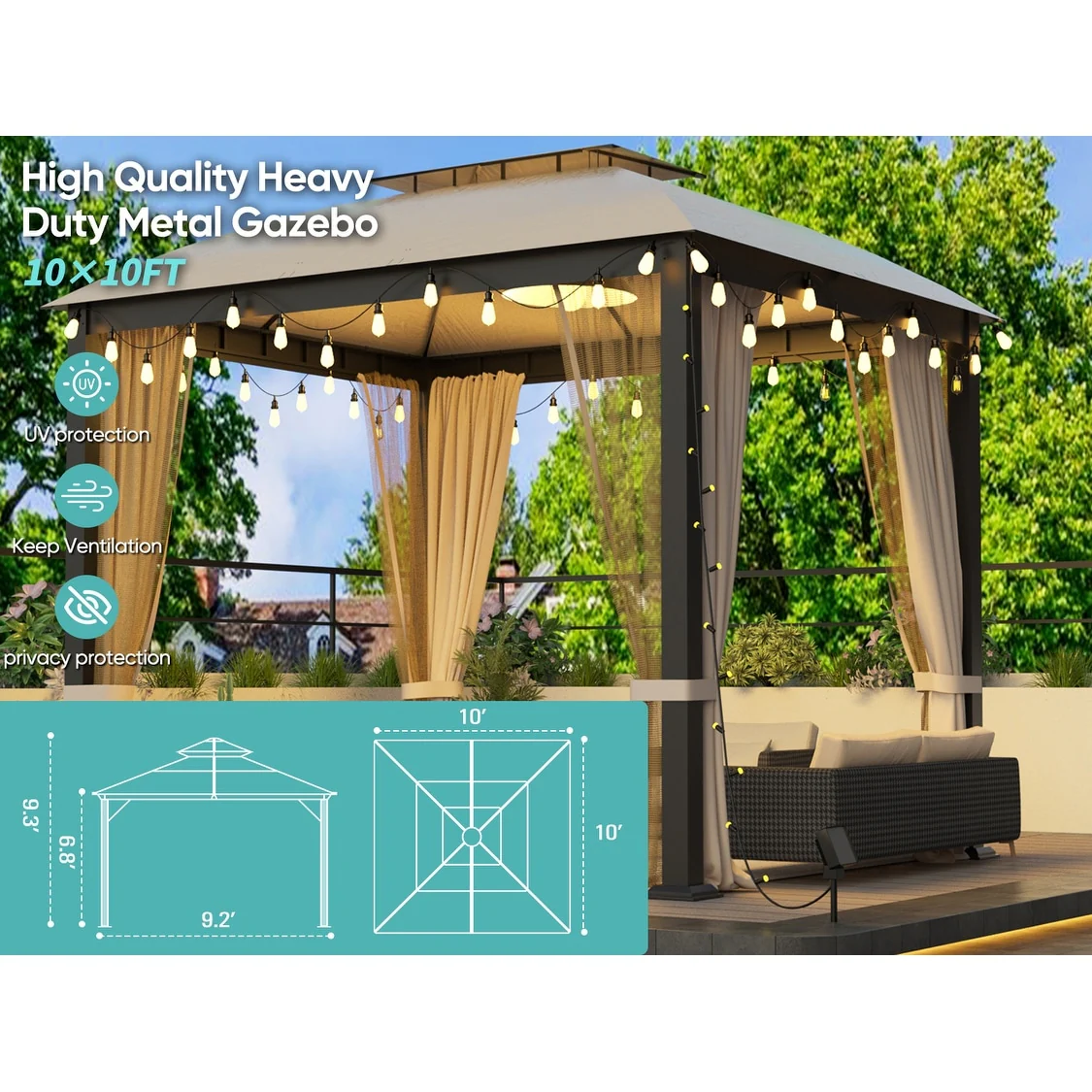 10X10FT Softtop Metal Gazebo with Mosquito Net&Sunshade Curtains,Sturdy Heavy Duty Double Roof Canopy