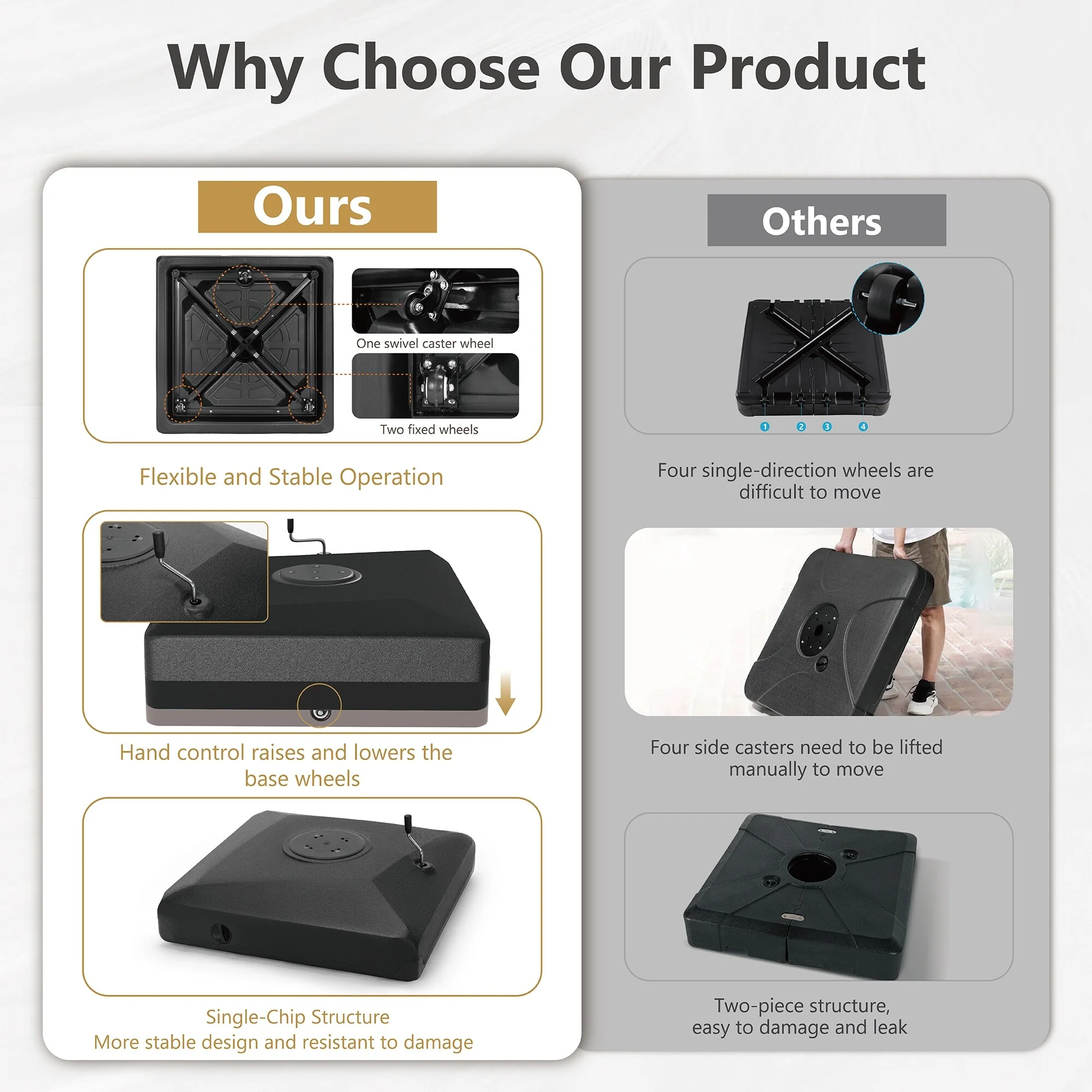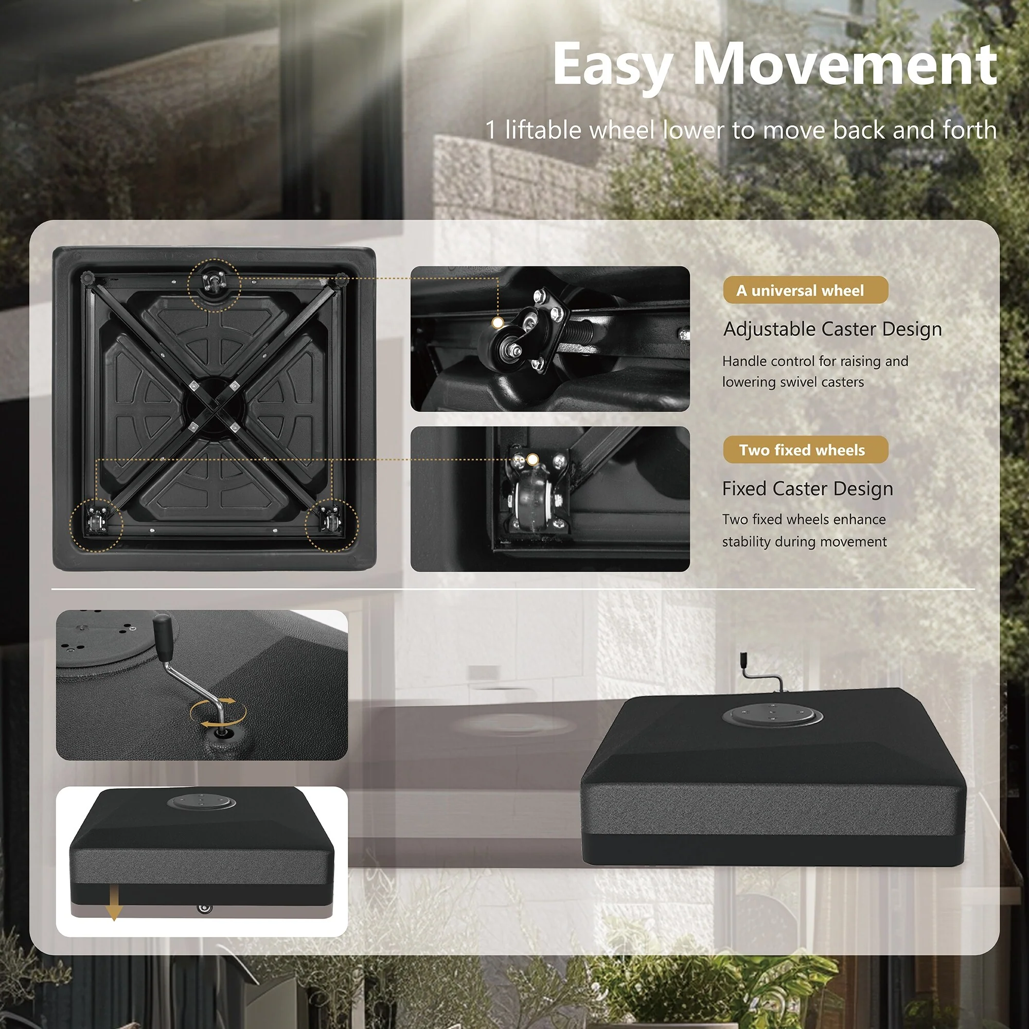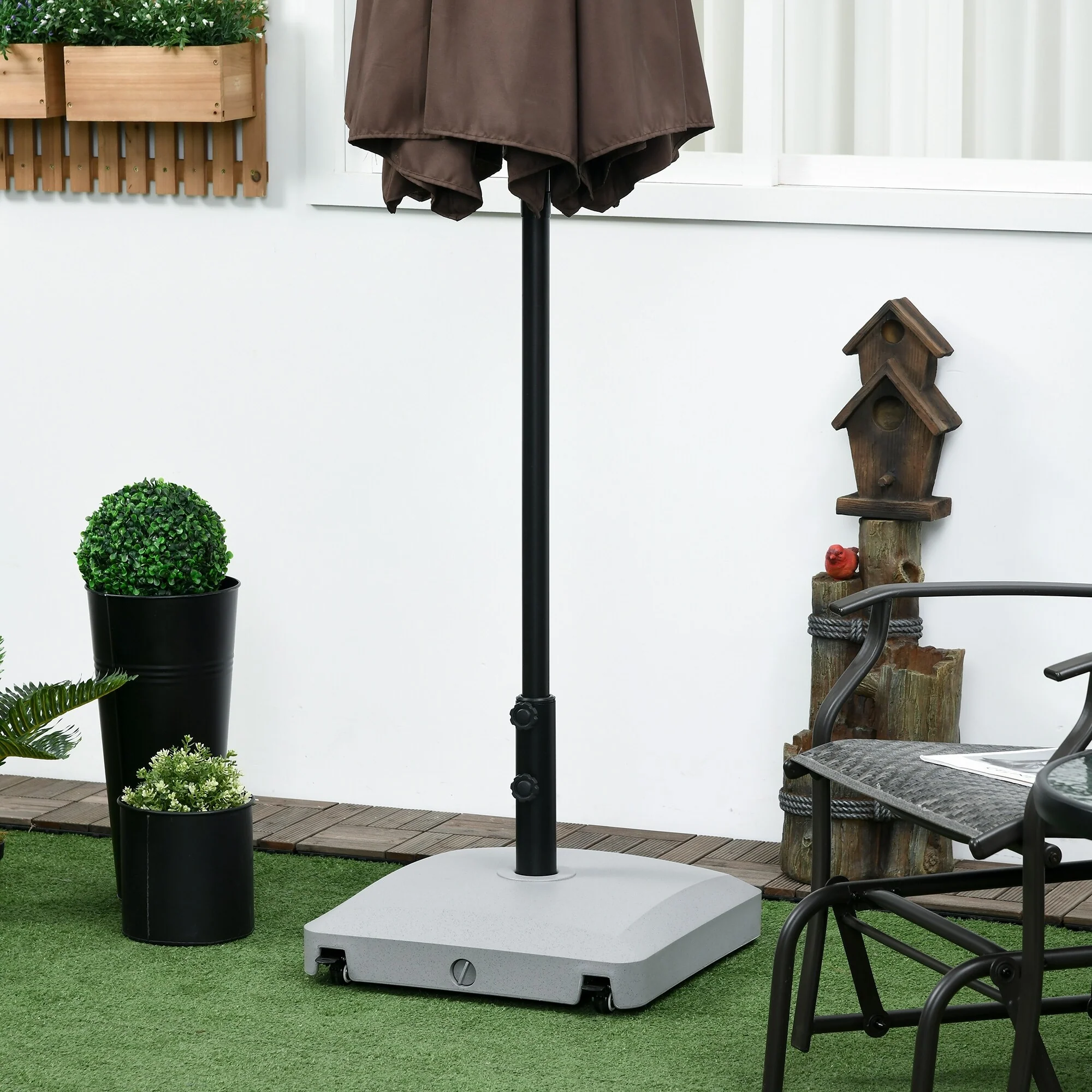 Outsunny Patio Umbrella Base with Wheels, 53lbs Water or 66lbs Sand Filled, Heavy Duty Outdoor Umbrella Stand Holder