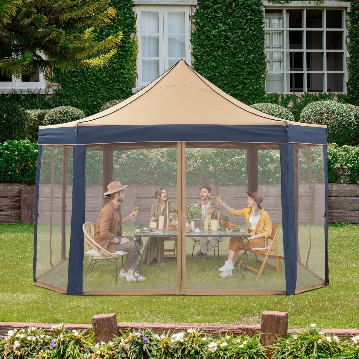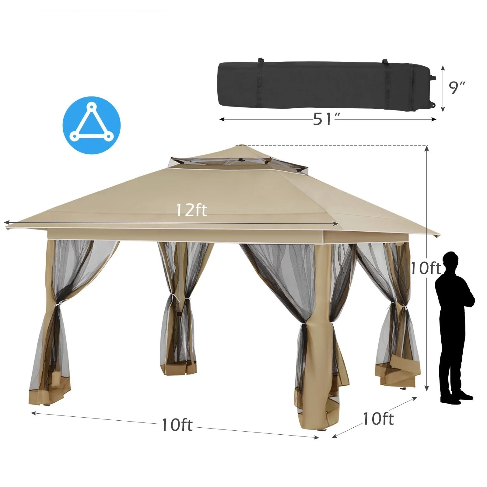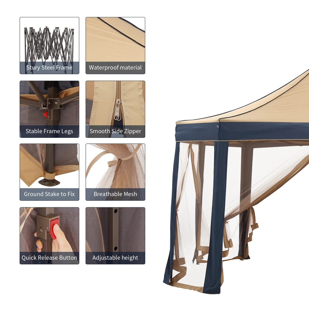 AVAWING 12x12 ft Khaki Pop-up Canopy Party Tent with Sidewalls