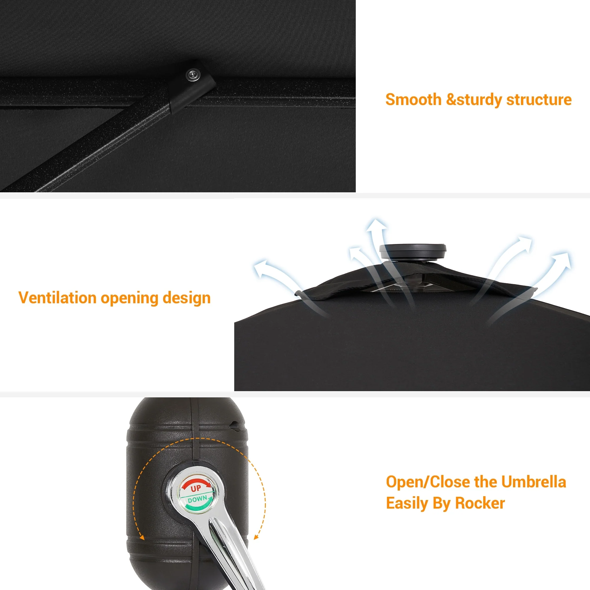 SimplyShade Catalina Rectangle Black Push Button Tilt Umbrella