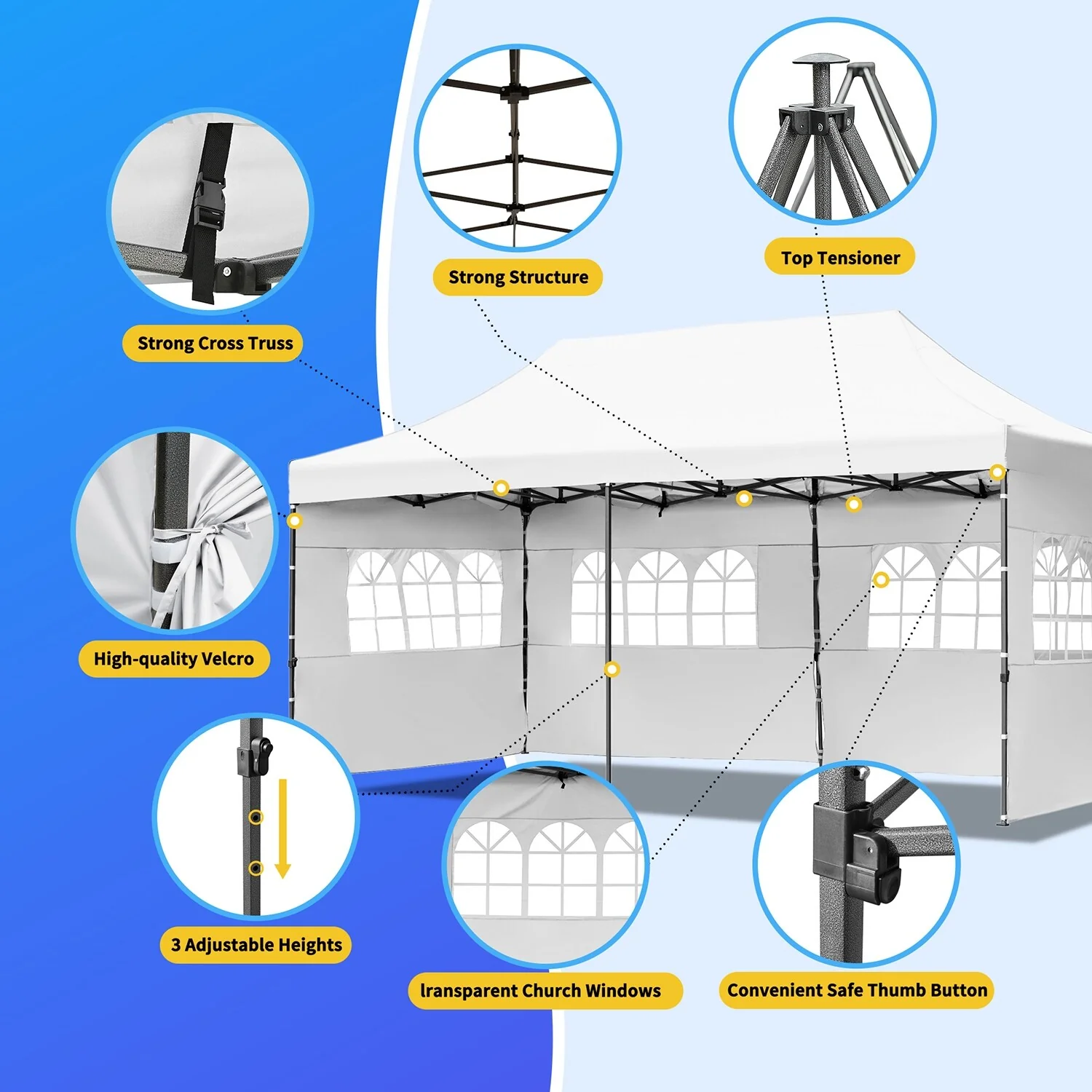 10x20 Heavy Duty Canopy Tent, UV Waterproof, 6 Sidewalls for Wedding