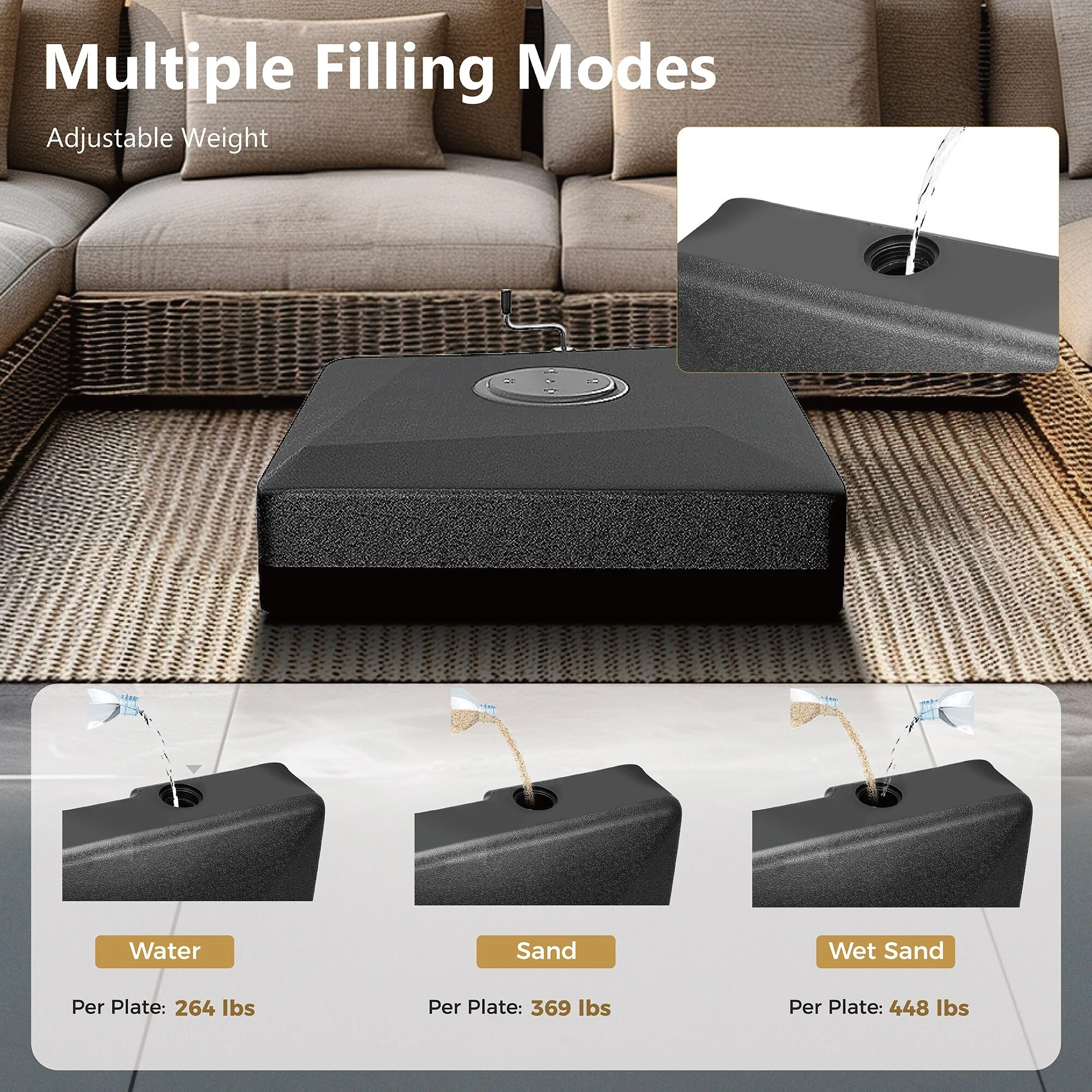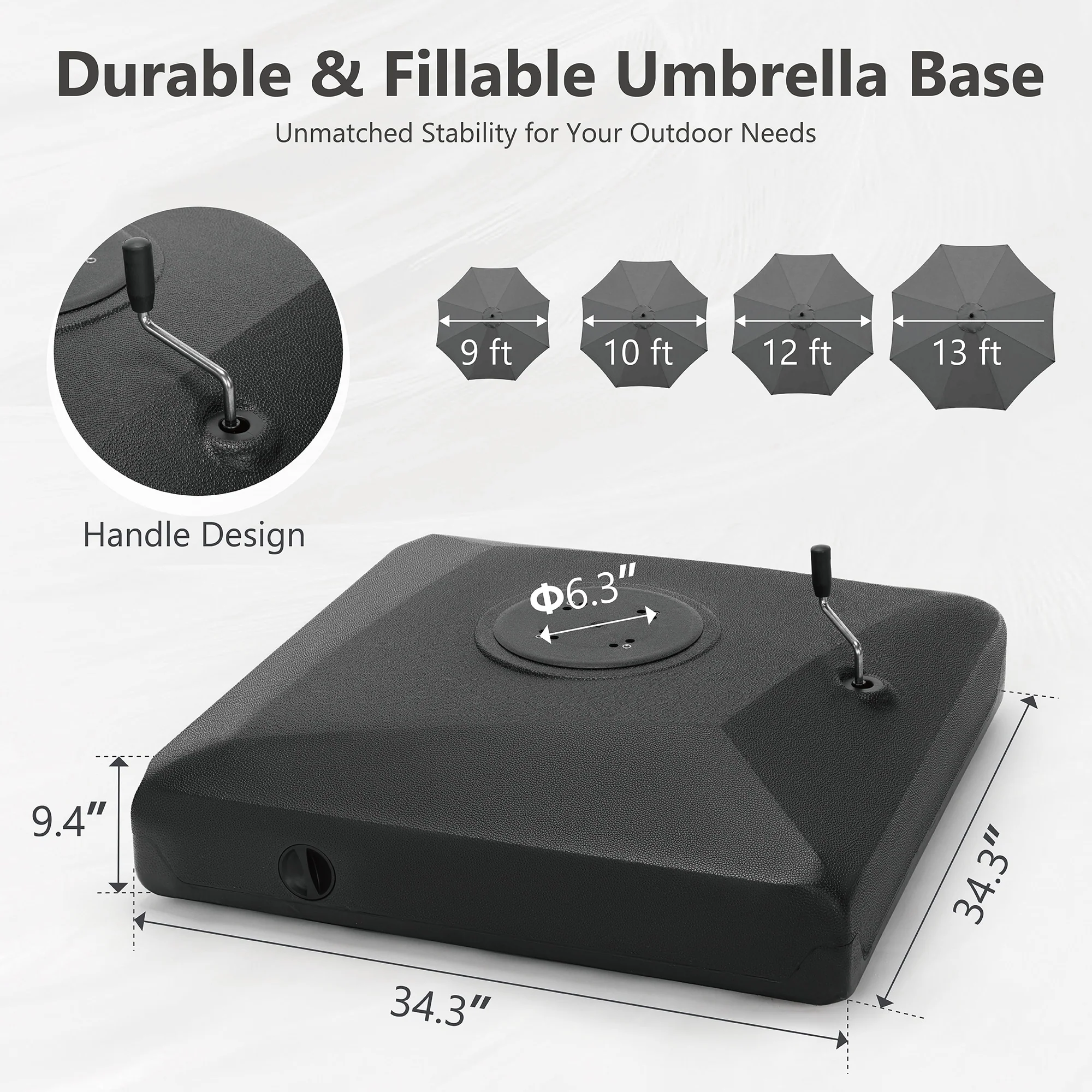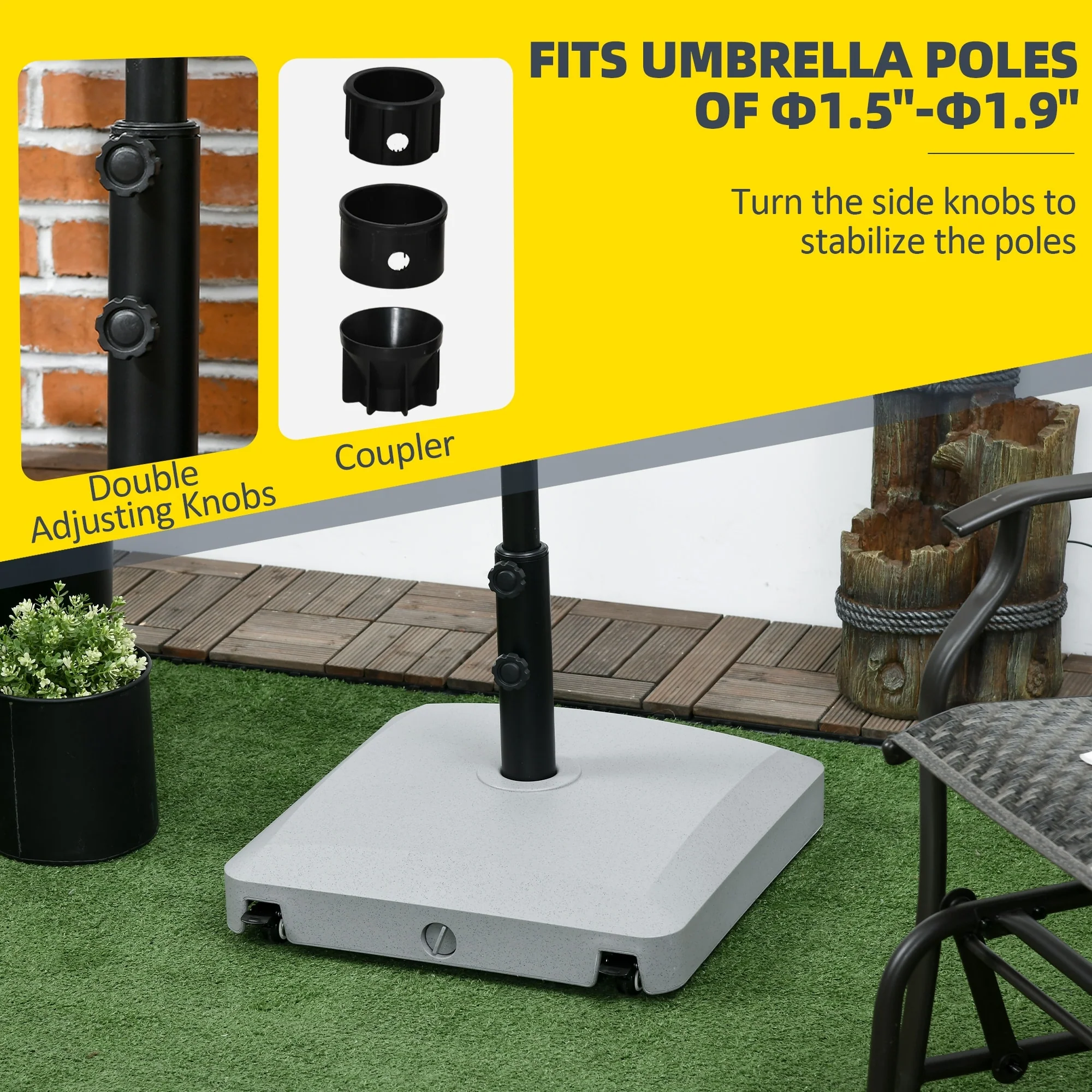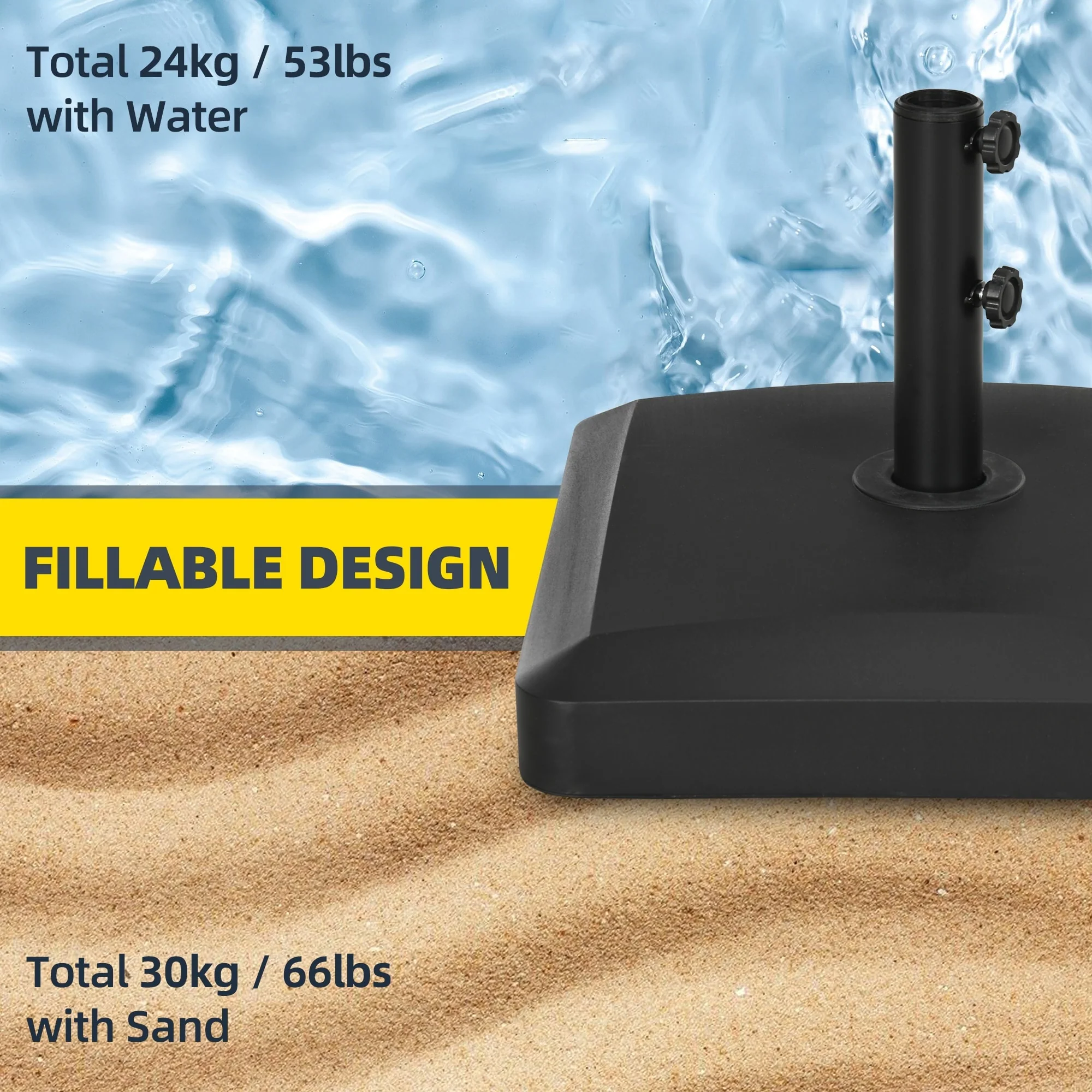 Outsunny 88 lbs. Fillable Umbrella Base with Steel Umbrella Holder for 1.25", 1.5" or 2" Umbrella Poles