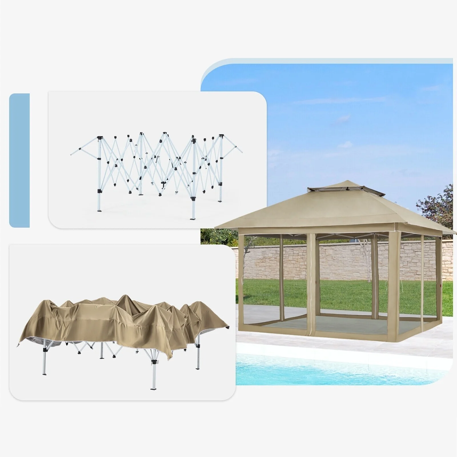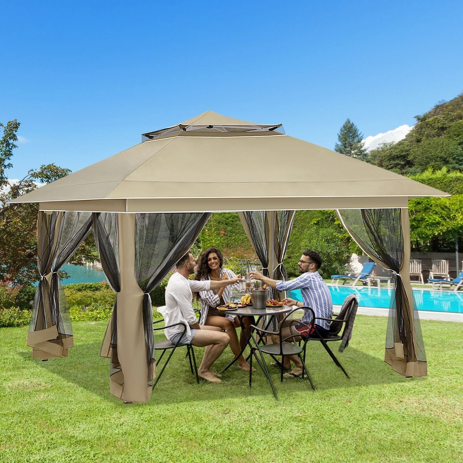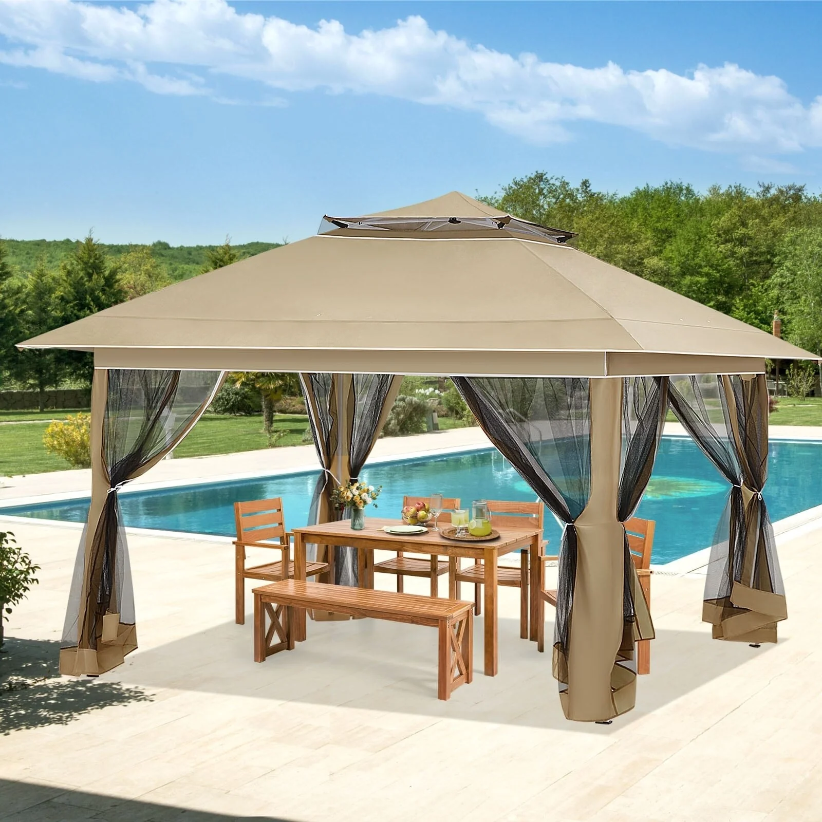 Outdoor 13x13Ft Canopy,Patio Pop-up Folding Gazebo Canopy Tent Curtain