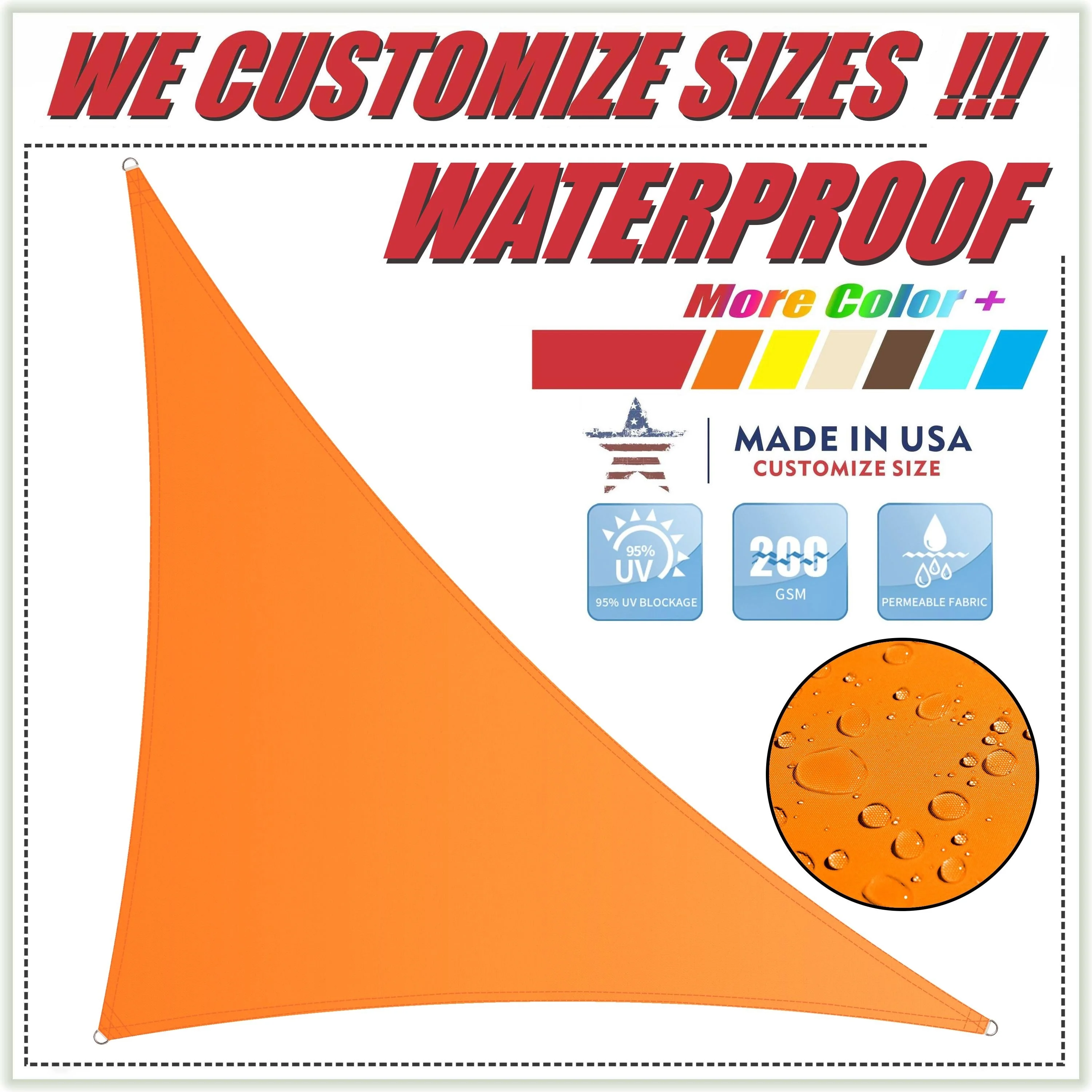 ColourTreeUSA Triangle Waterproof Sun Shade Sail HDPE Mesh Fabric Screen Canopy UV Block 220 GSM