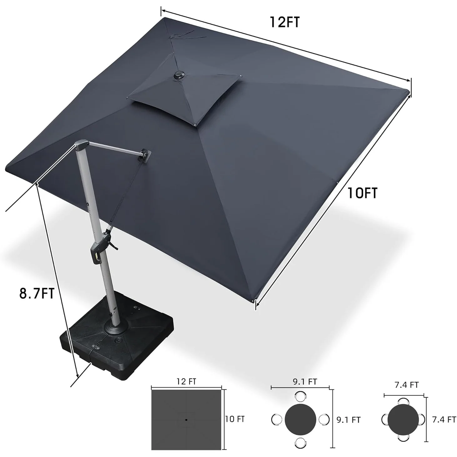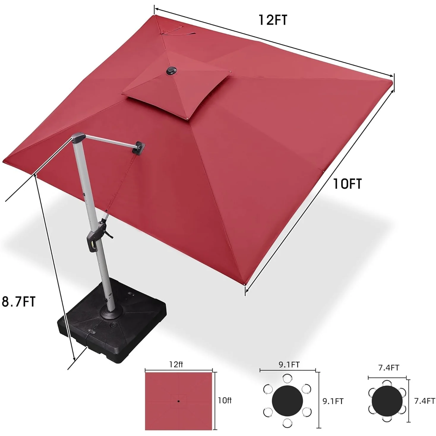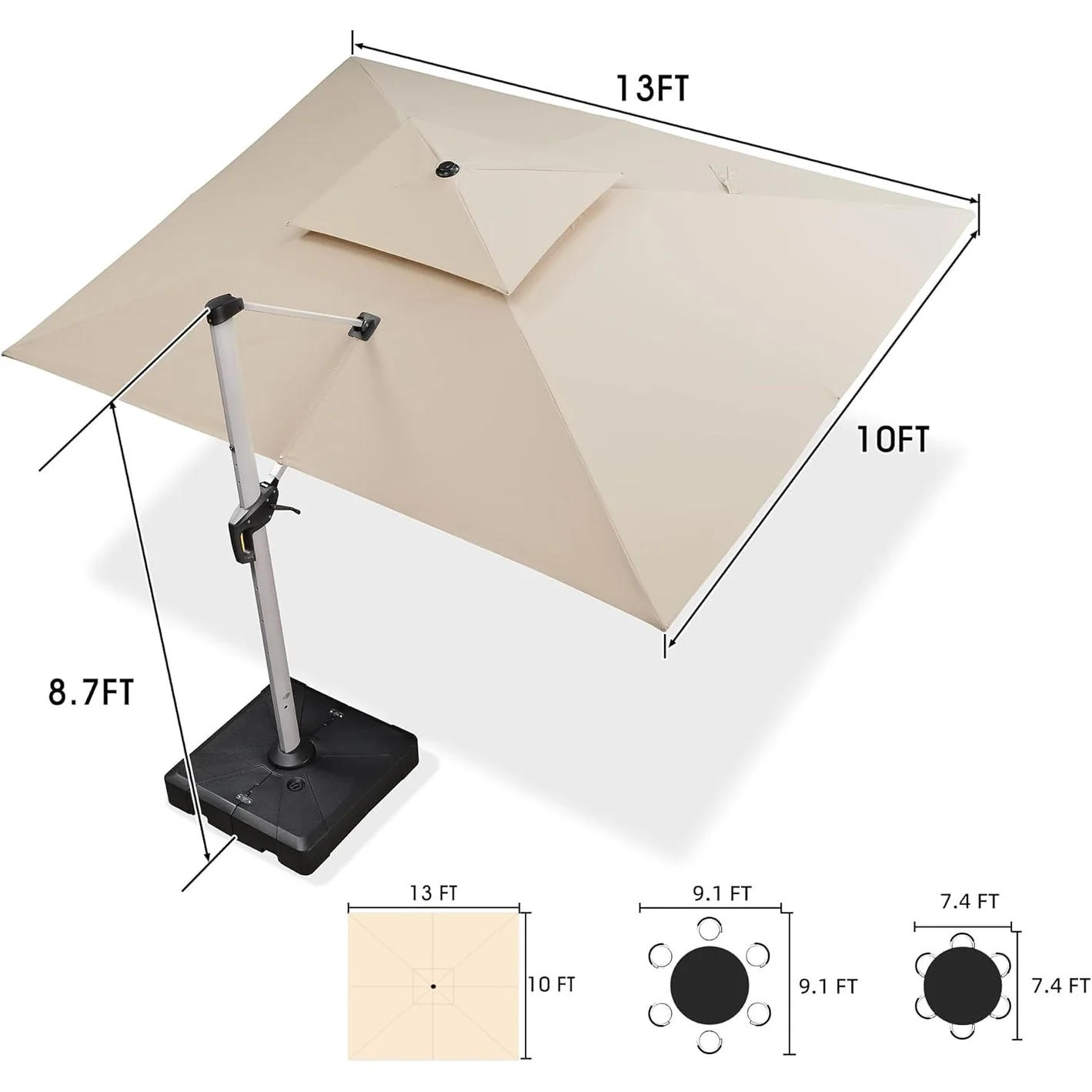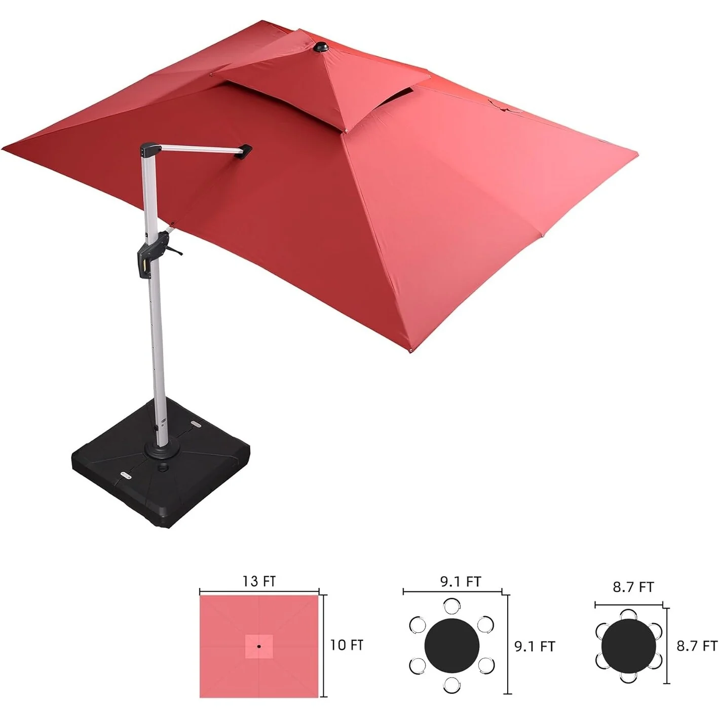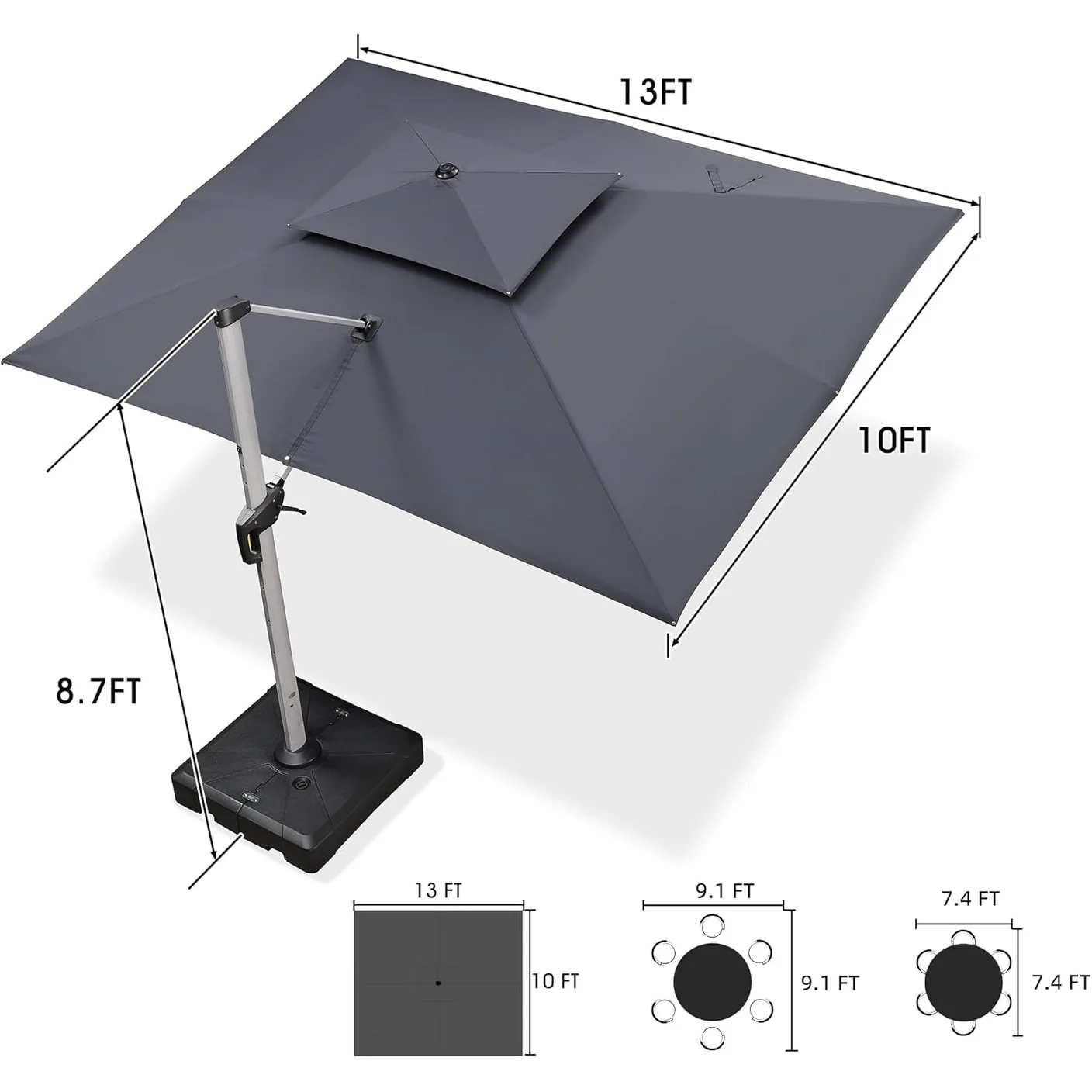 PURPLE LEAF Double Top 9x11/10x12/10x13ft Rectangle Umbrella Large Cantilever Outdoor Classic Umbrella with Base