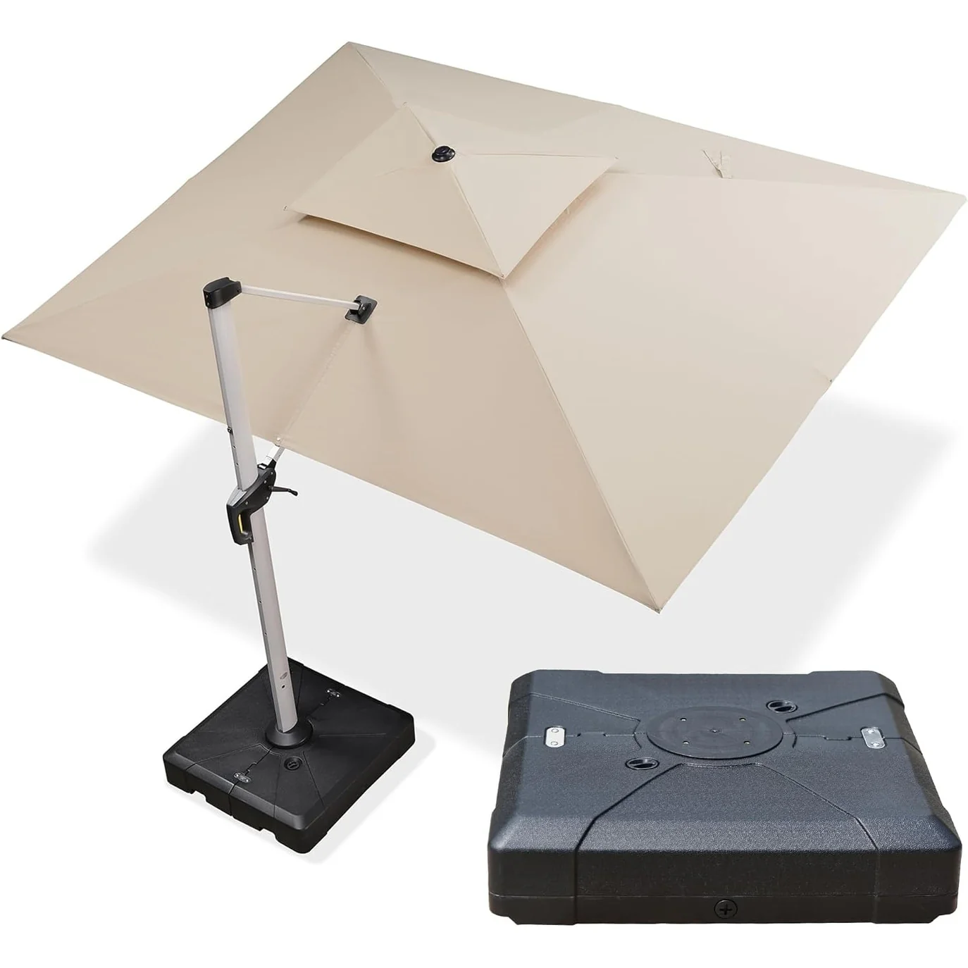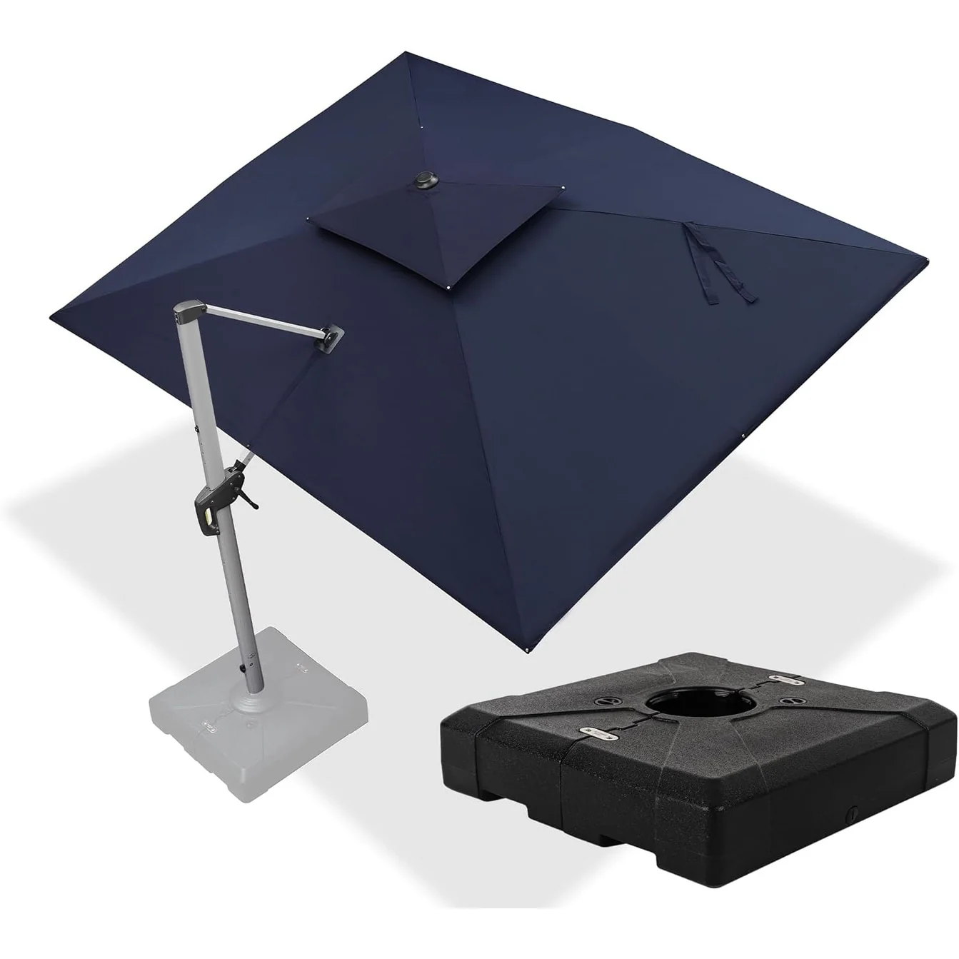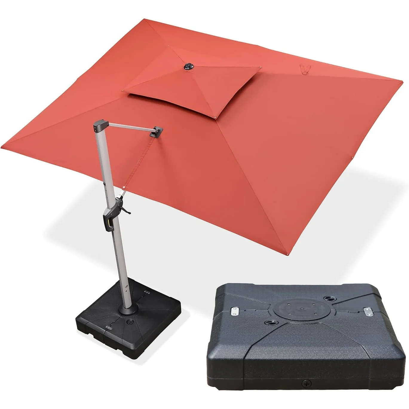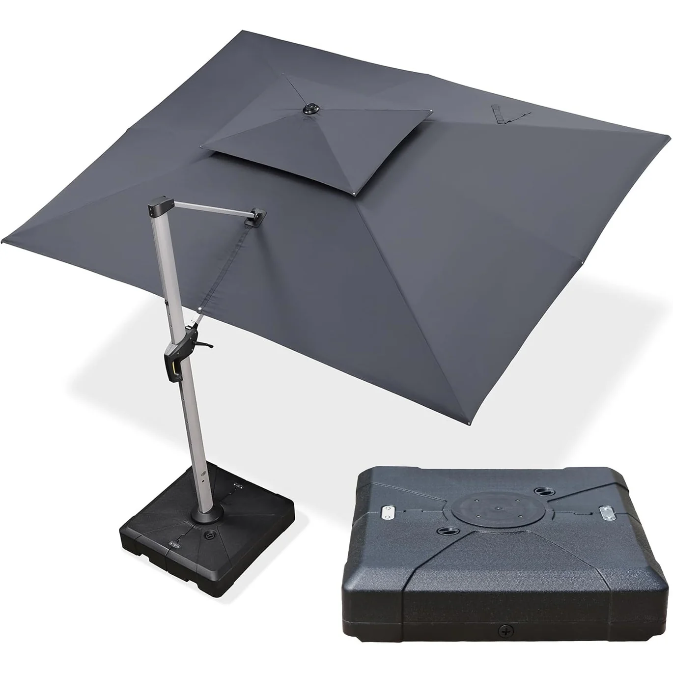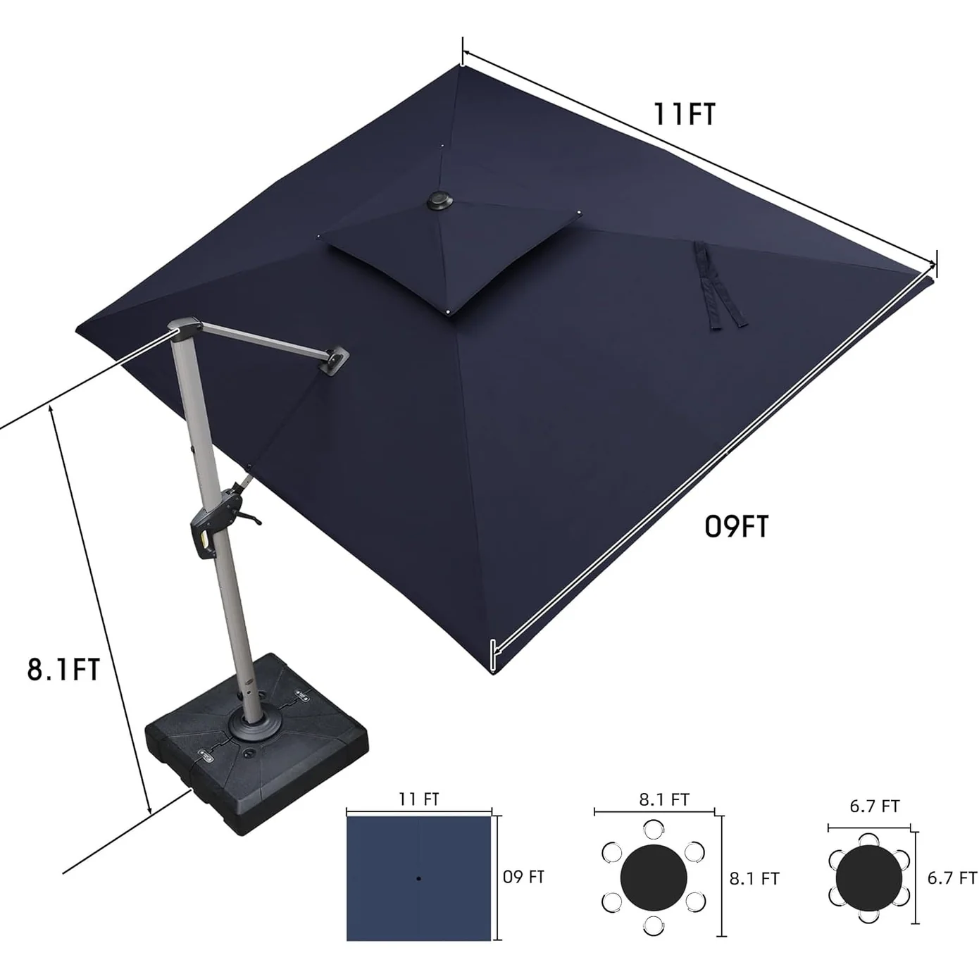 PURPLE LEAF Double Top 9x11/10x12/10x13ft Rectangle Umbrella Large Cantilever Outdoor Classic Umbrella with Base
