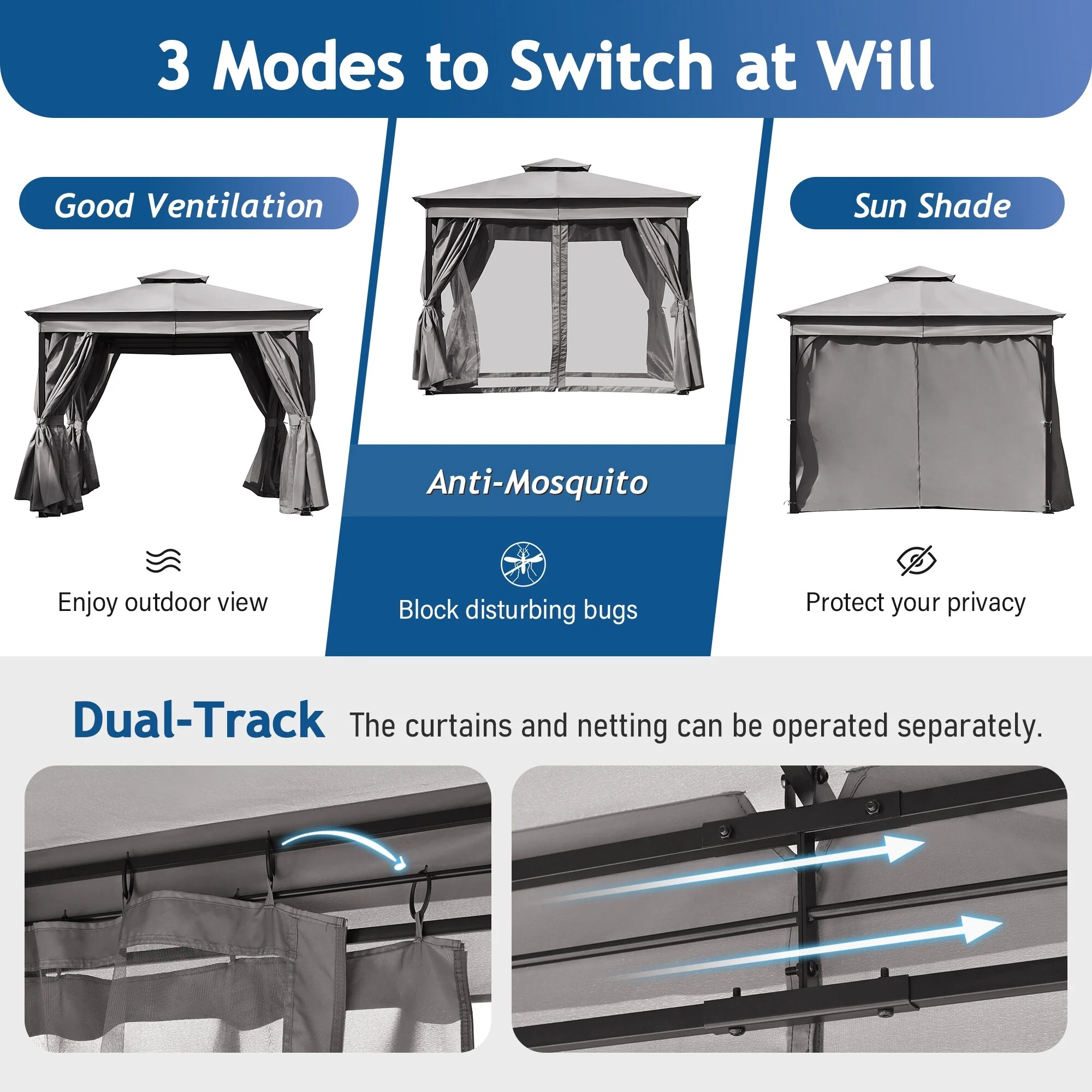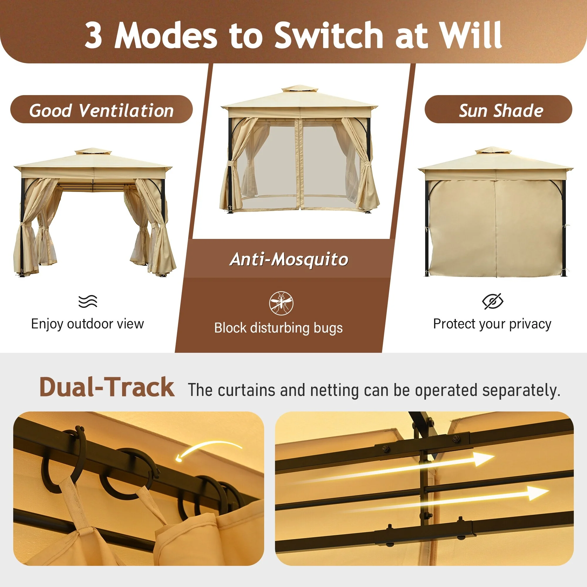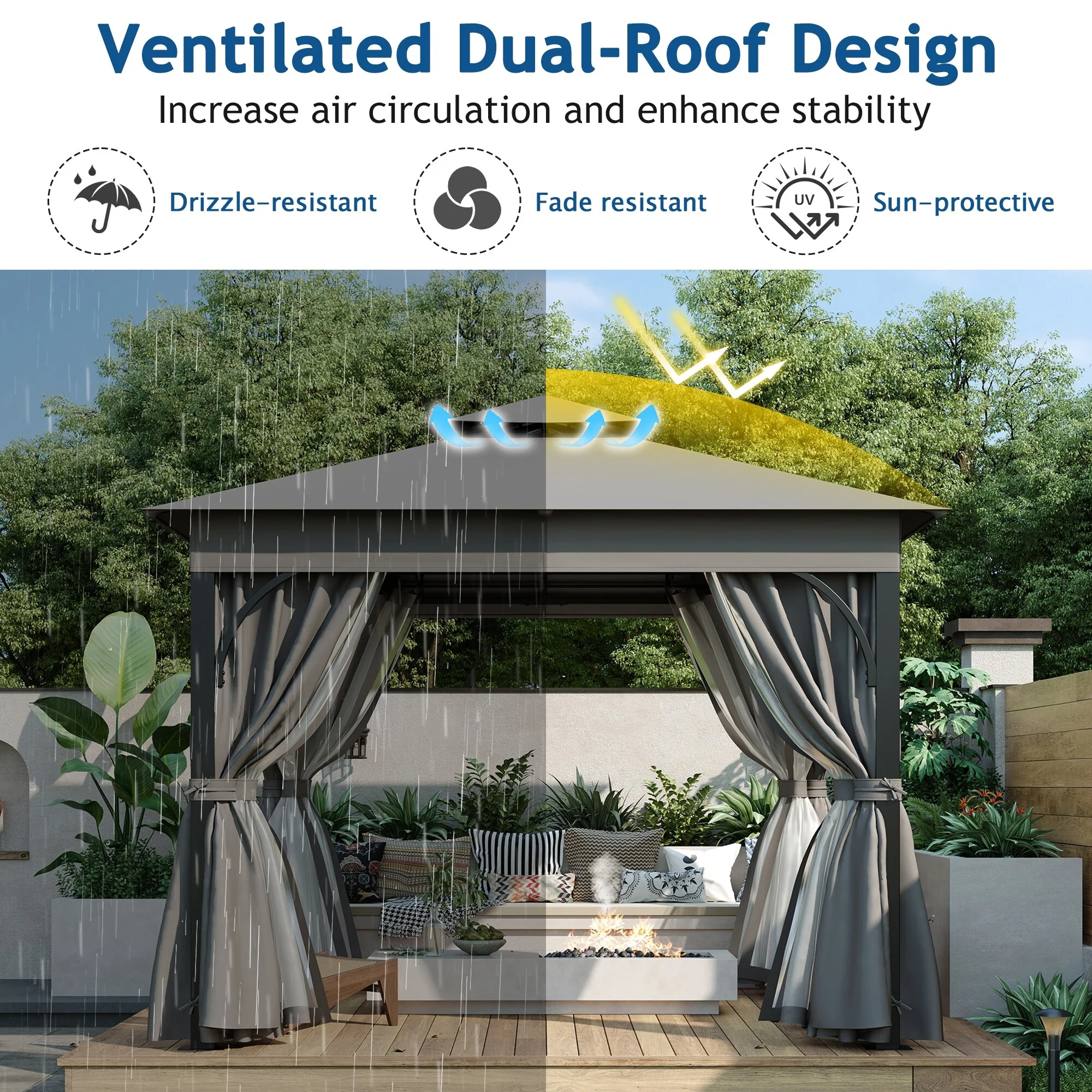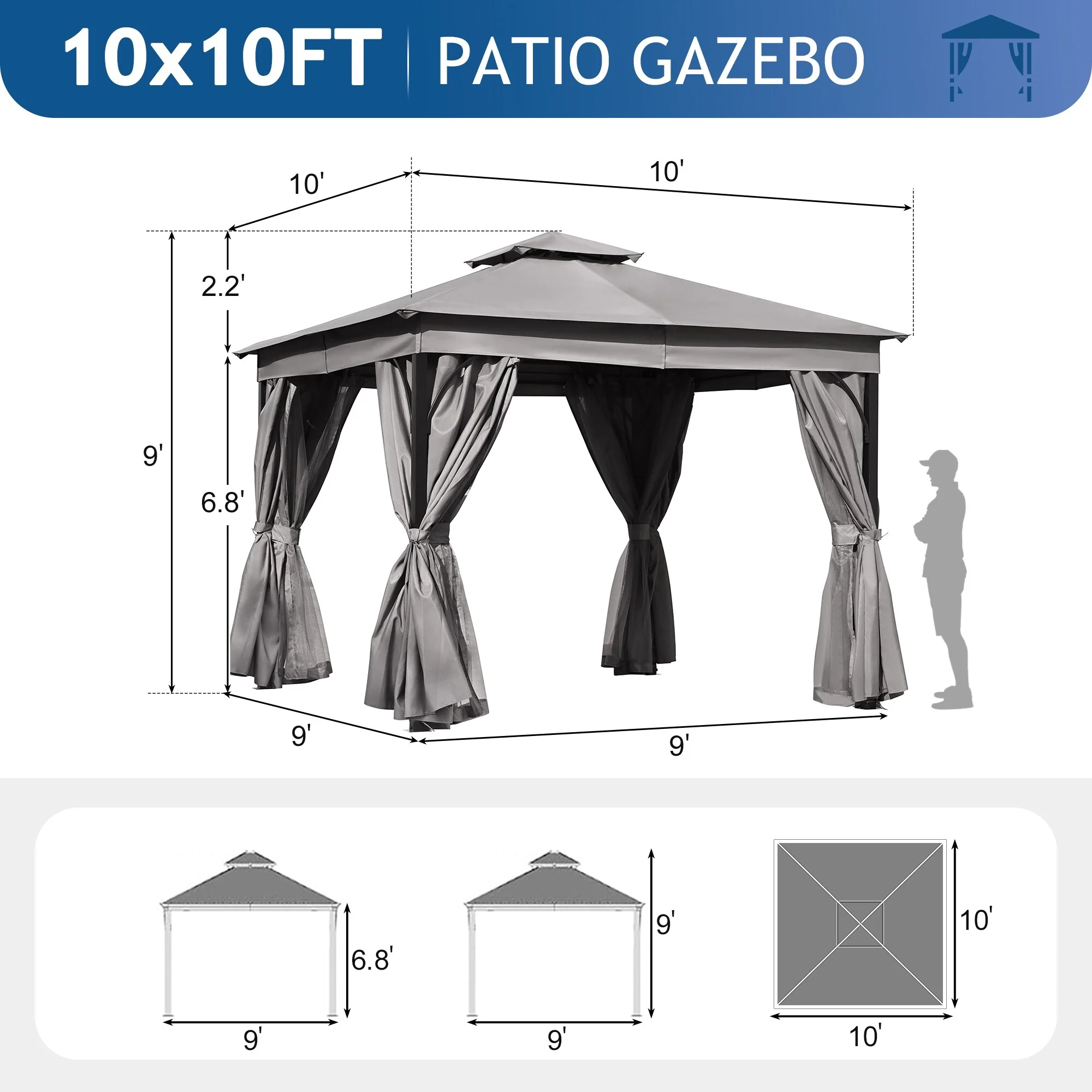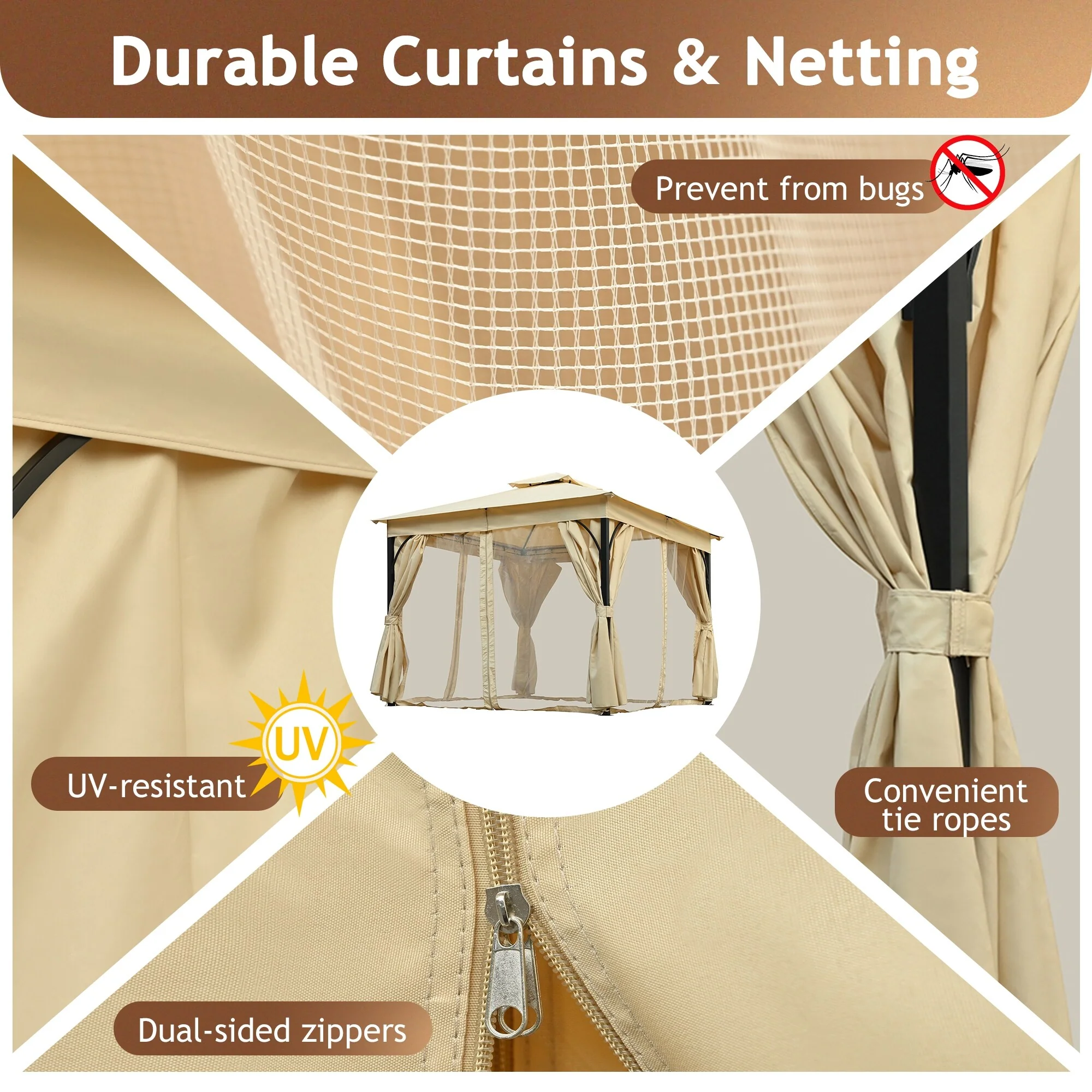 10x10 Outdoor Gazebo Tent with Double Roofs, Patio Gazebo with Mosquito Netting and Privacy Screens, for Backyard, Garden