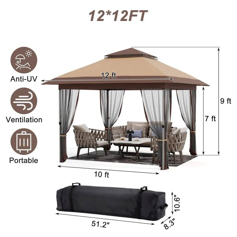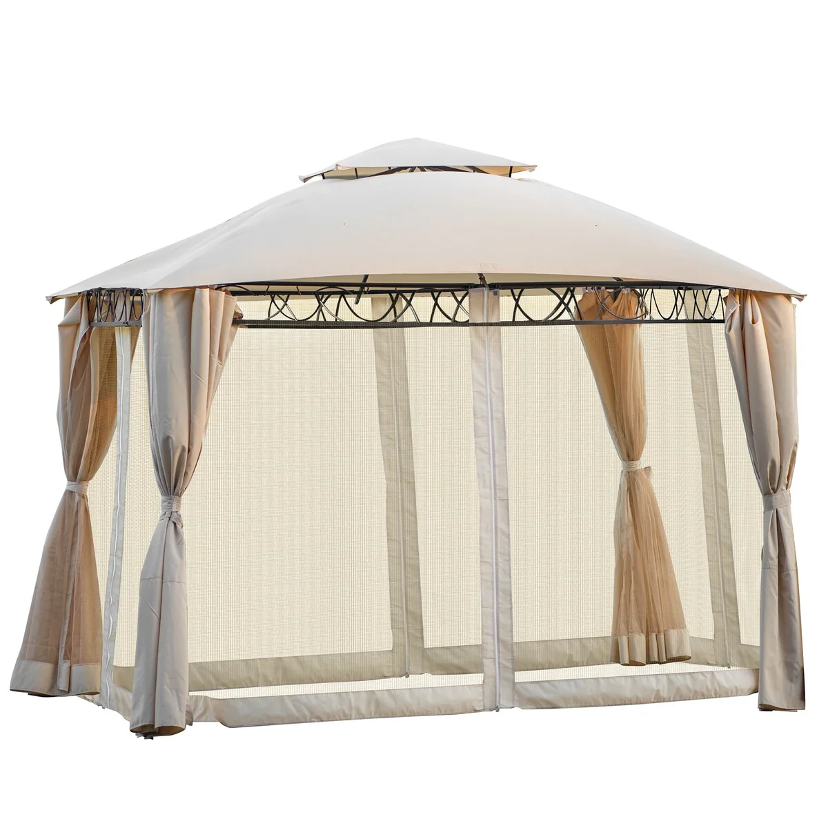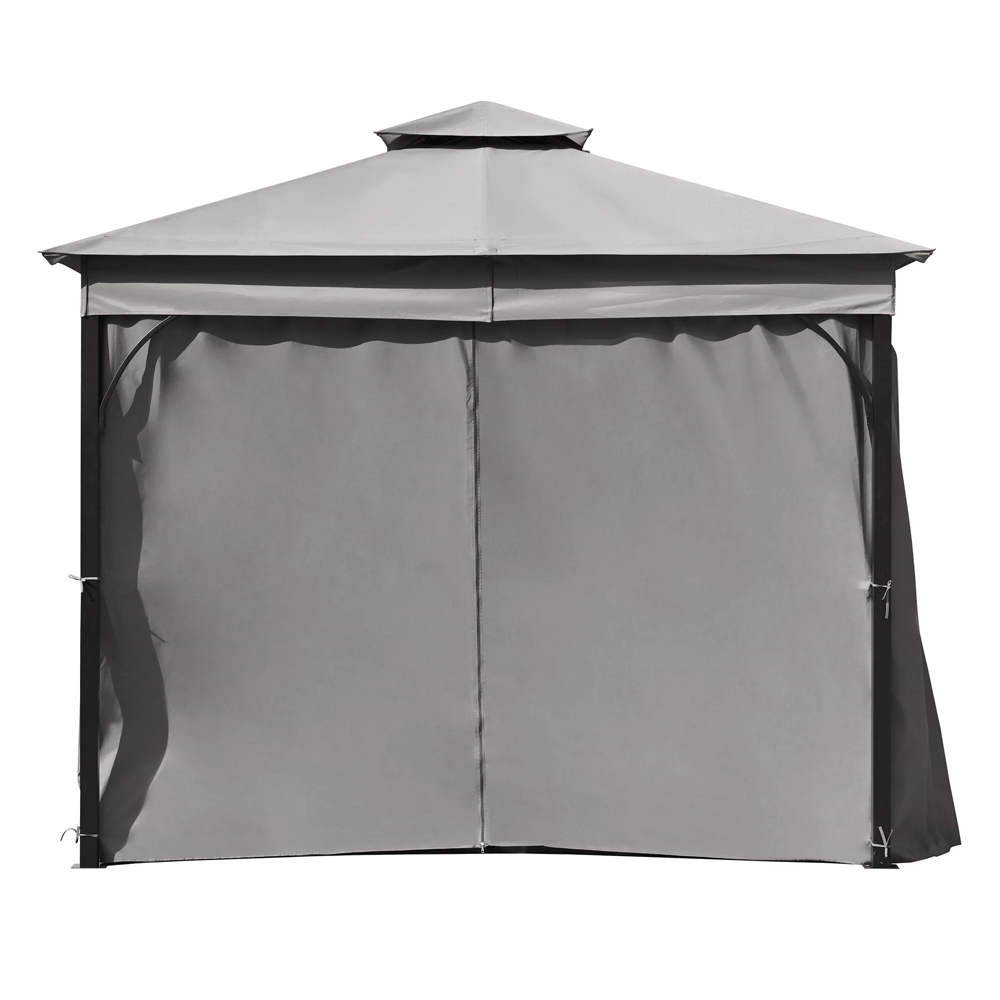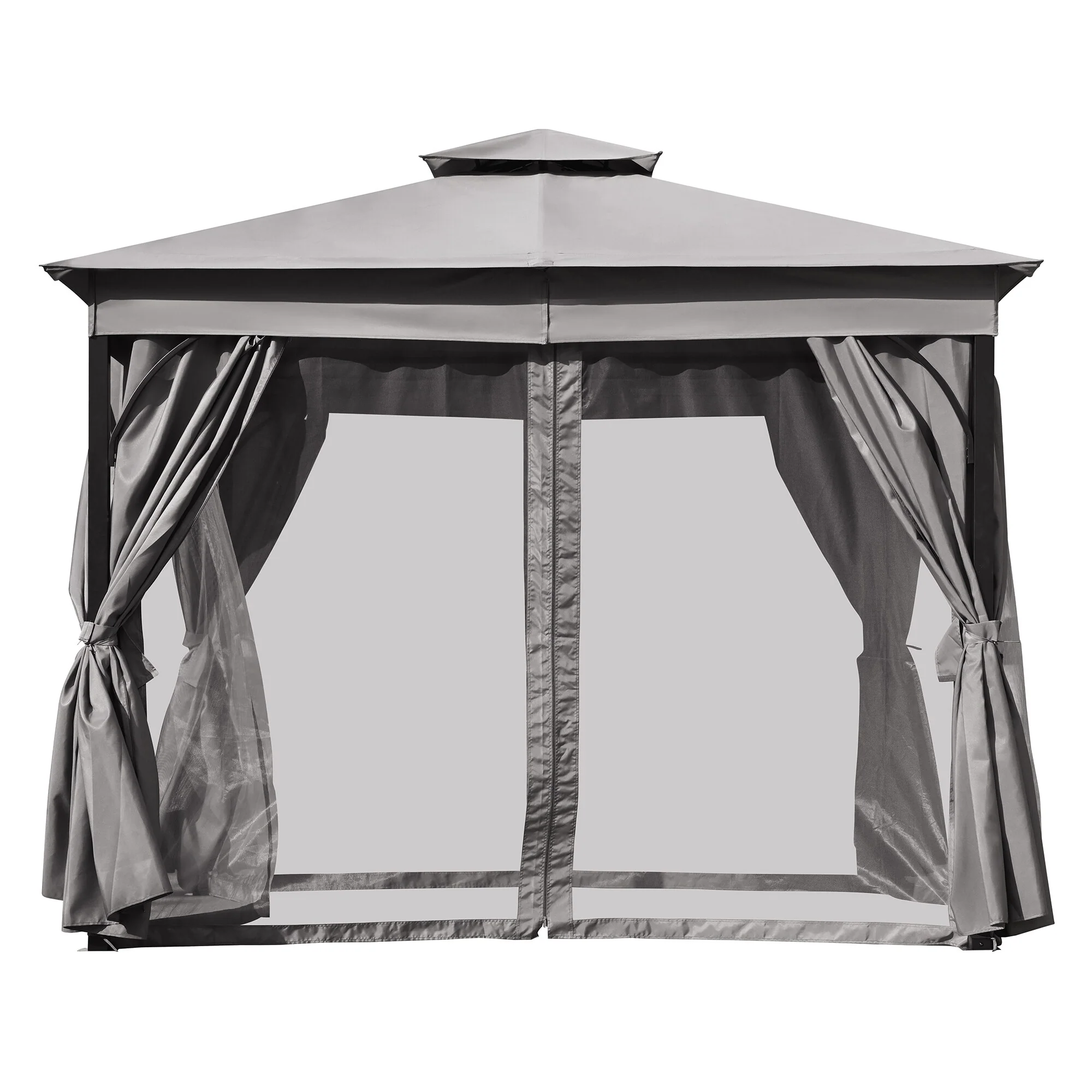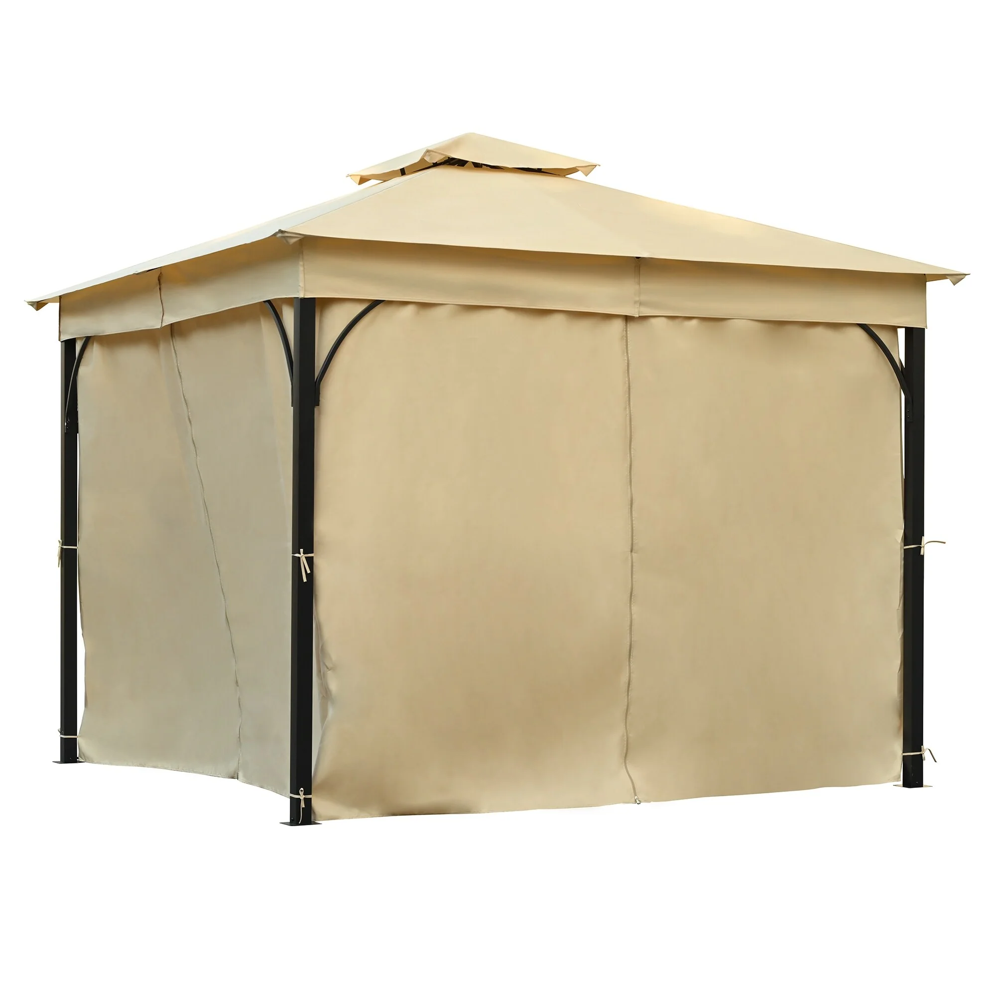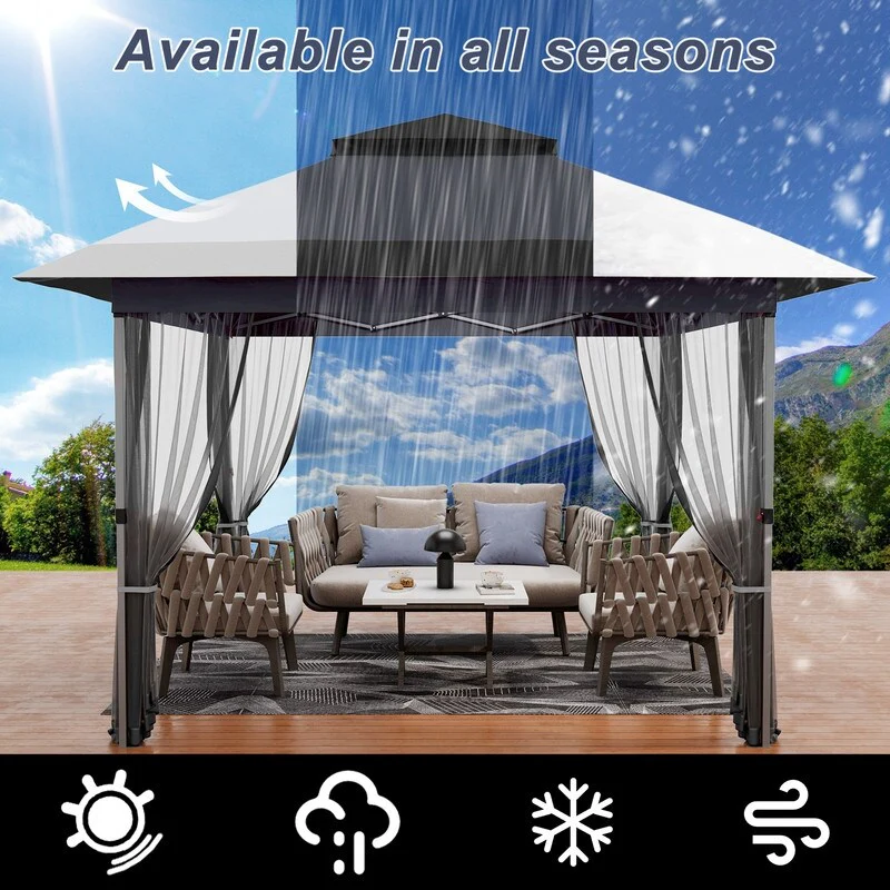 10x10 Outdoor Gazebo Tent with Double Roofs, Patio Gazebo with Mosquito Netting and Privacy Screens, for Backyard, Garden