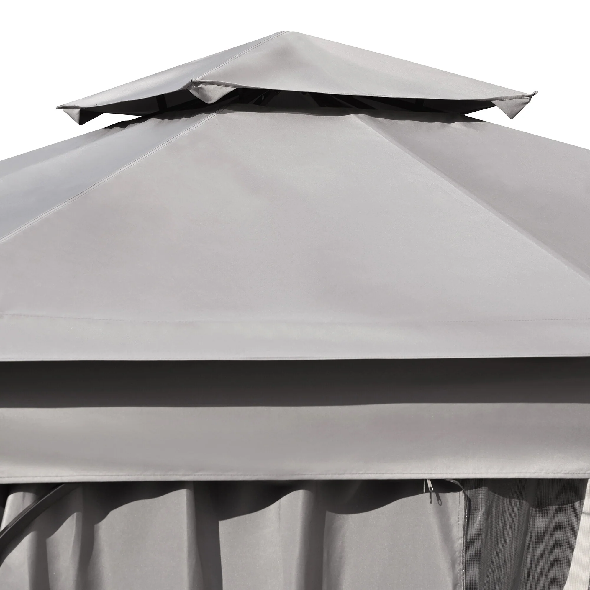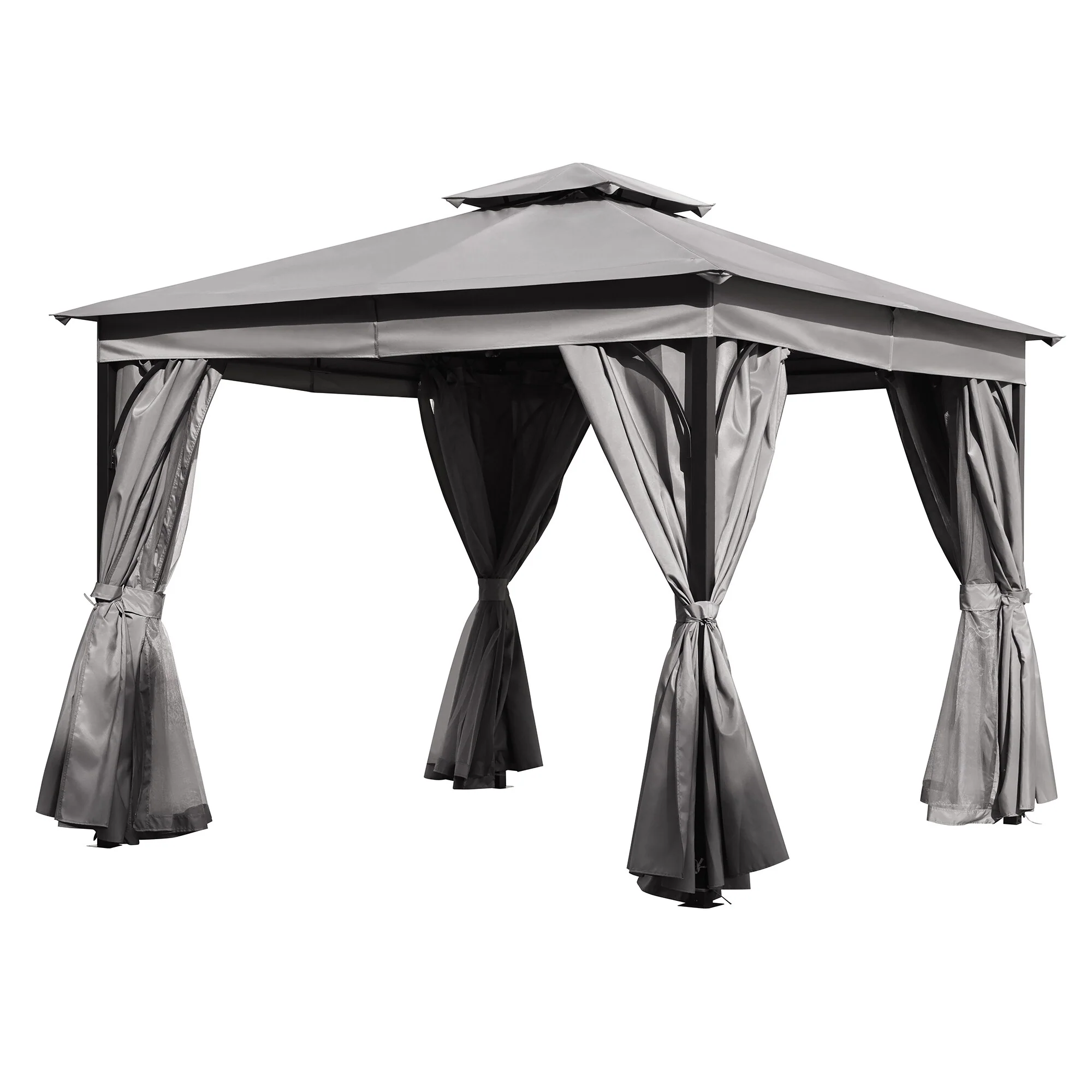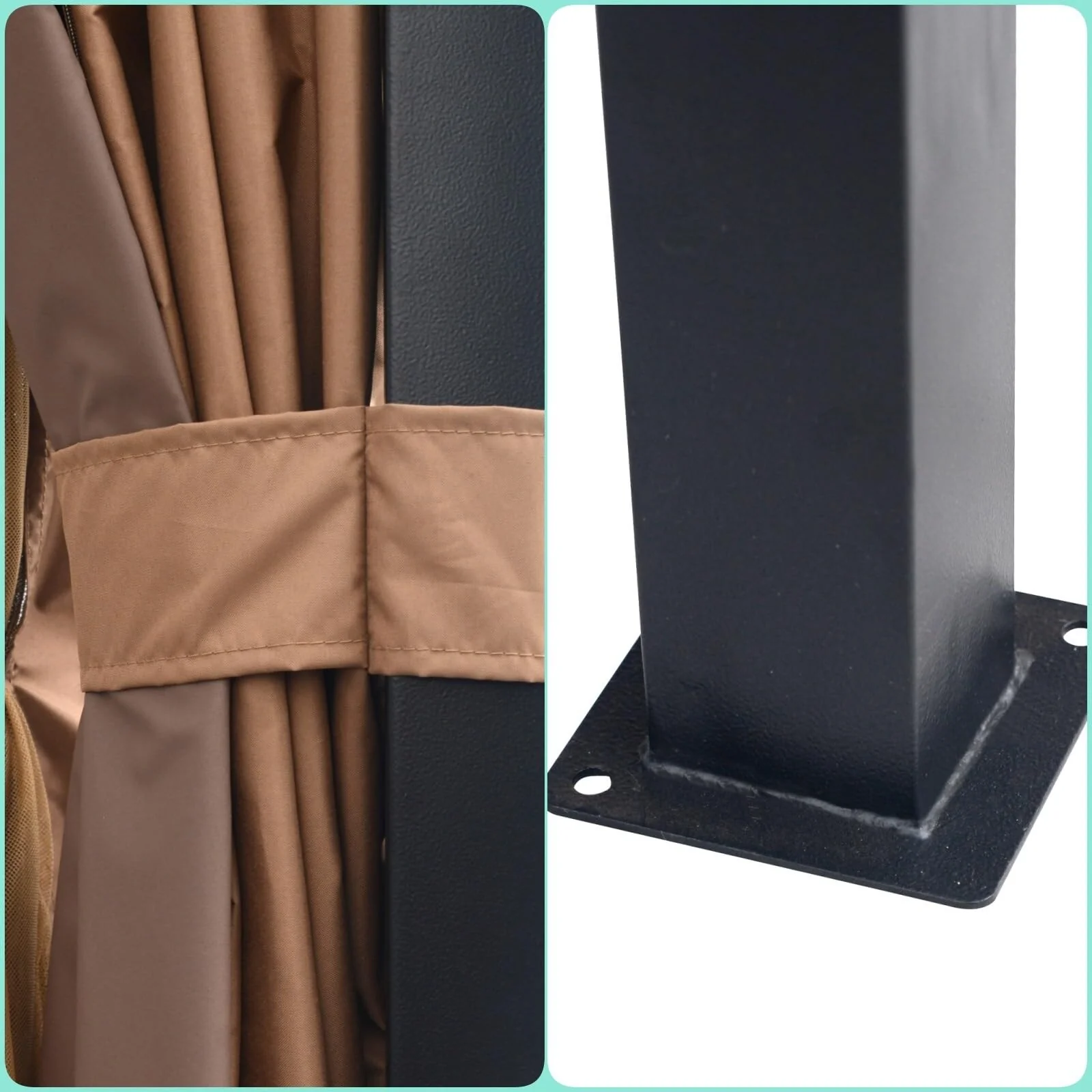 10x12 Softtop Metal Grill Gazebo with Mosquito Net&Sunshade Curtains,Heavy Duty Double Roof Canopy,Galvanized Steel Design Tent