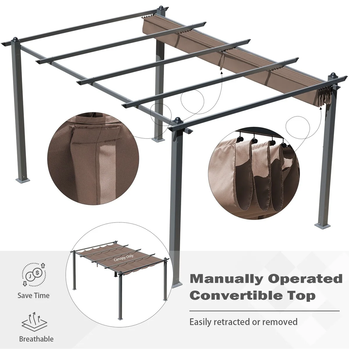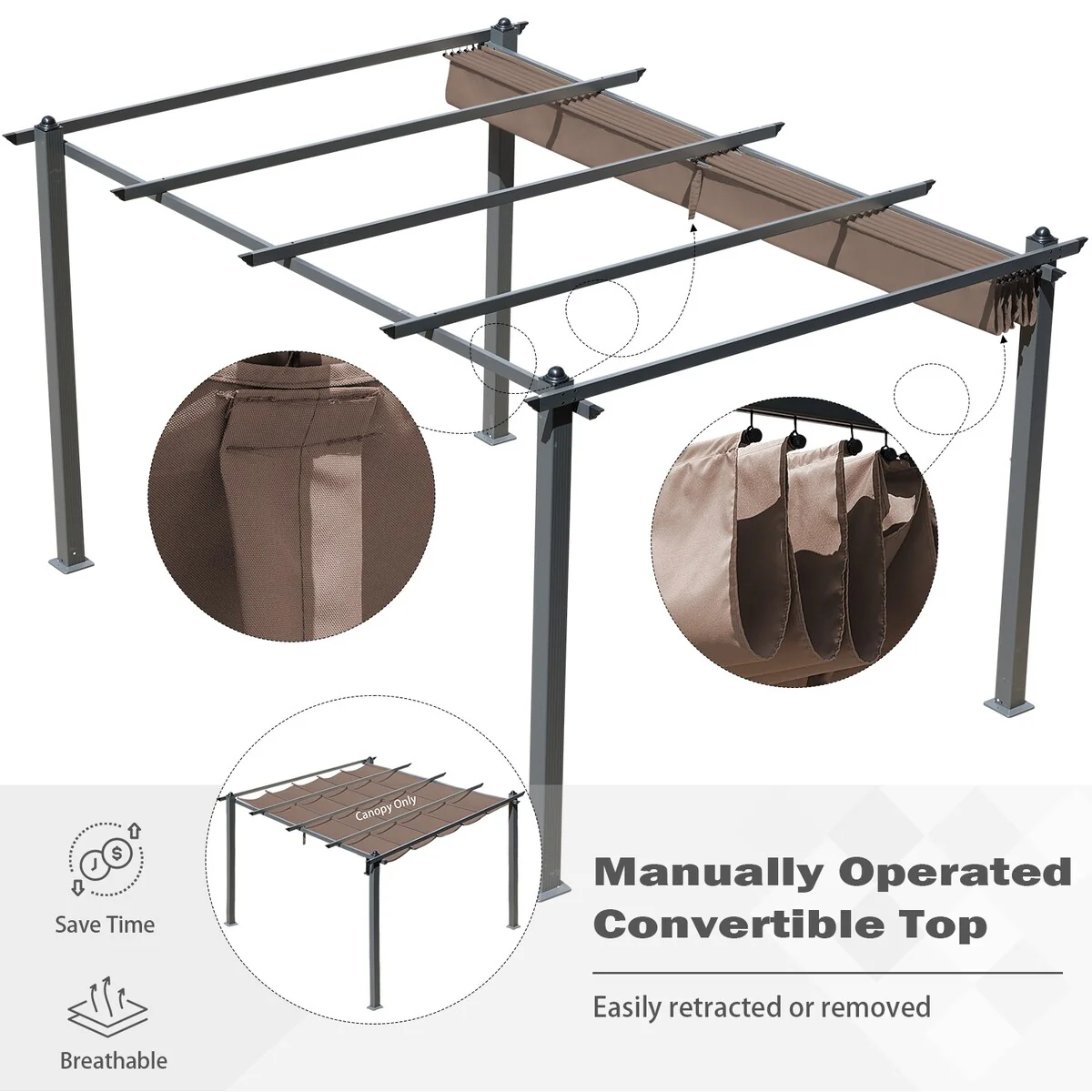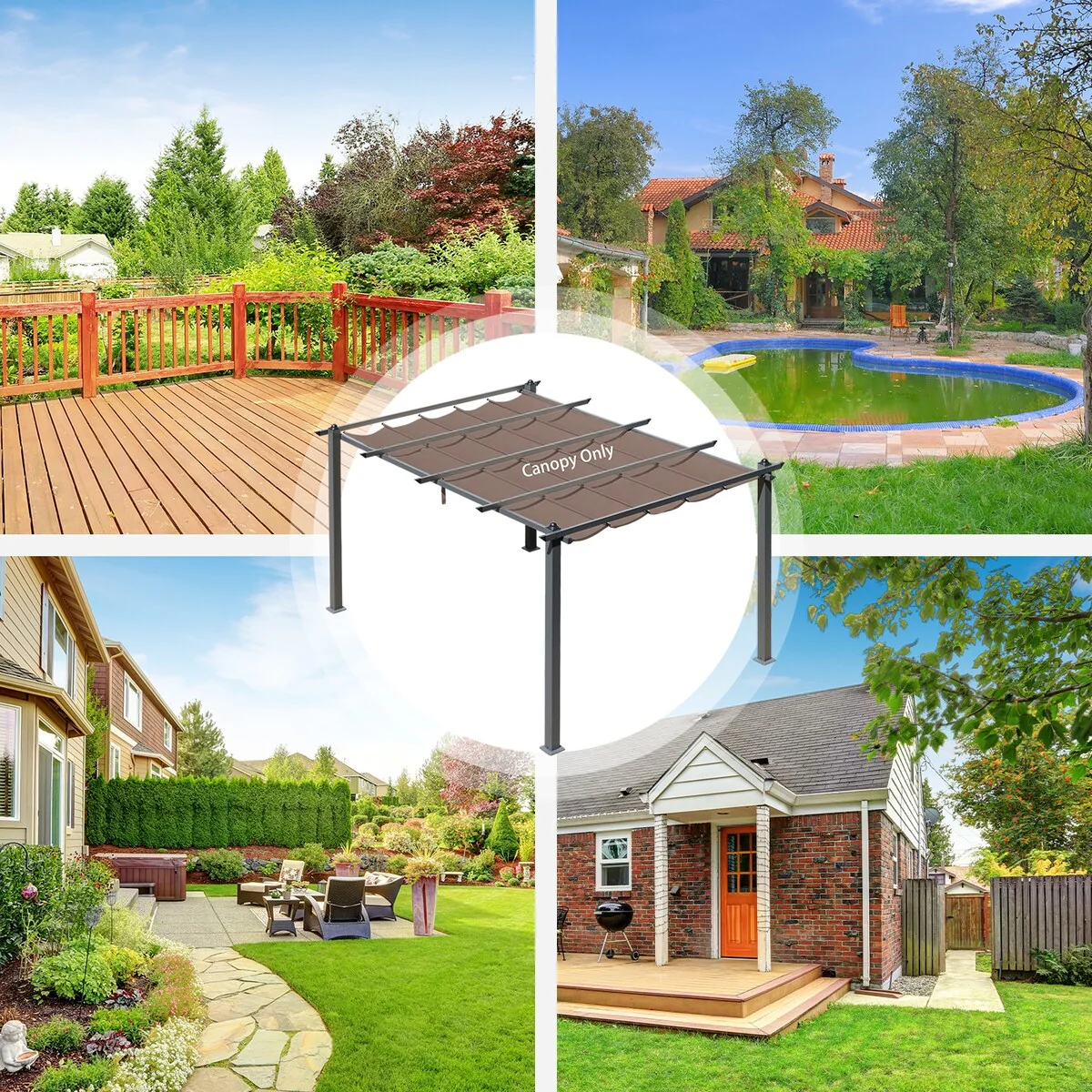 Aoodor Replacement Pergola Replacement Canopy Retractable Shade Brown Fabric