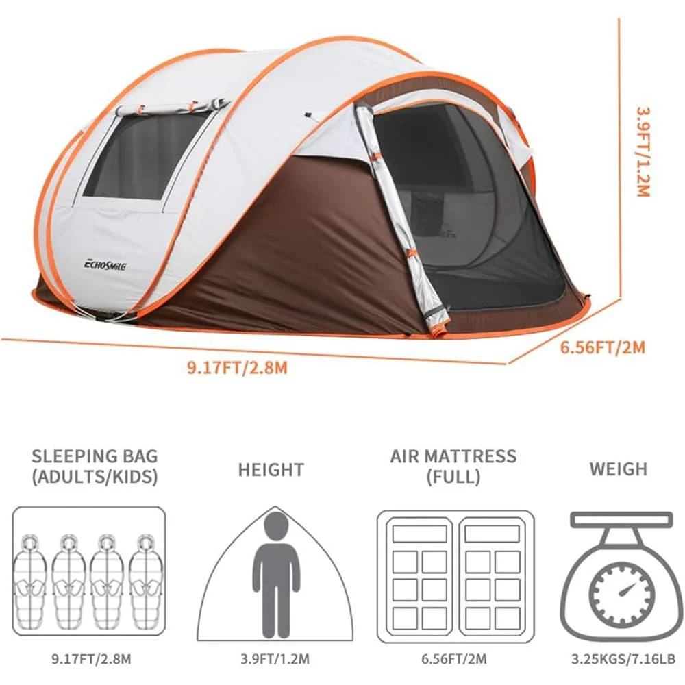 EchoSmile 5-Person Pop Up Camping Tent - 78.74"L x 110.24"W x 47.24"H