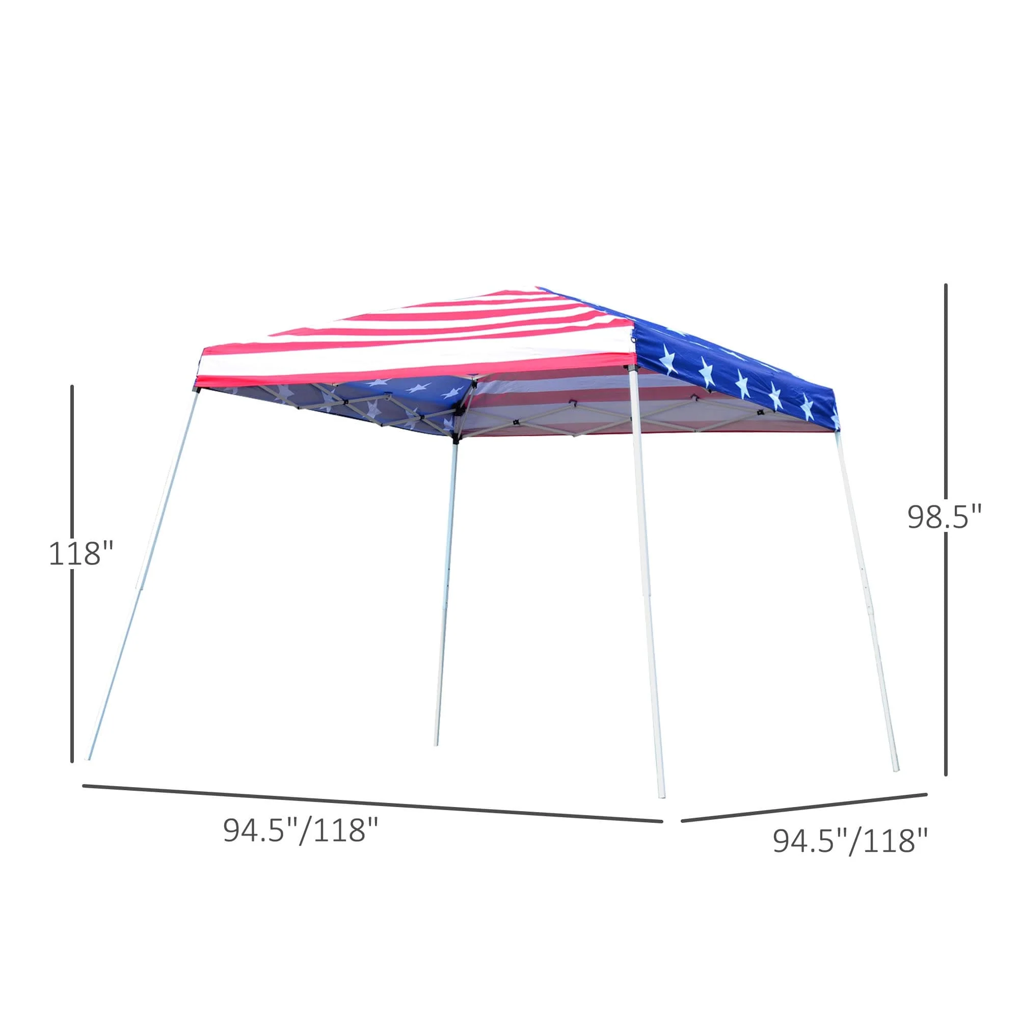 Outsunny 10'x 10' Outdoor Canopy Pop Up Event Tent with Slanted Legs for Events, Weddings, & Parties, American Flag