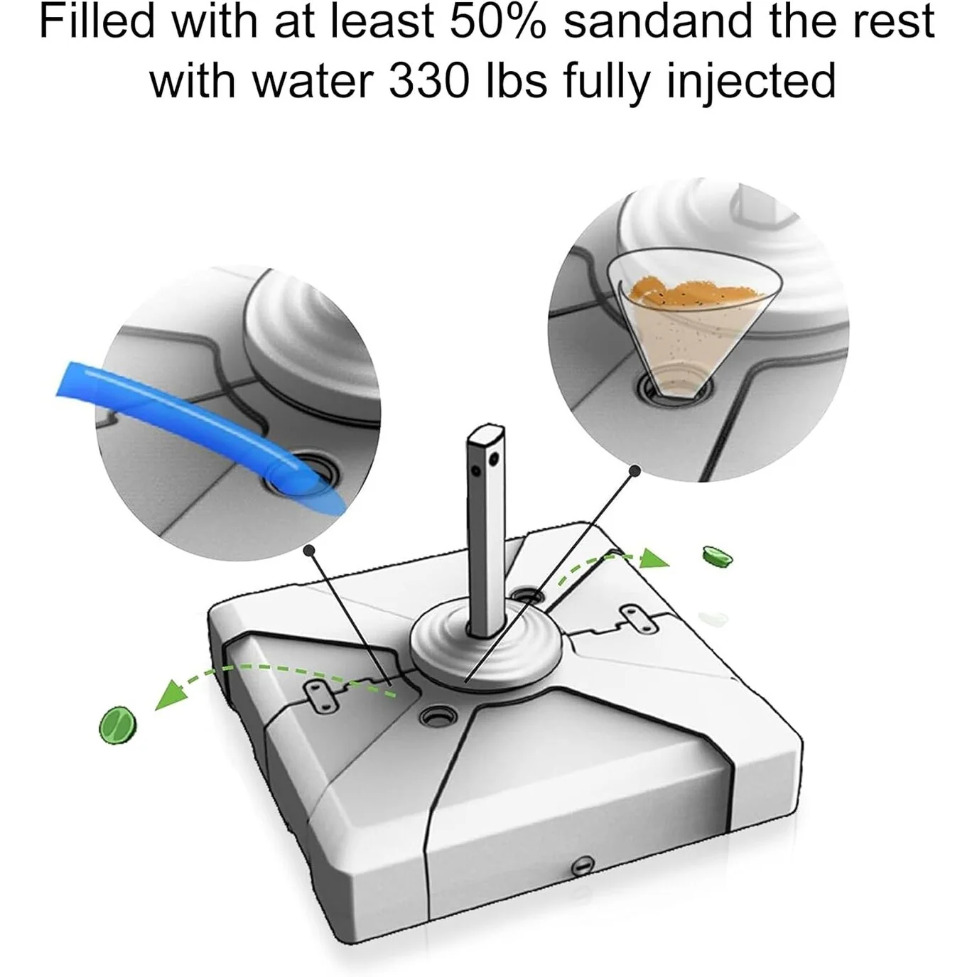 Square Cantilever Offset Umbrella Weights Base Water/Sand Filled