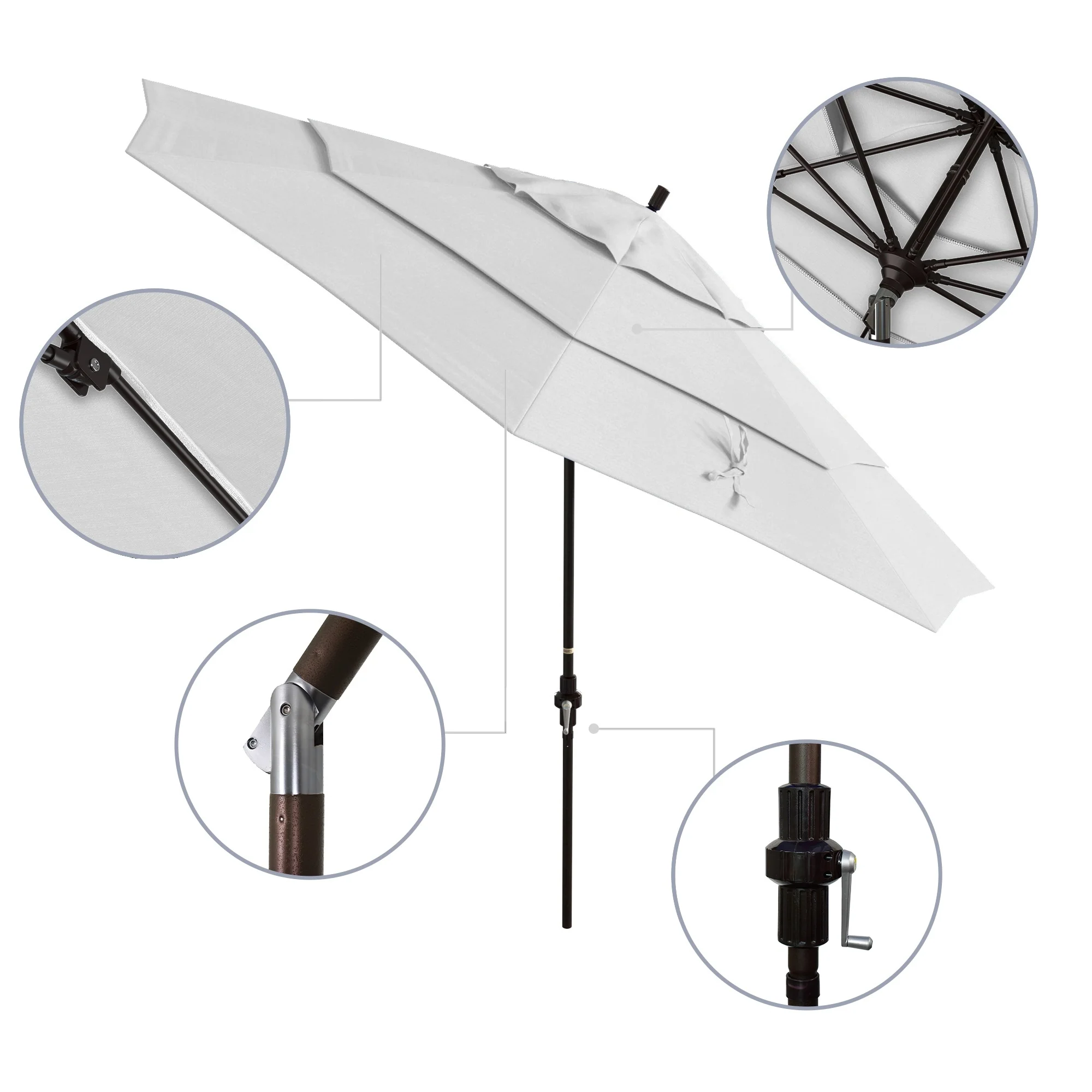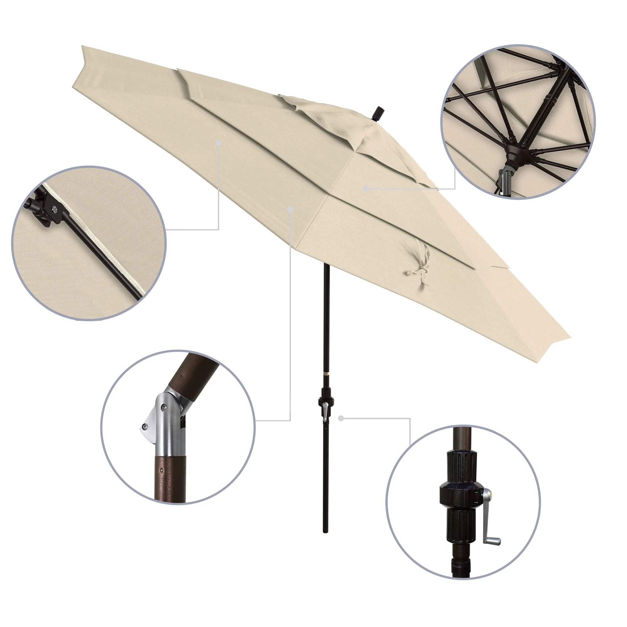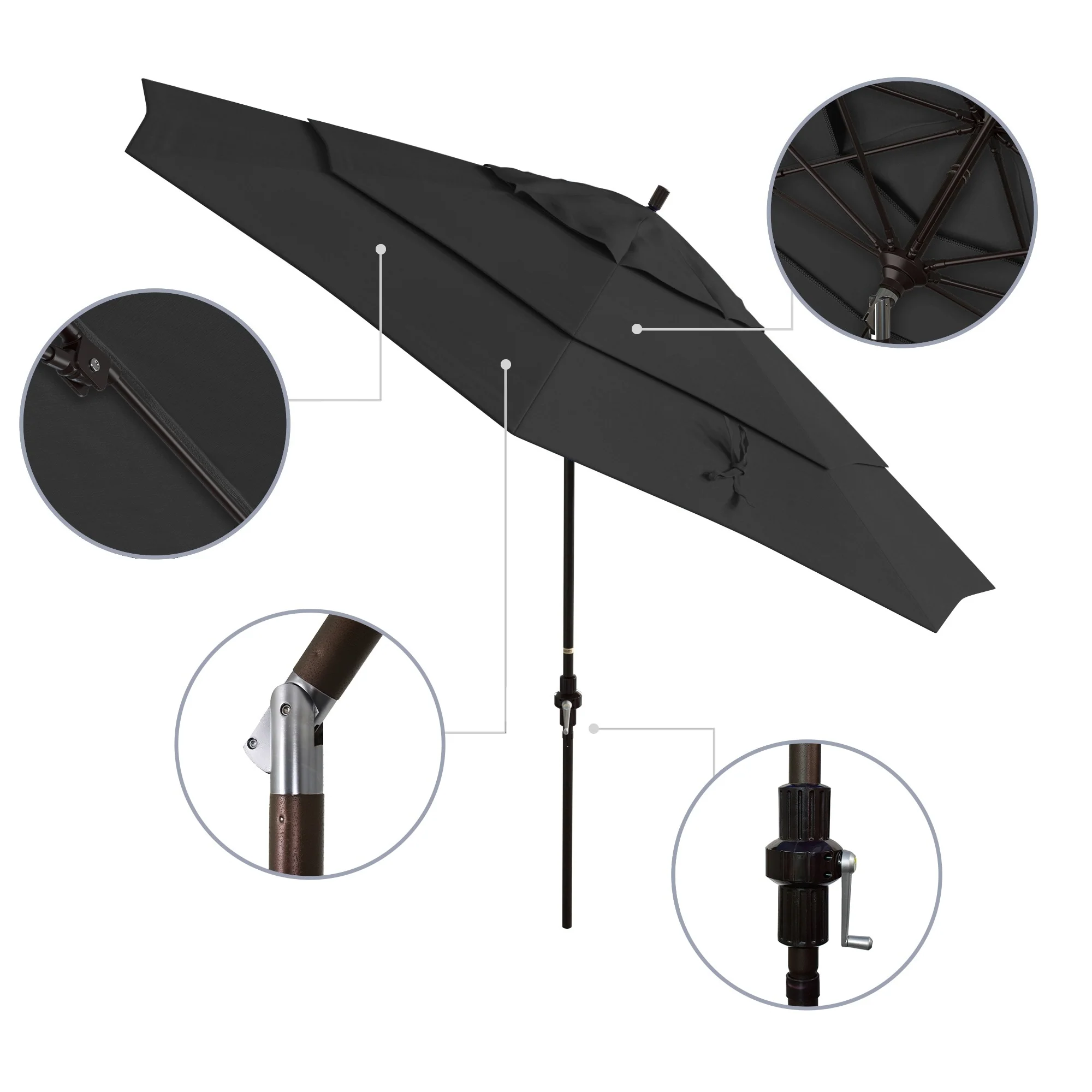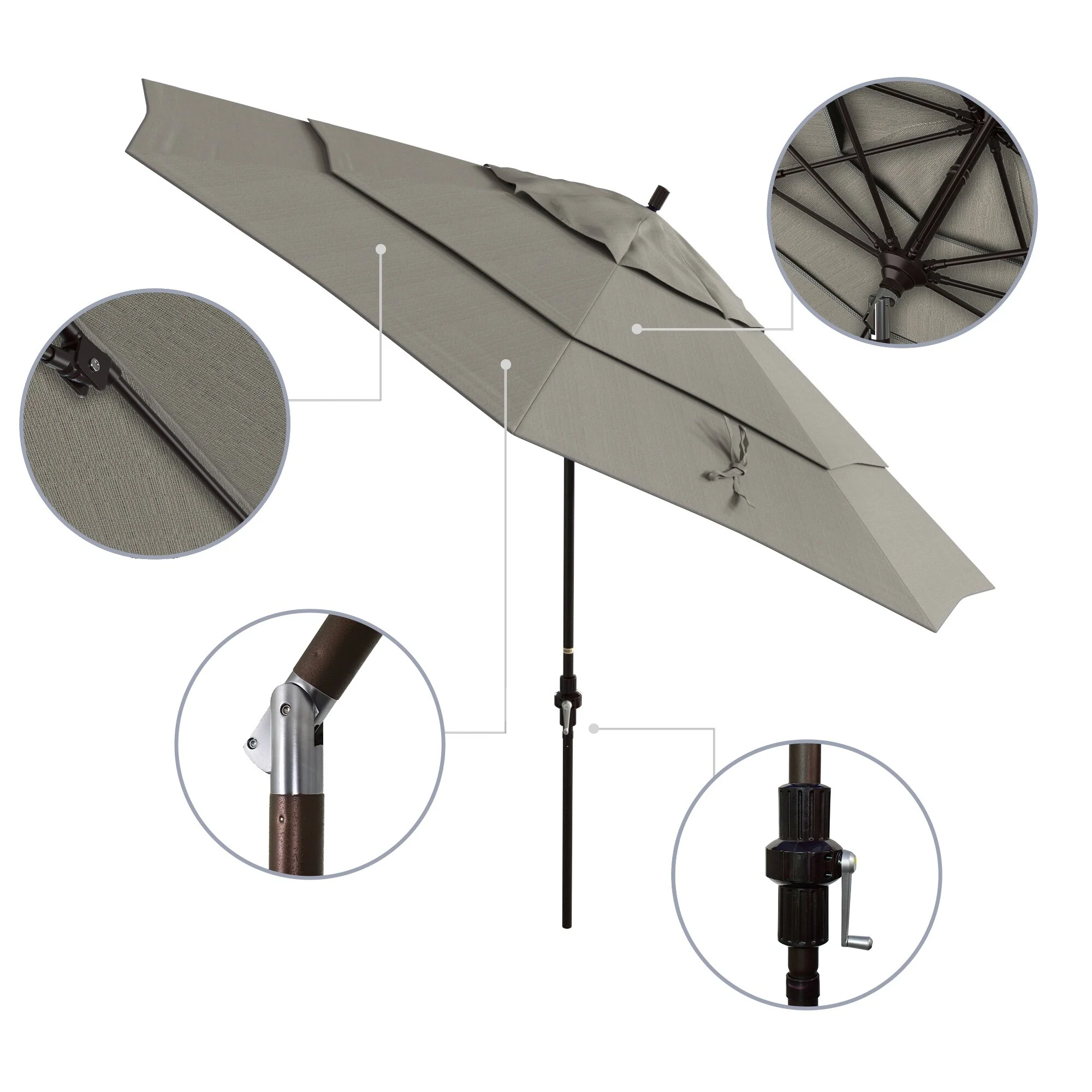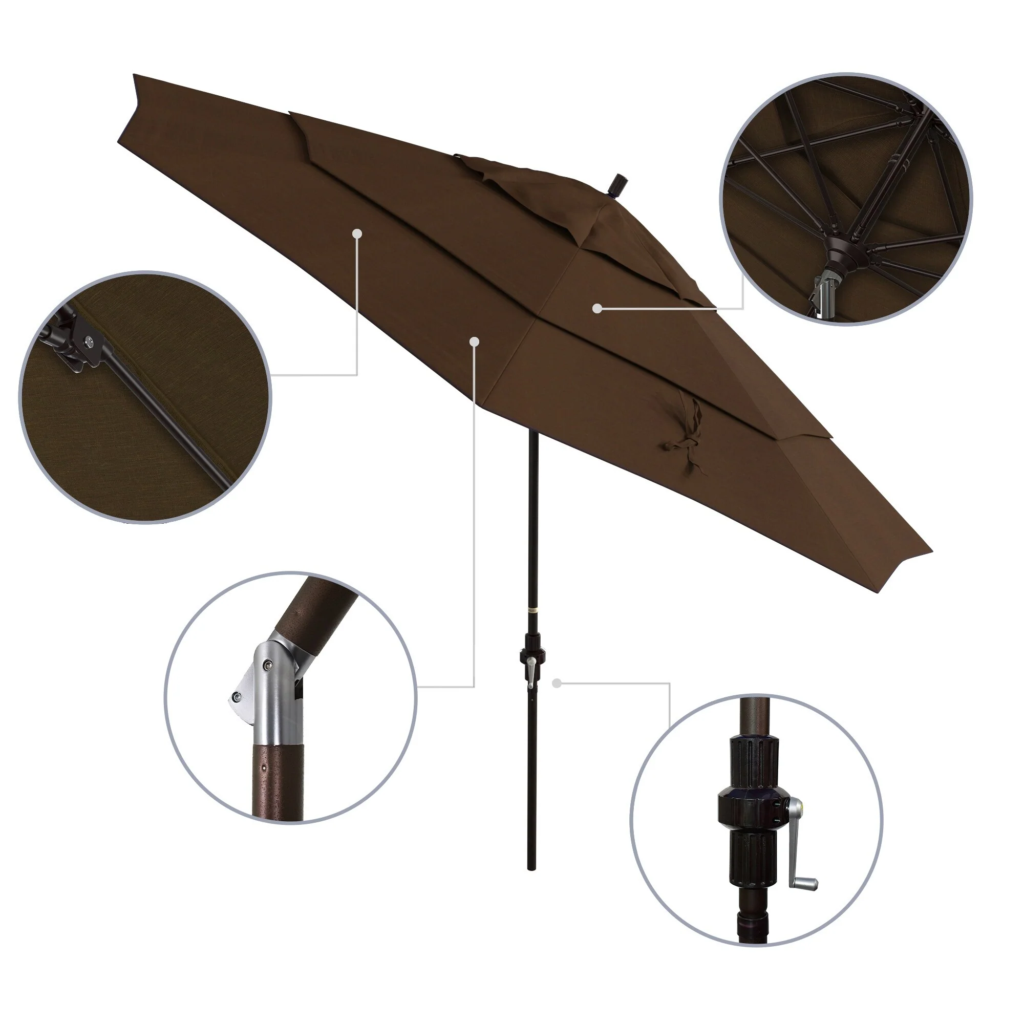 California Umbrella 11' Round Aluminum Crank Open Auto Tlit Patio Umbrella, Bronze Finish, Double Wind Vent.