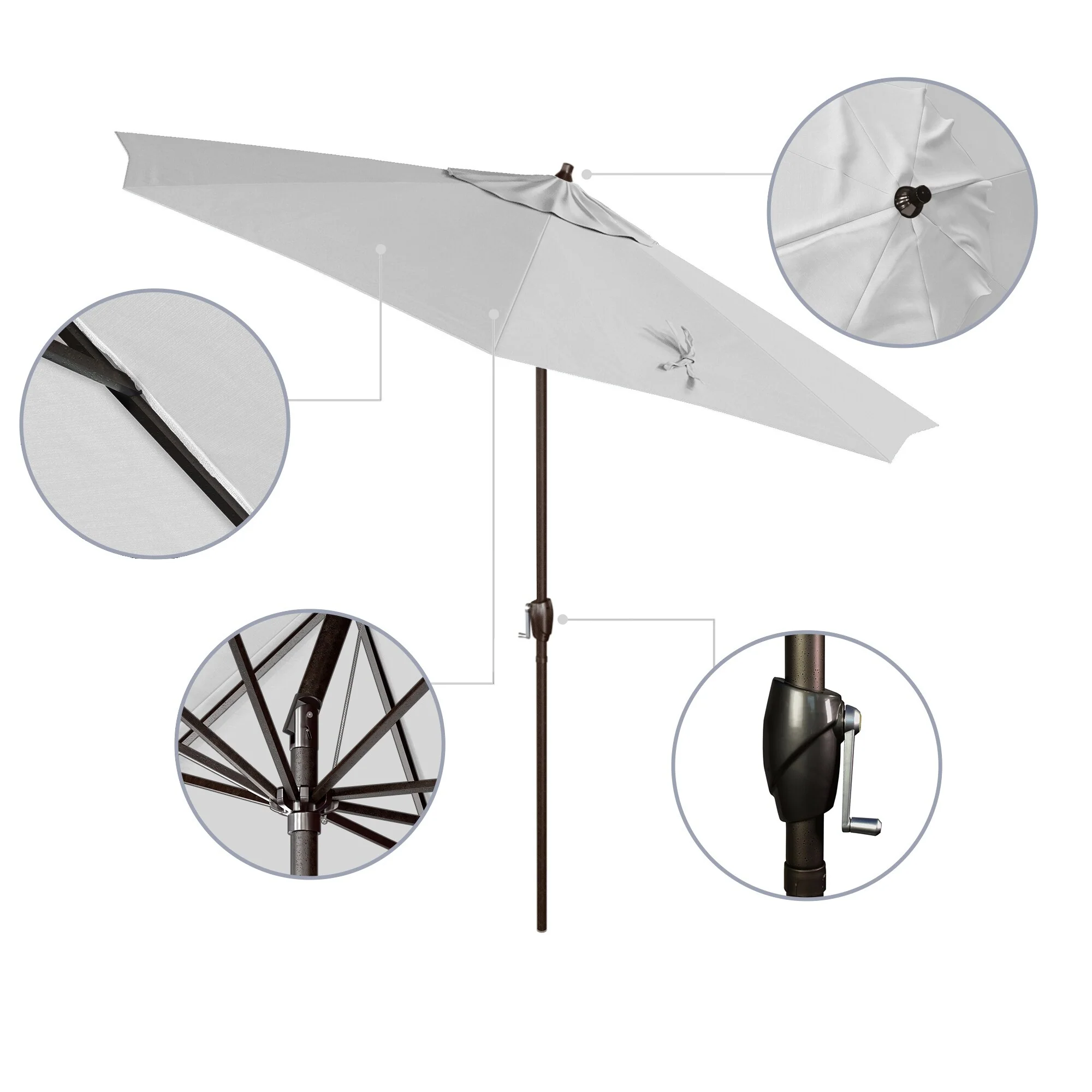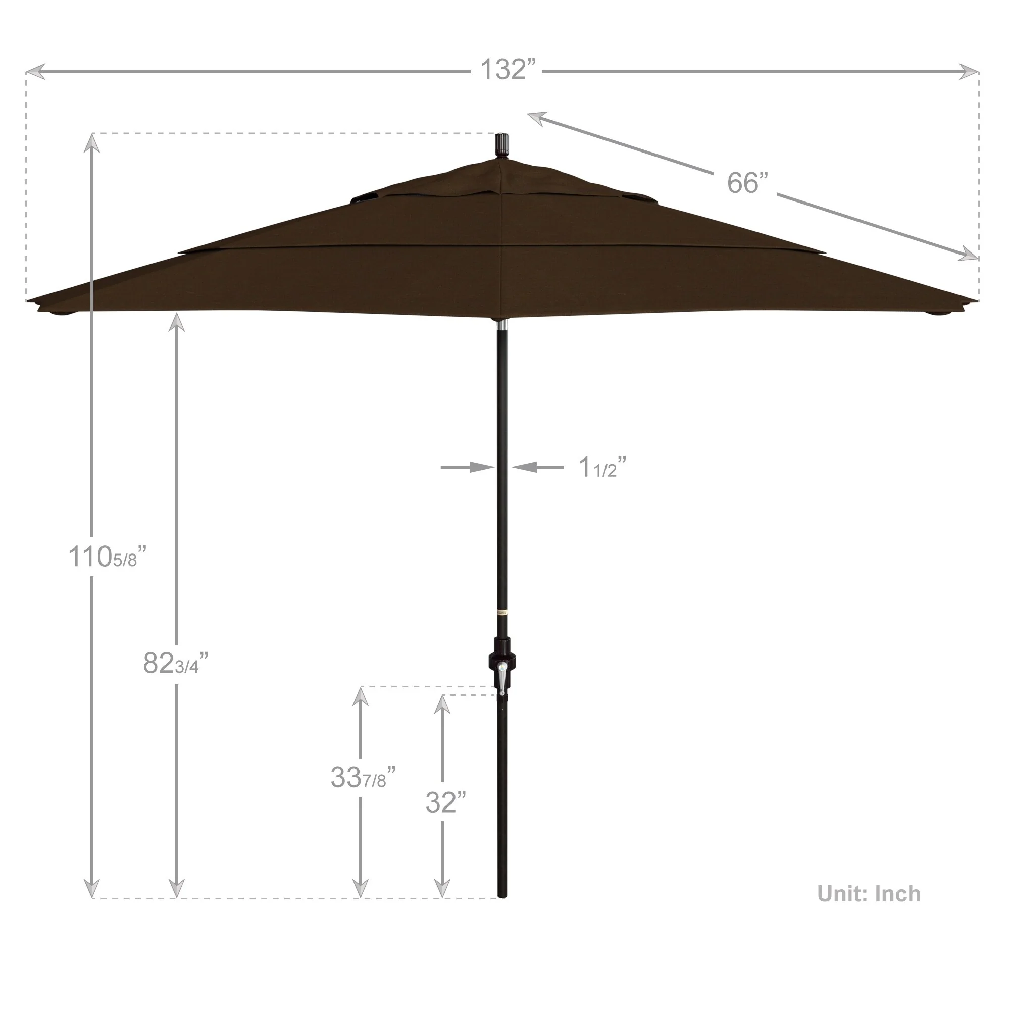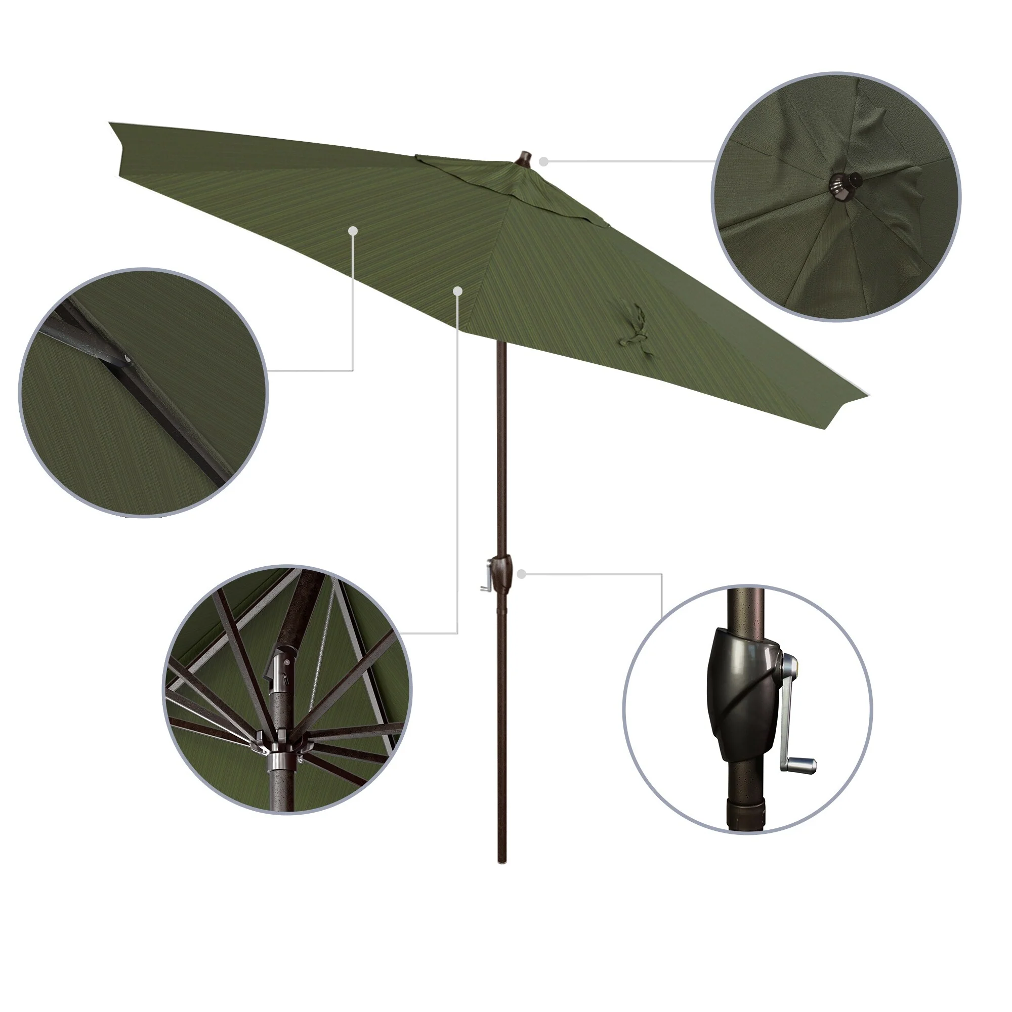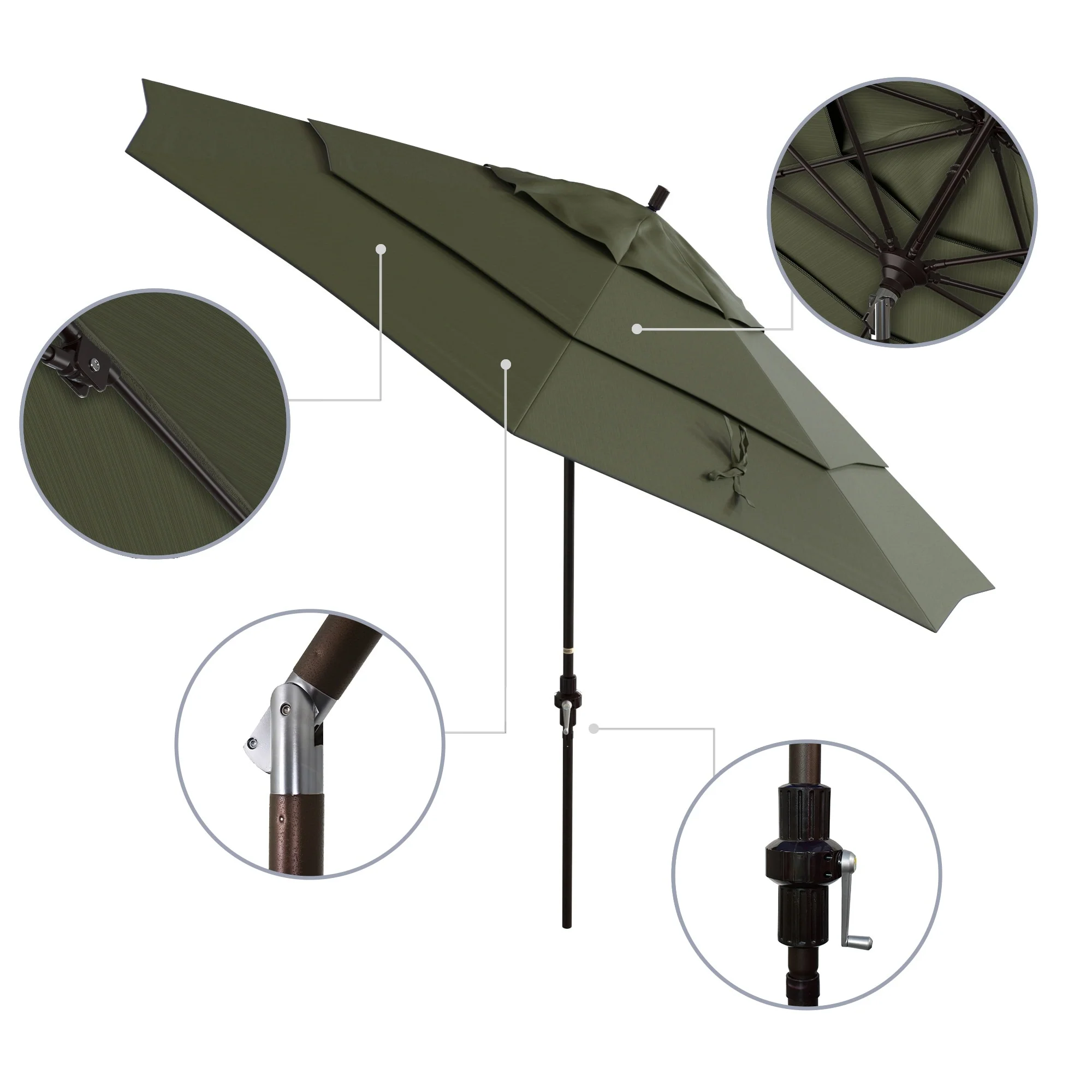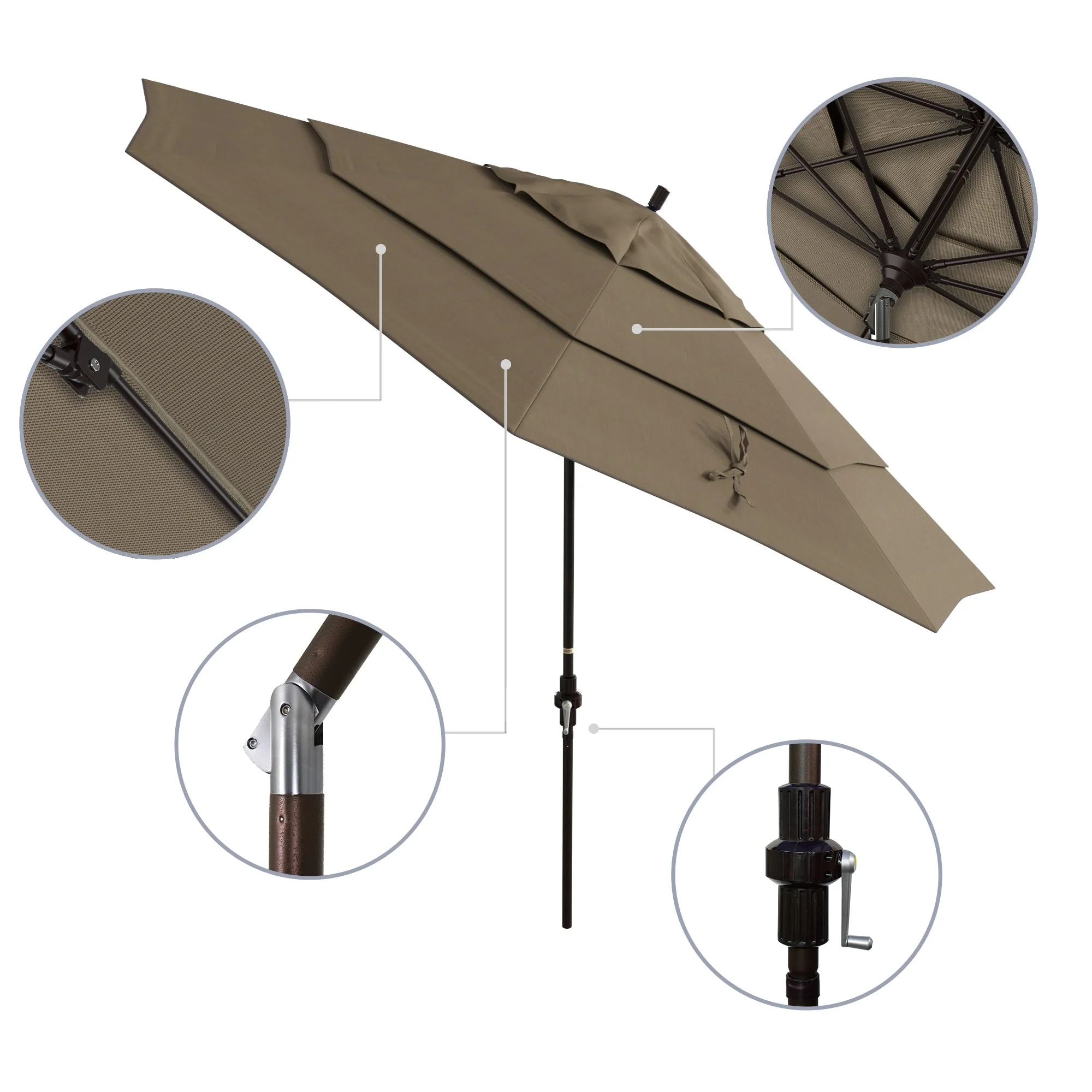 California Umbrella 11' Round Aluminum Crank Open Auto Tlit Patio Umbrella, Bronze Finish, Double Wind Vent.