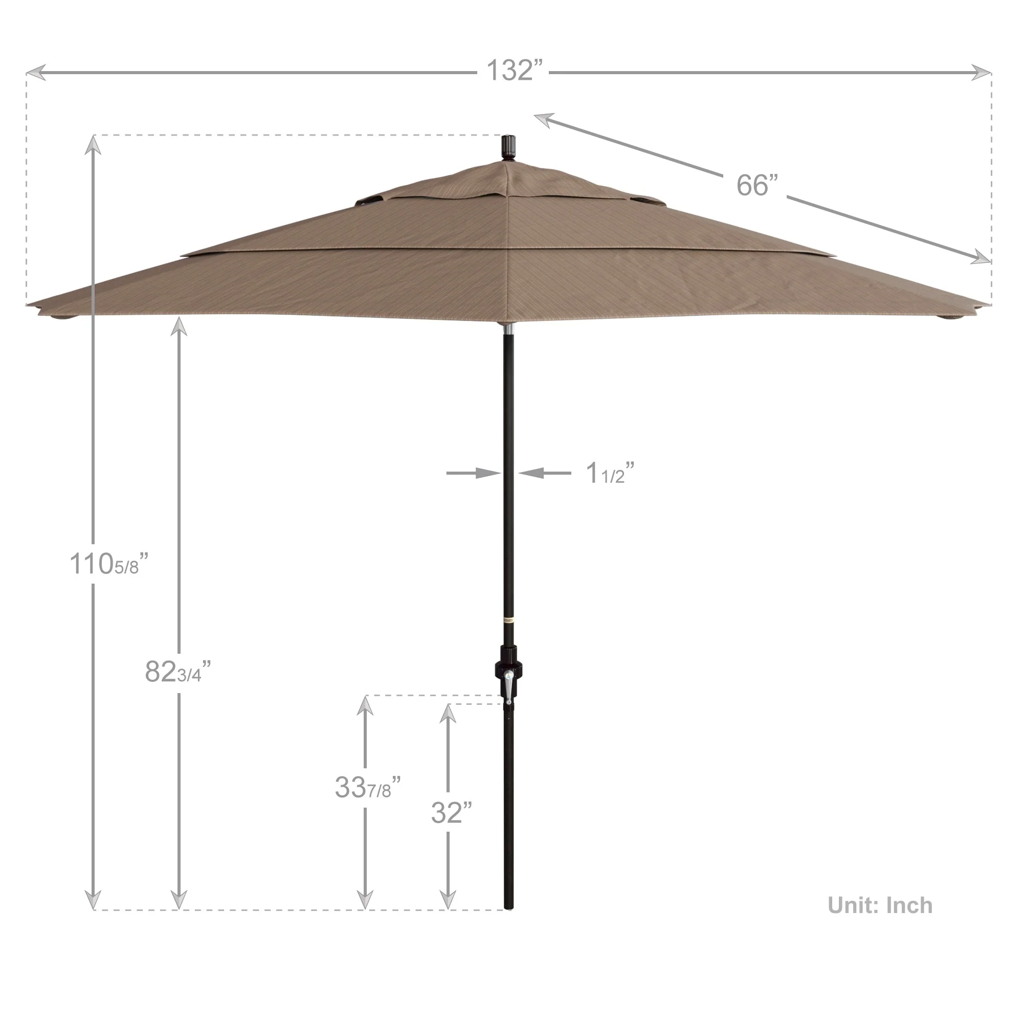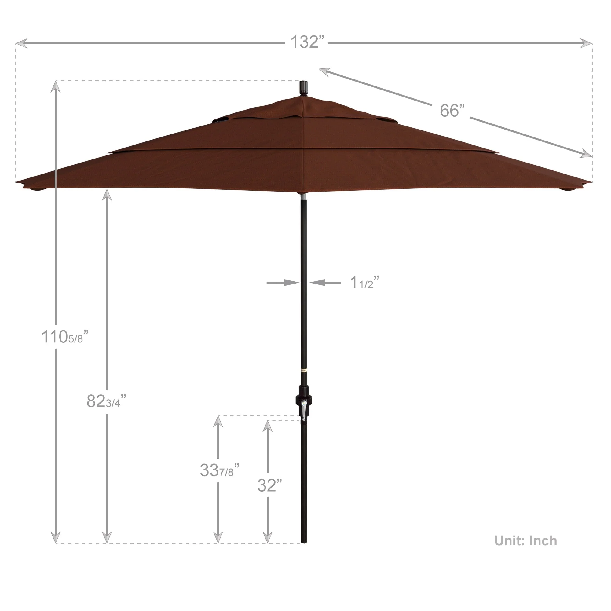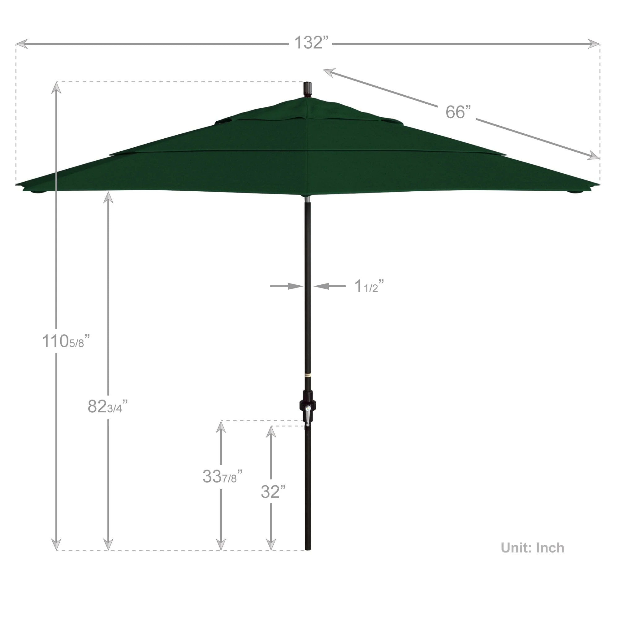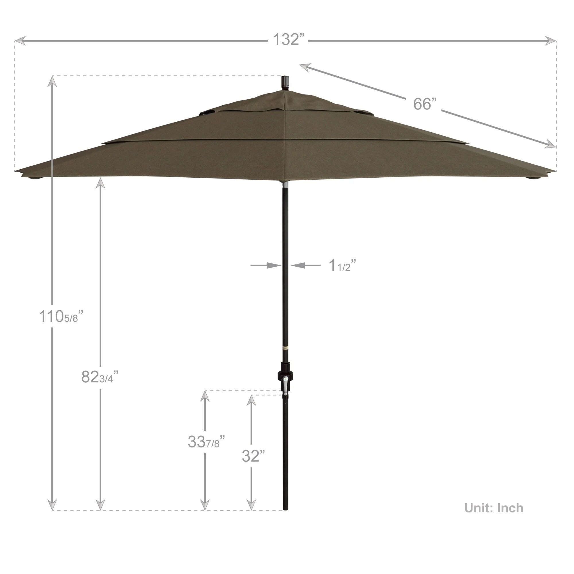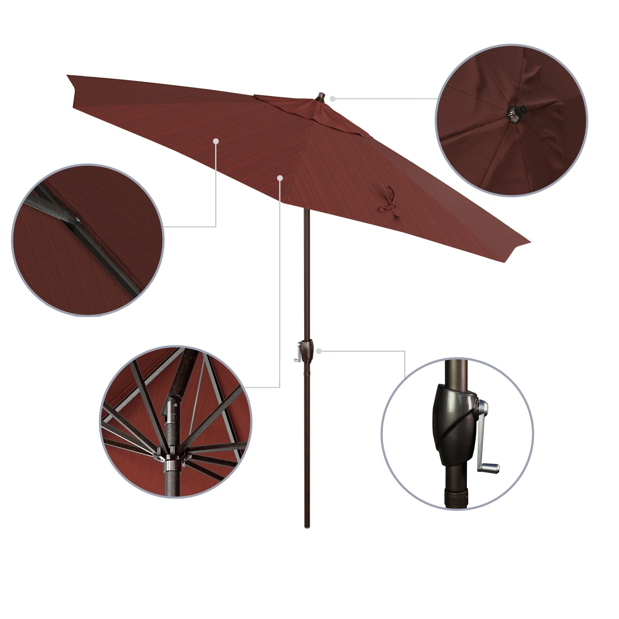 California Umbrella 11' Round Aluminum Crank Open Auto Tlit Patio Umbrella, Bronze Finish, Double Wind Vent.