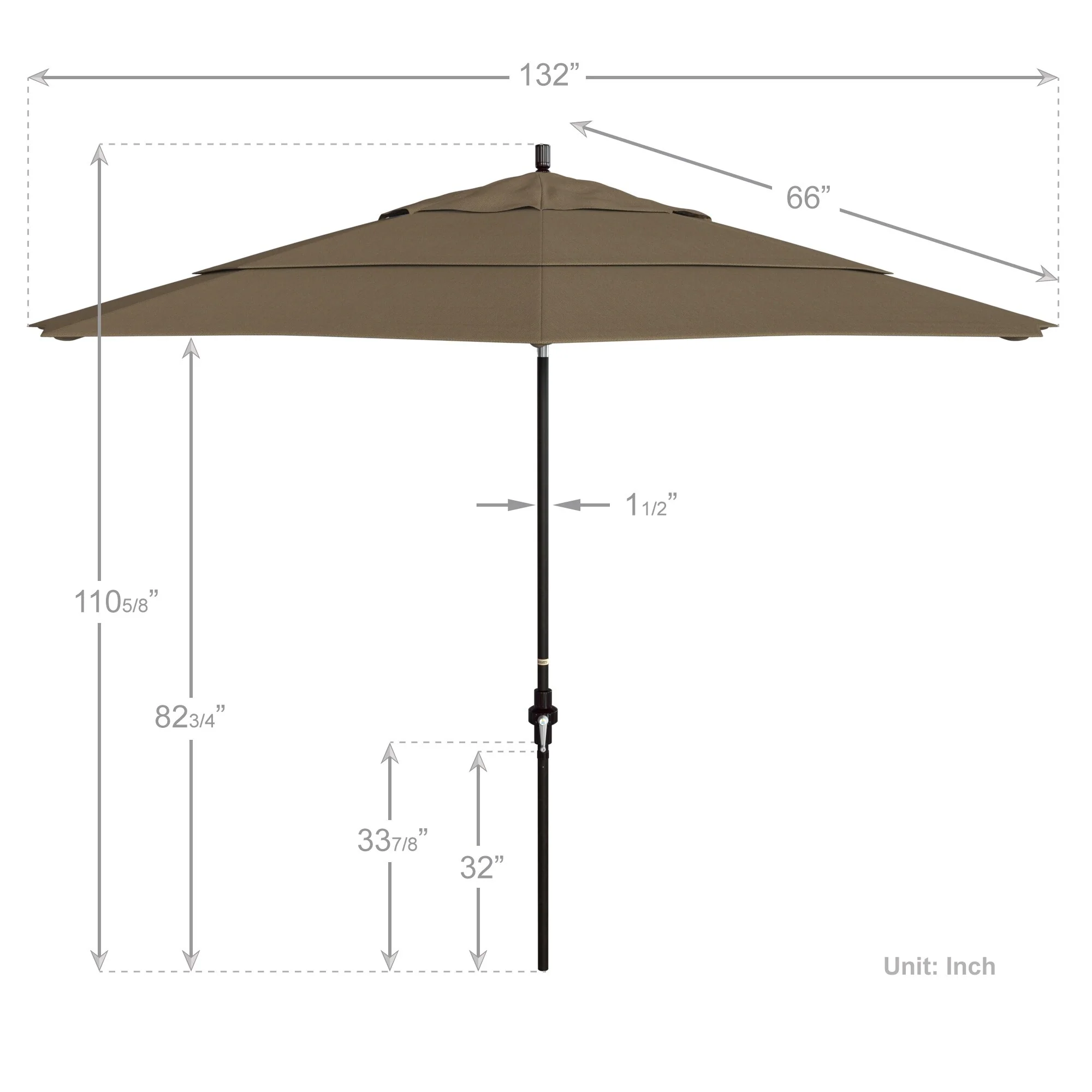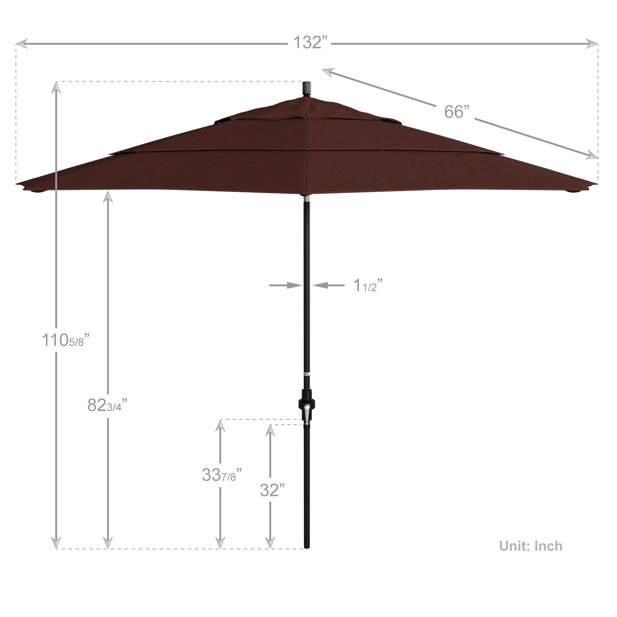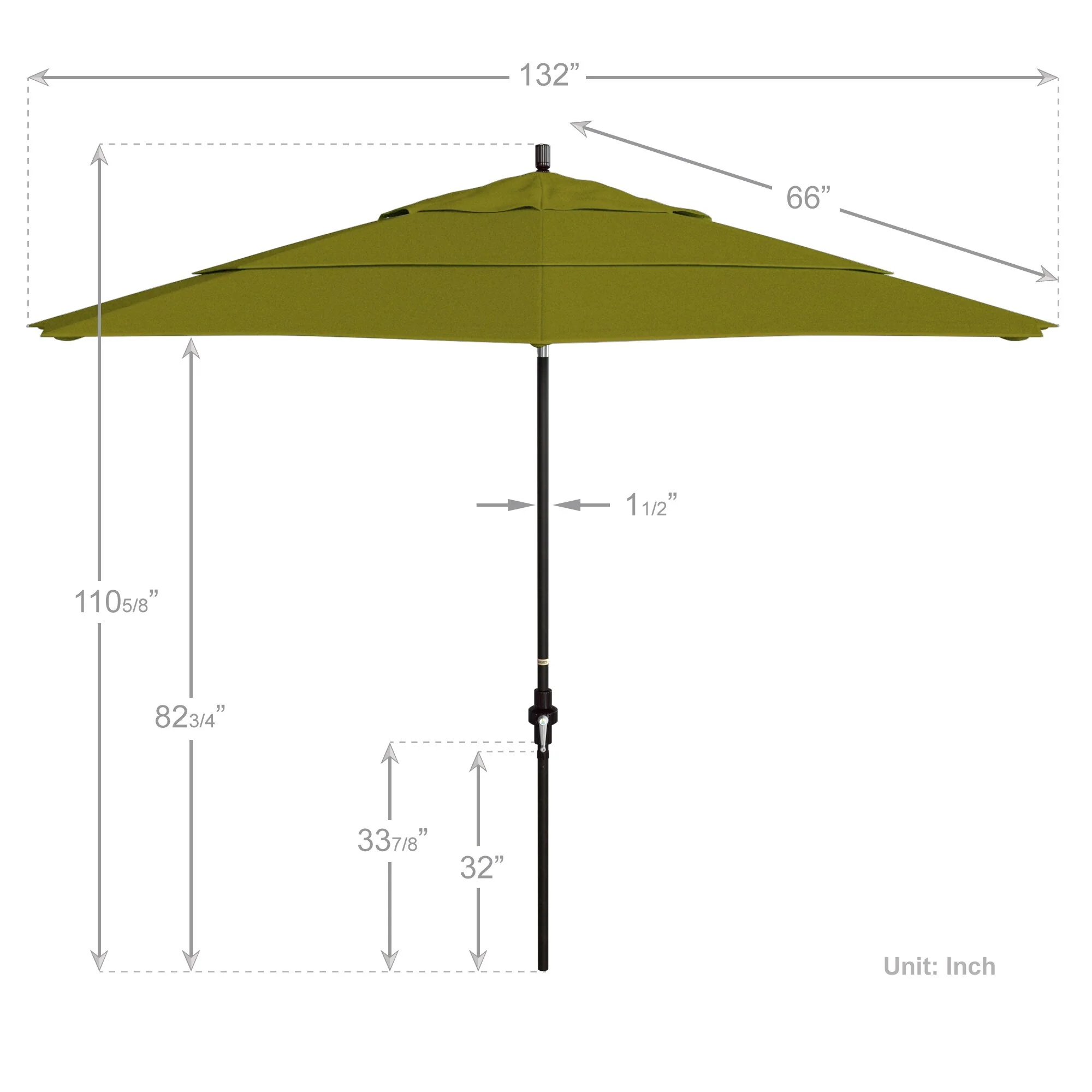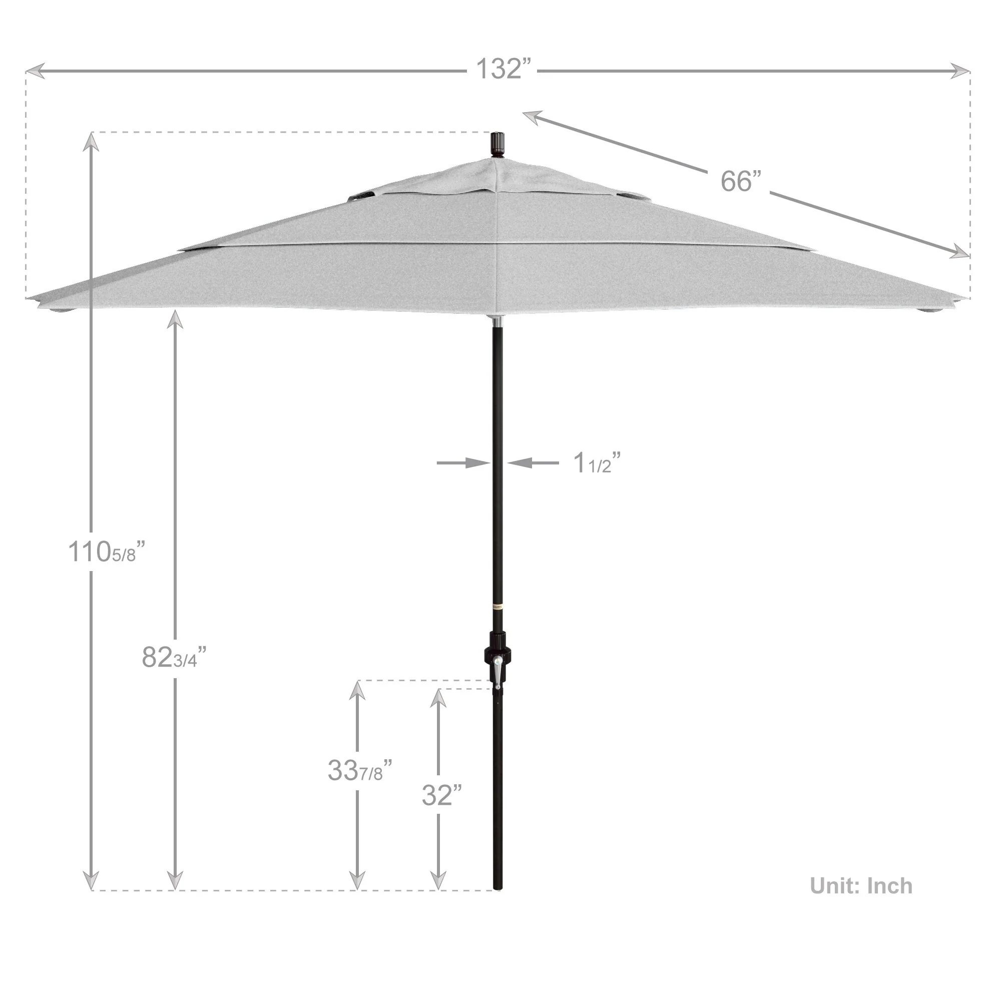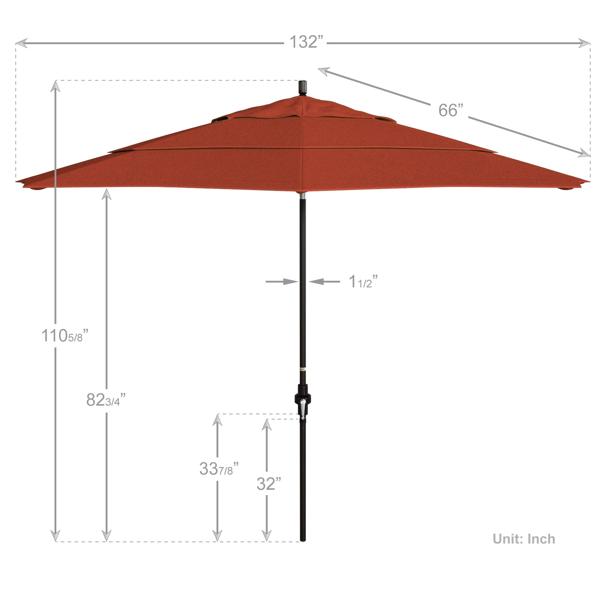 California Umbrella 11' Round Aluminum Crank Open Auto Tlit Patio Umbrella, Bronze Finish, Double Wind Vent.