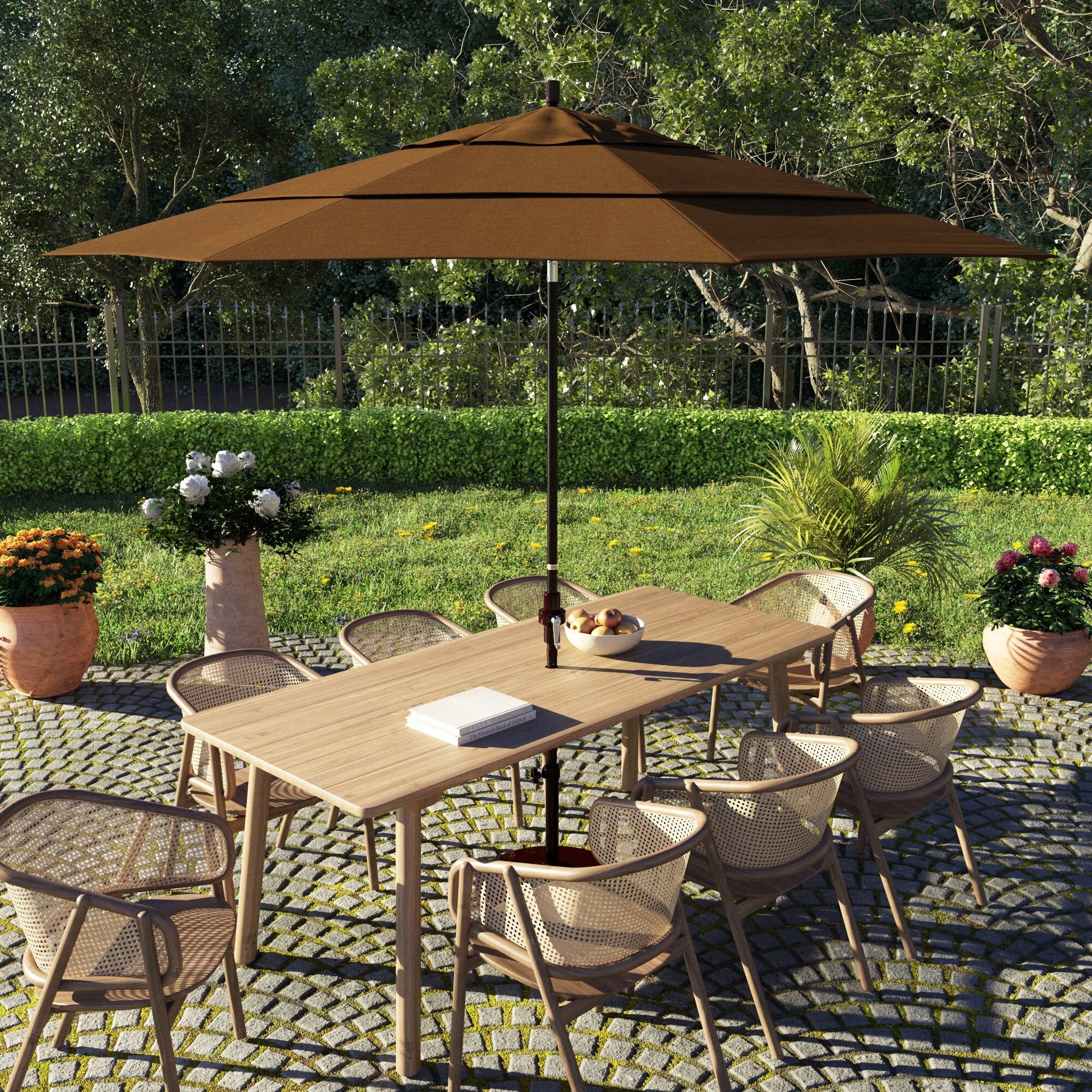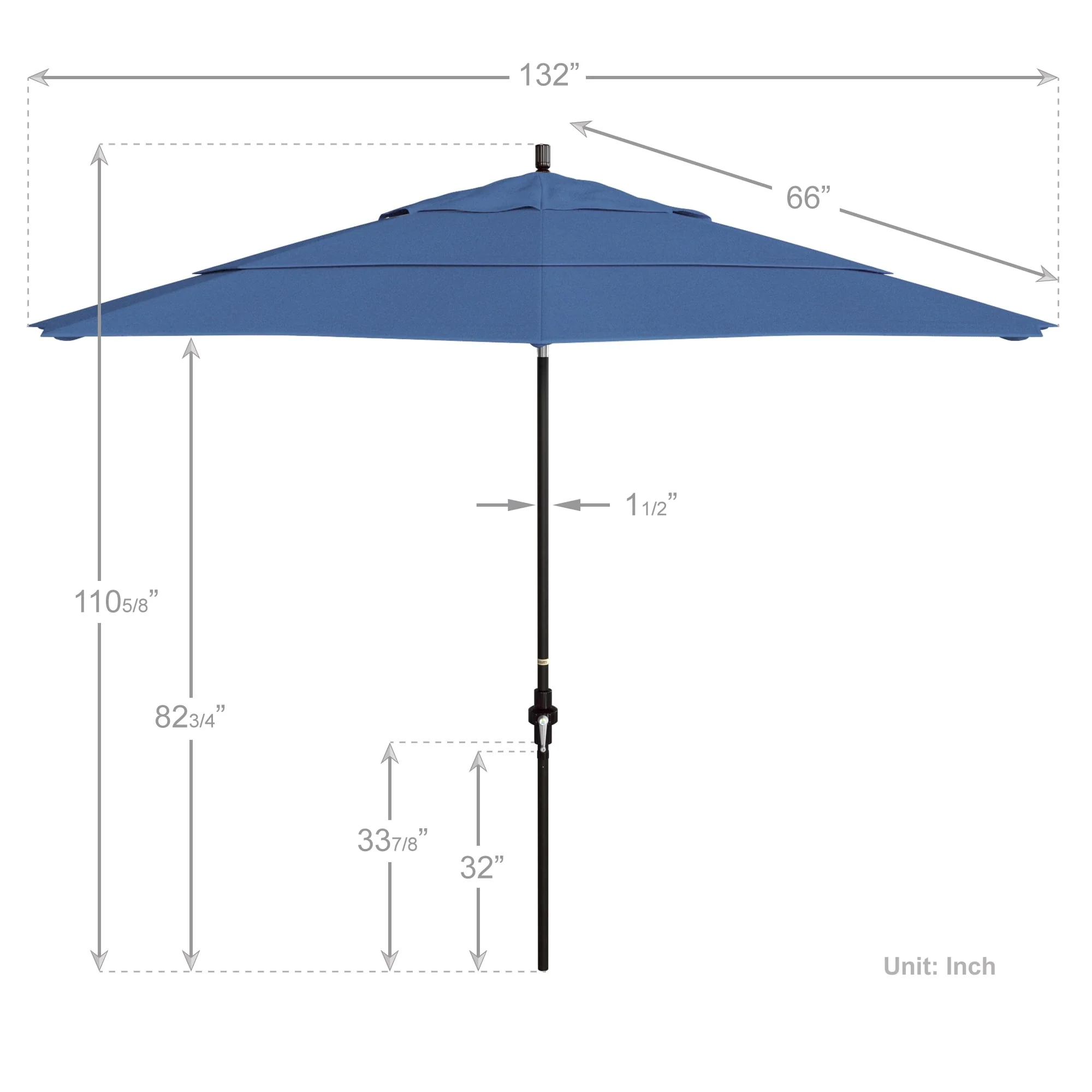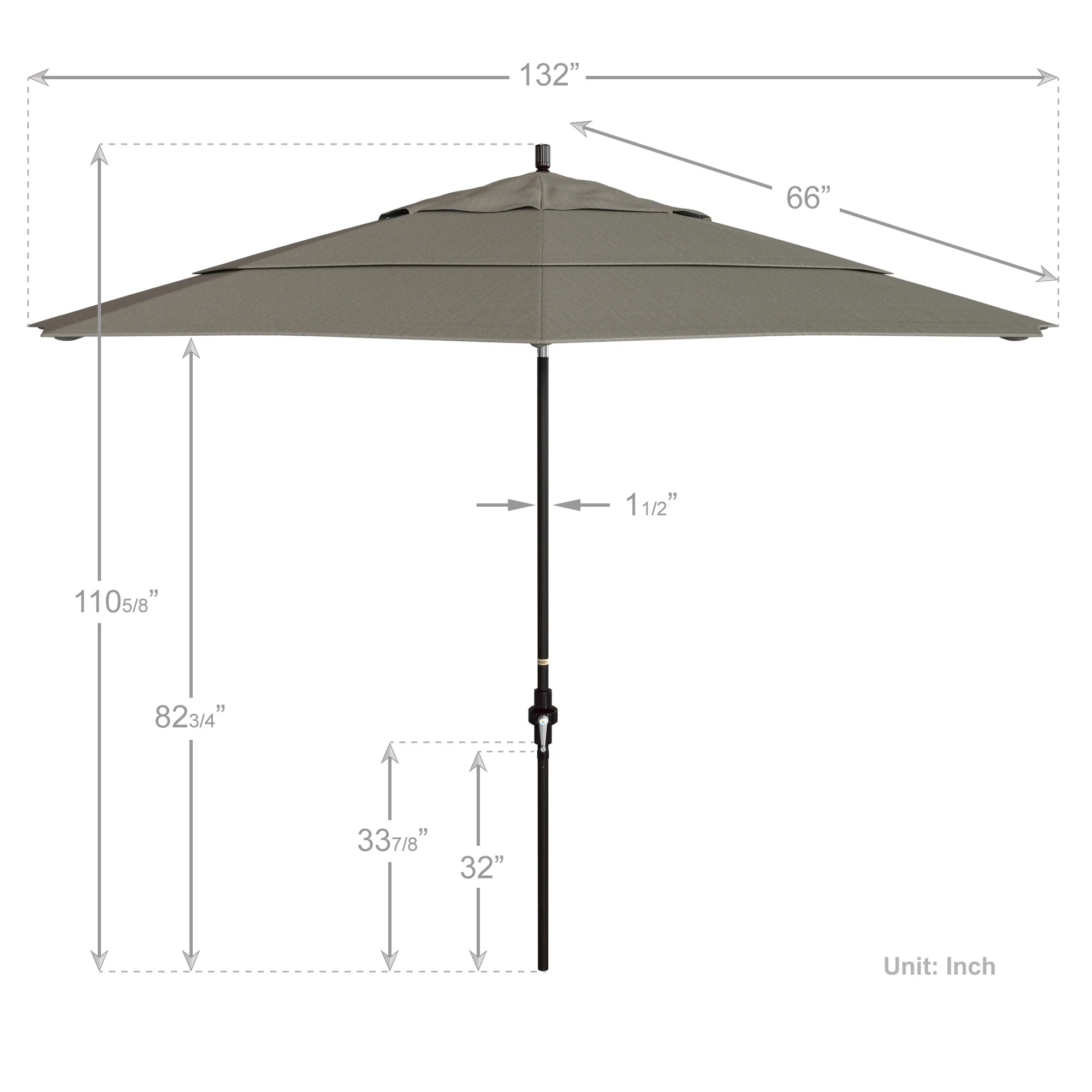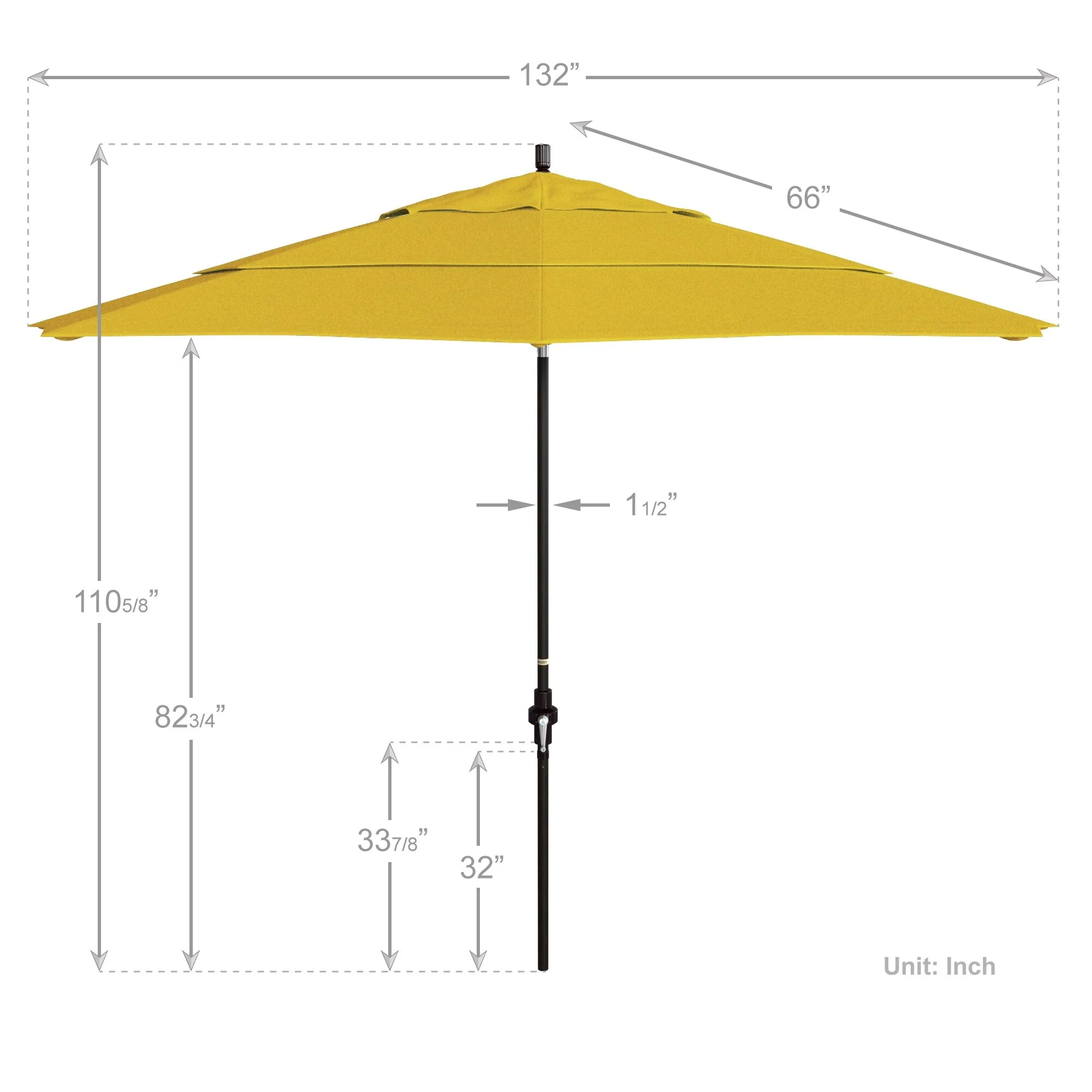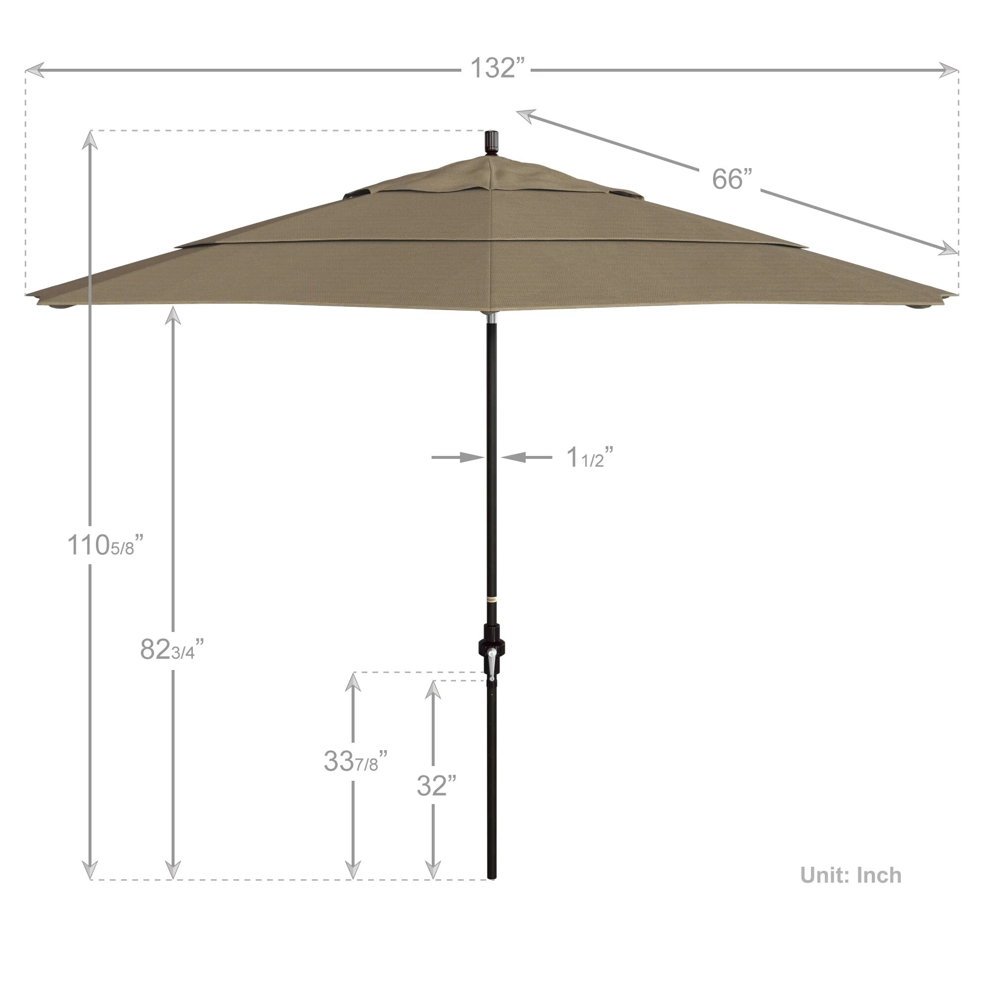 California Umbrella 11' Round Aluminum Crank Open Auto Tlit Patio Umbrella, Bronze Finish, Double Wind Vent.