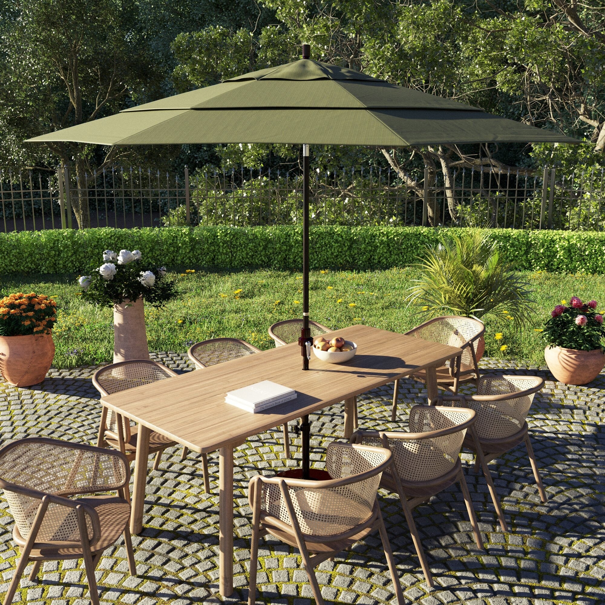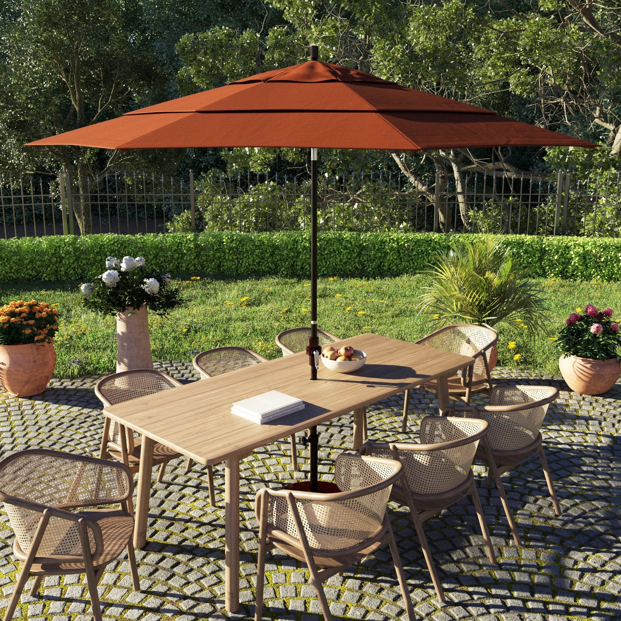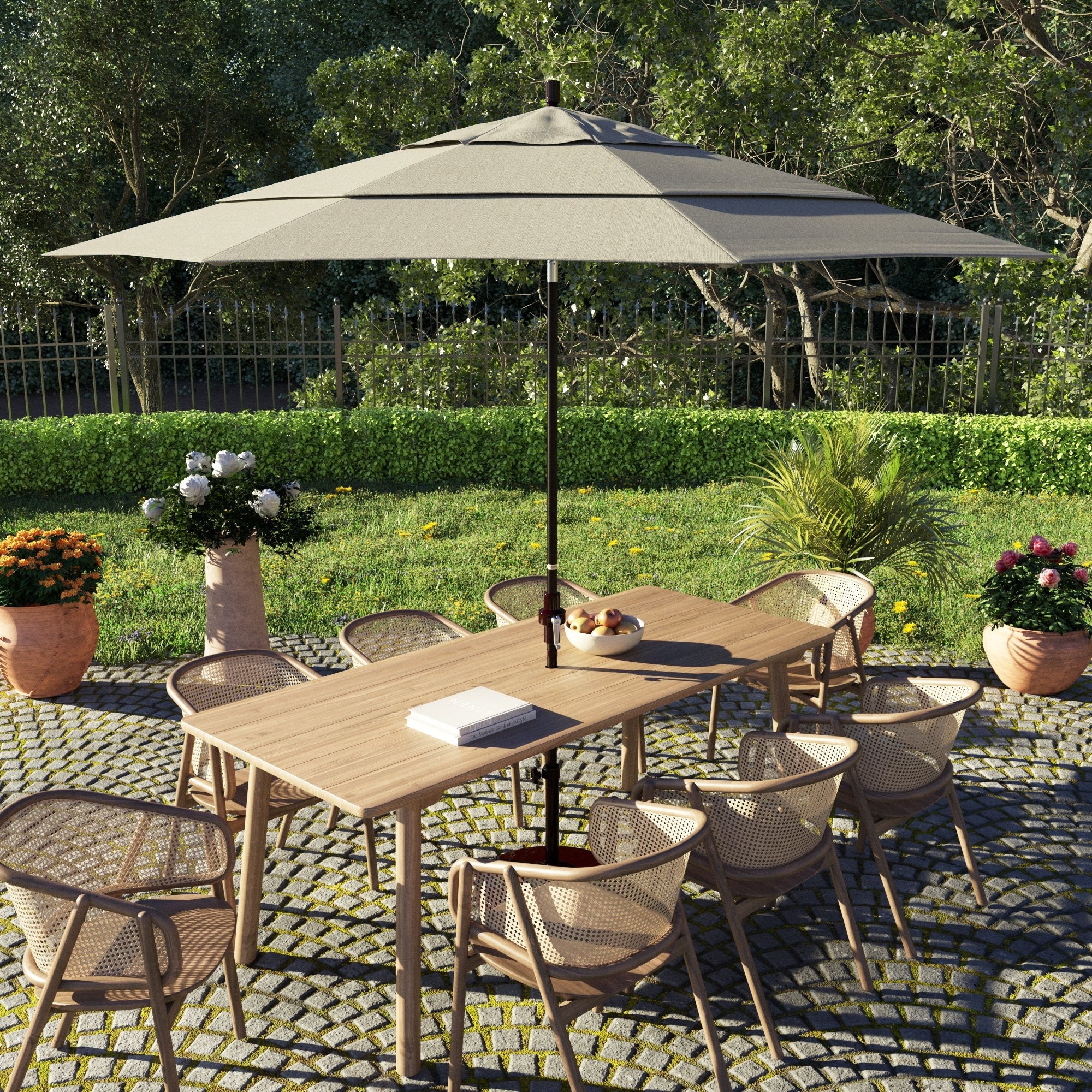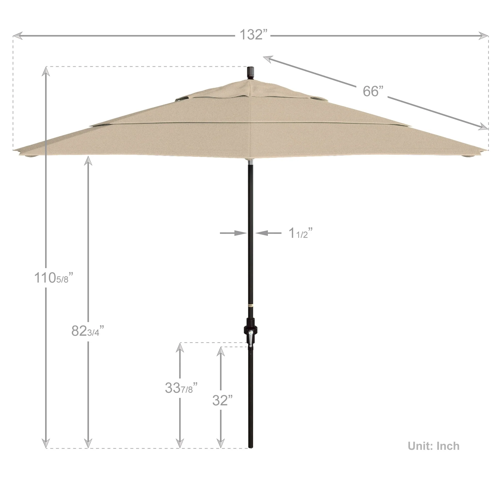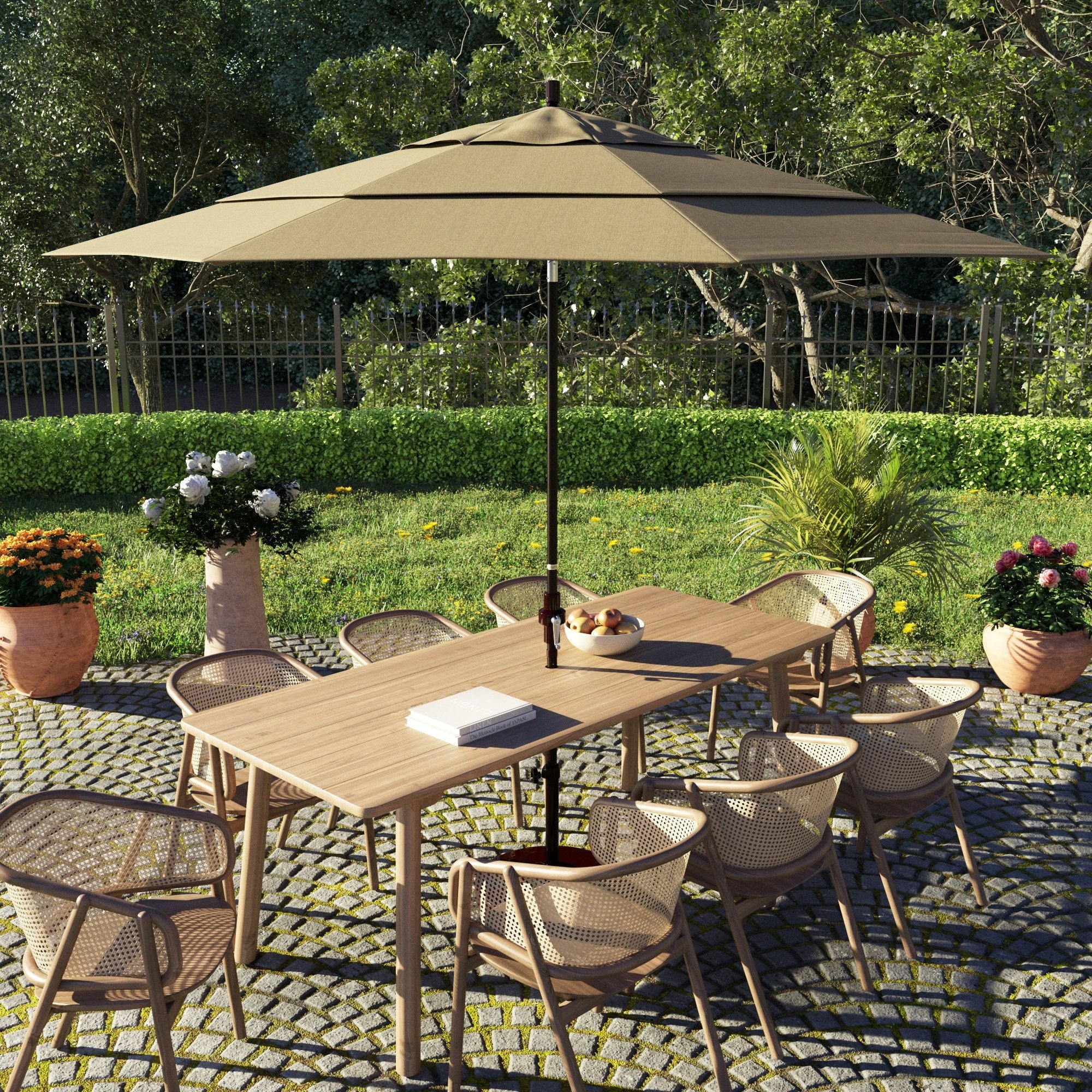 California Umbrella 11' Round Aluminum Crank Open Auto Tlit Patio Umbrella, Bronze Finish, Double Wind Vent.