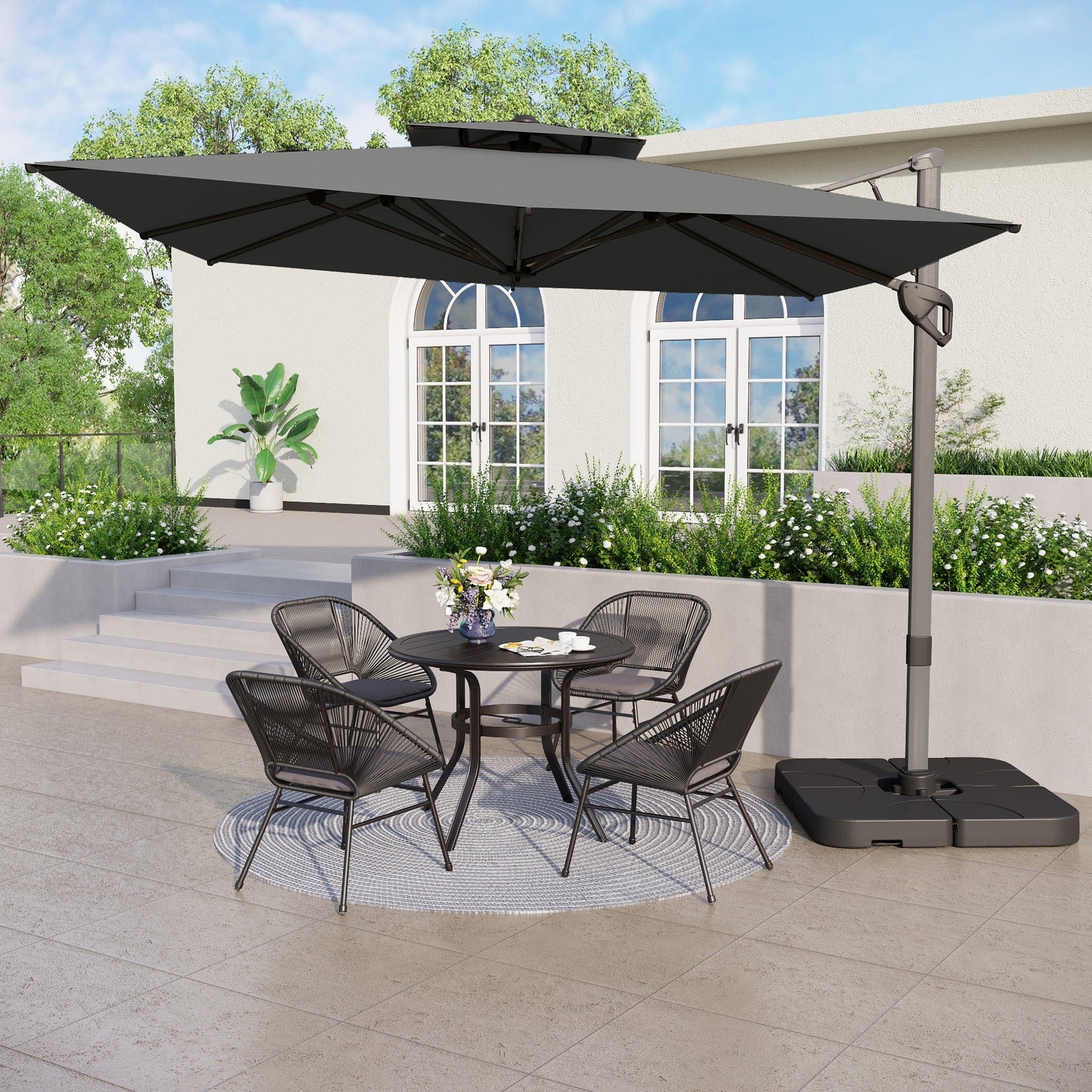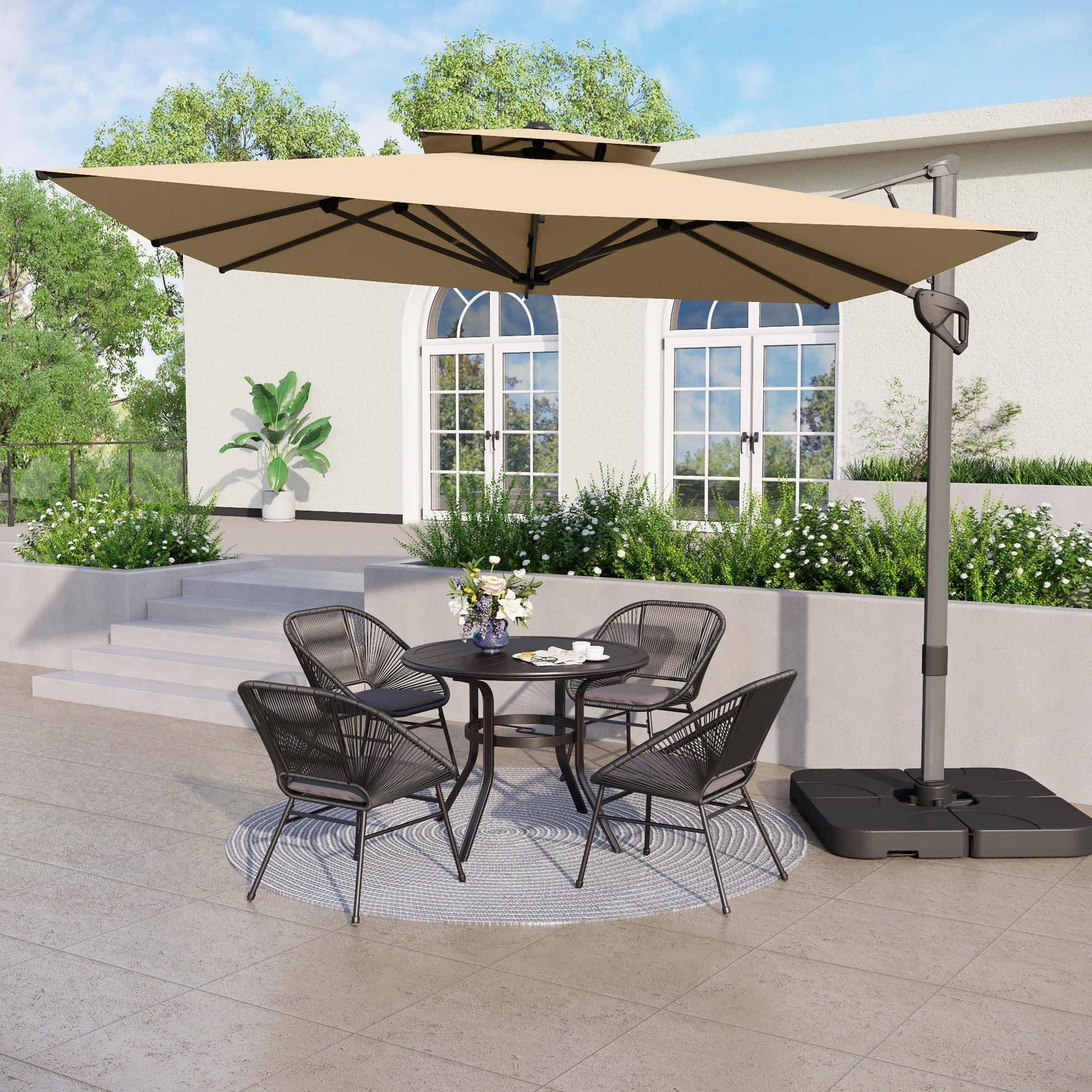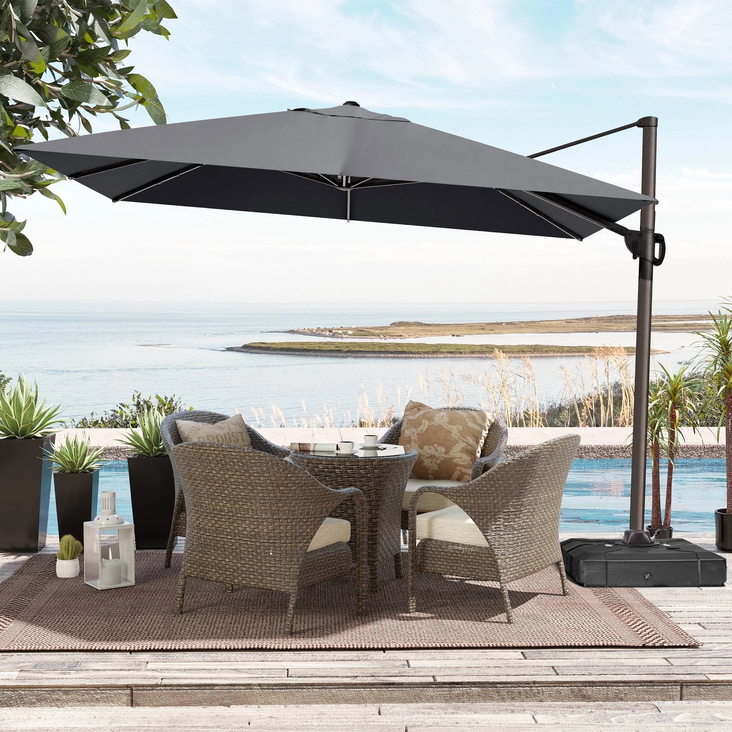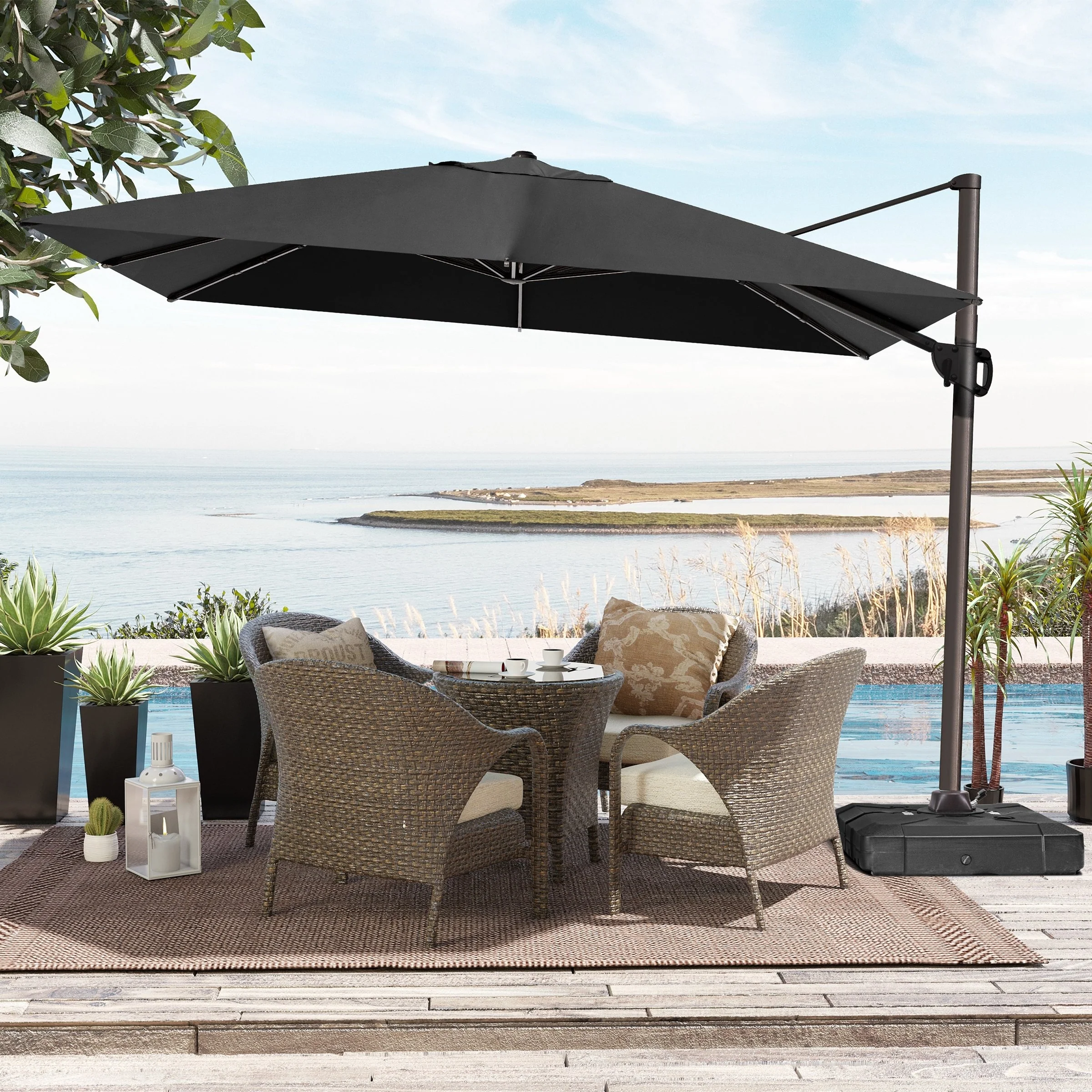 MAISON ARTS 10 FT Automatic Hydraulic Cantilever Umbrella Aluminum Pole 360 Degree Rotation with Weighted Base Included